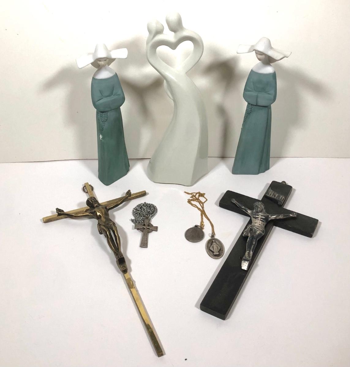 LOT 66: Religious Collection - Nun Statues, Jewelry & Crucifixes