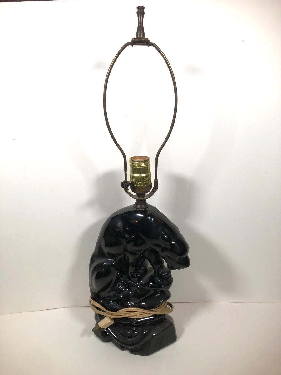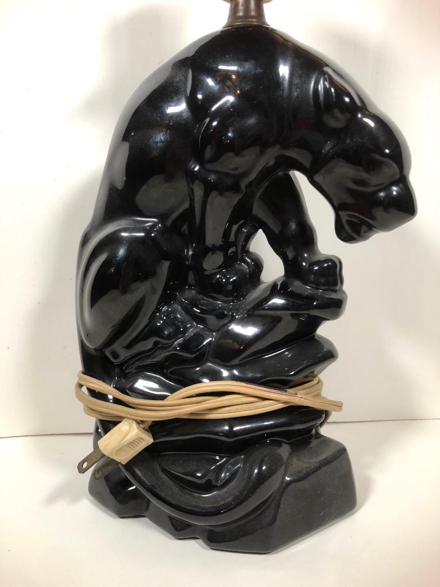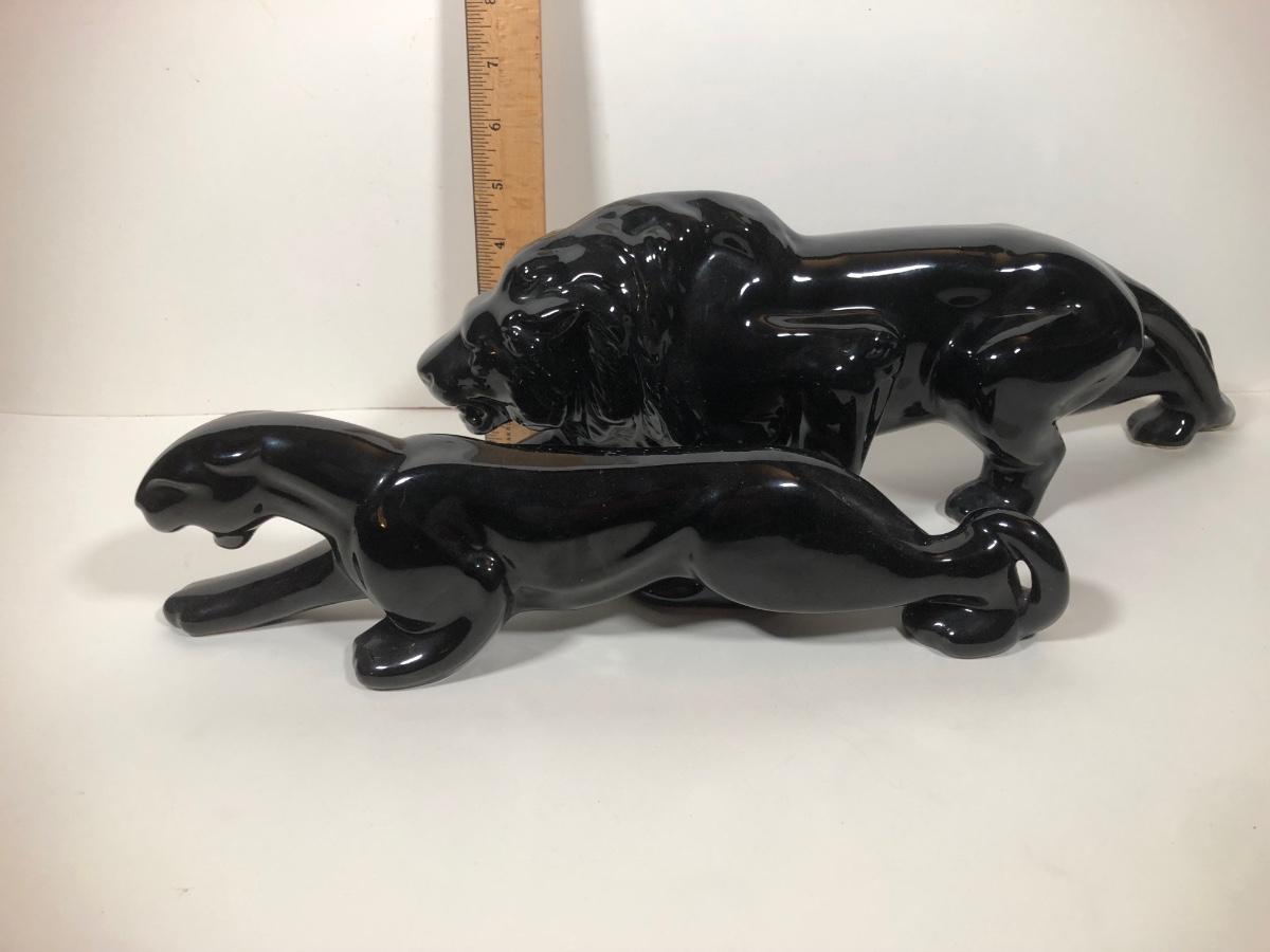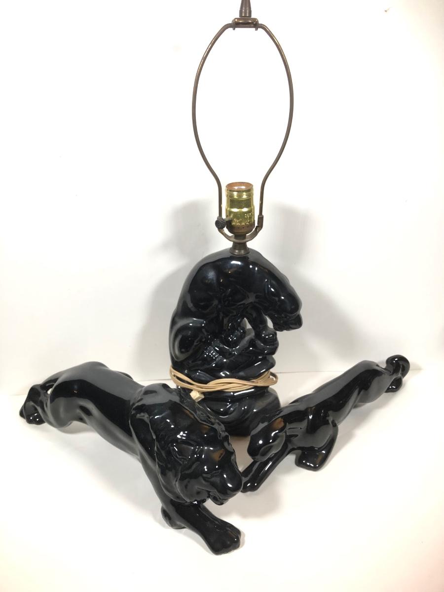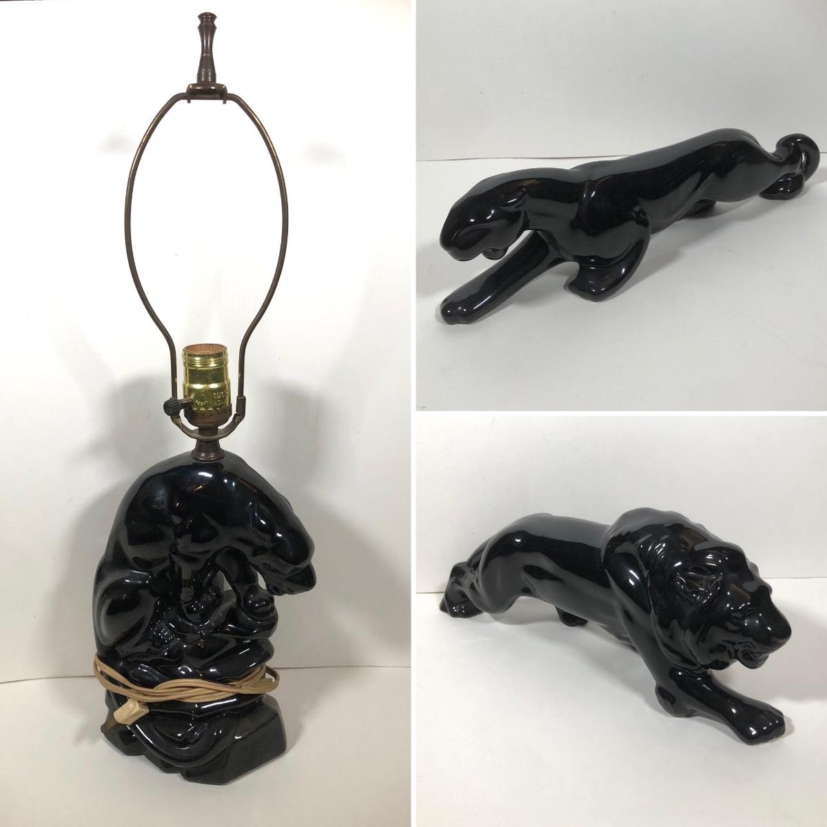 LOT 68: Vintage Mid-Century Modern Panther TV Lamp & Black Lion Statues
