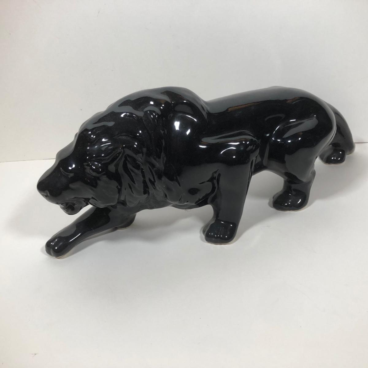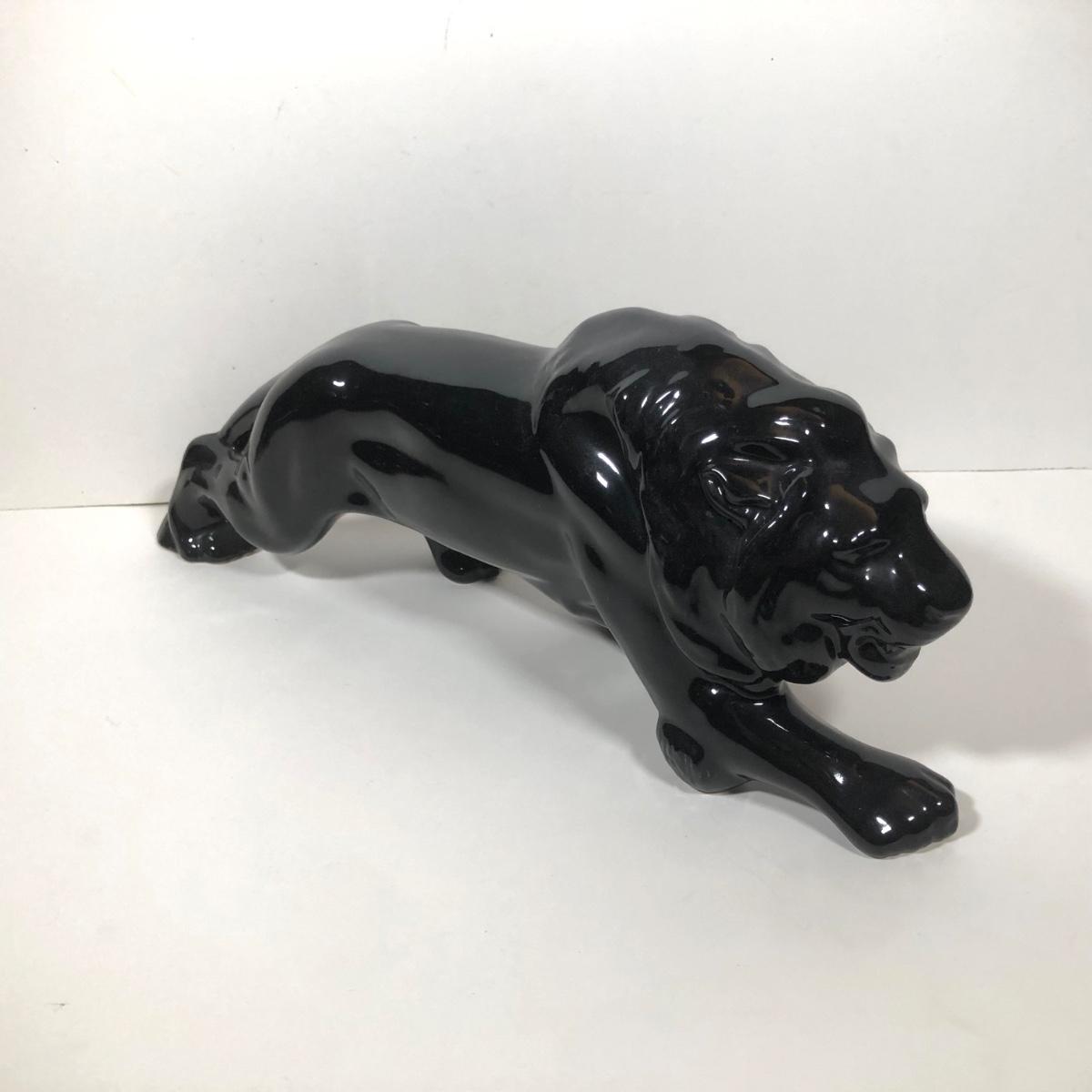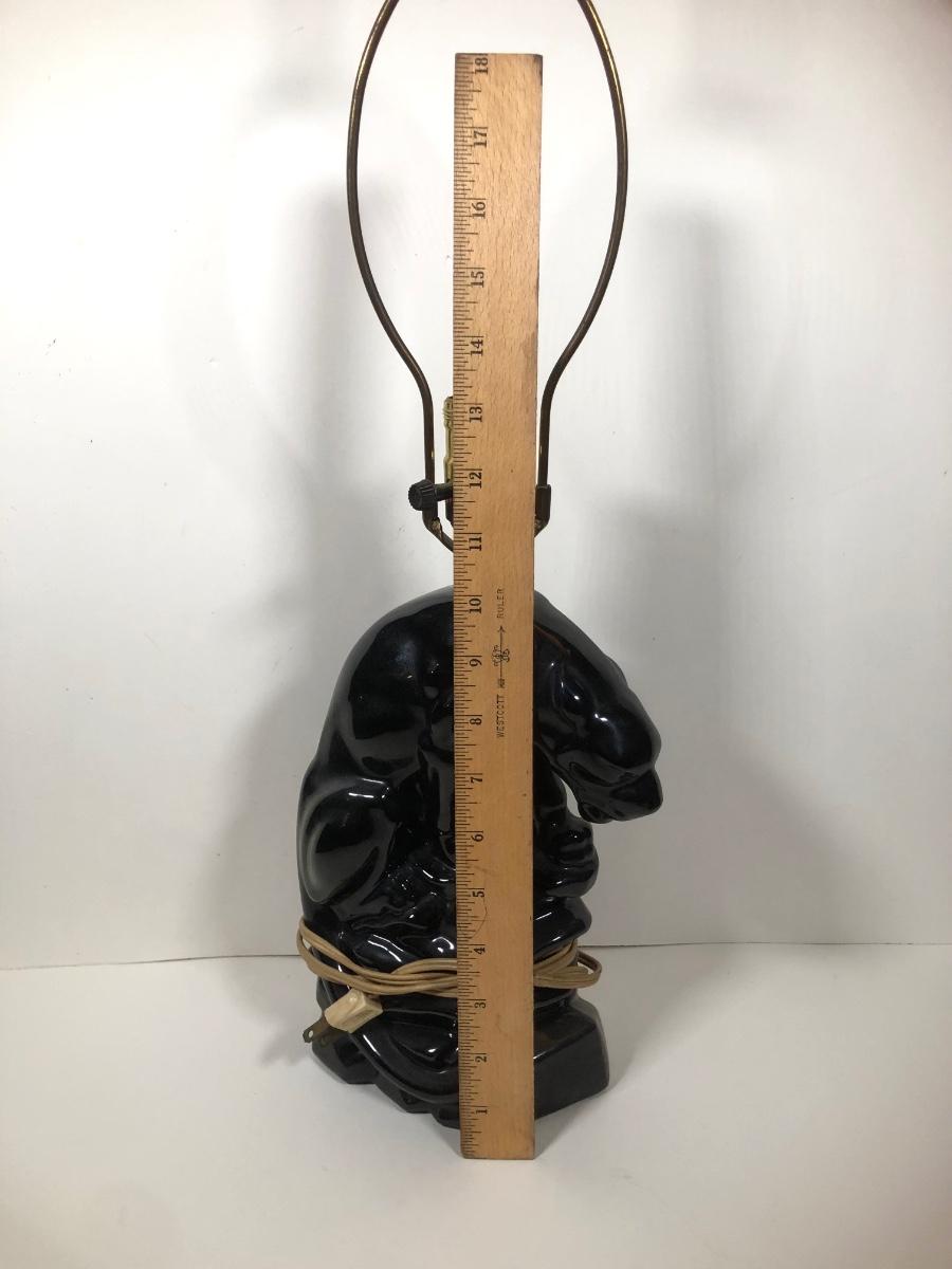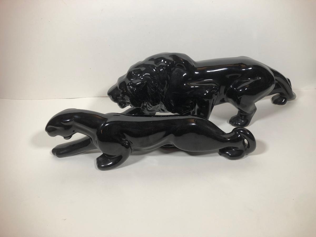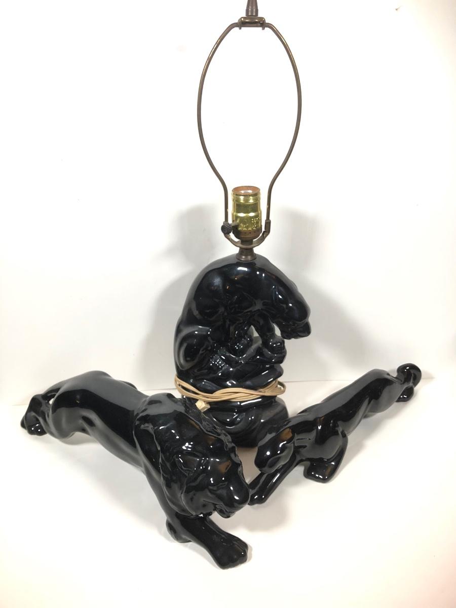 LOT 68: Vintage Mid-Century Modern Panther TV Lamp & Black Lion Statues
