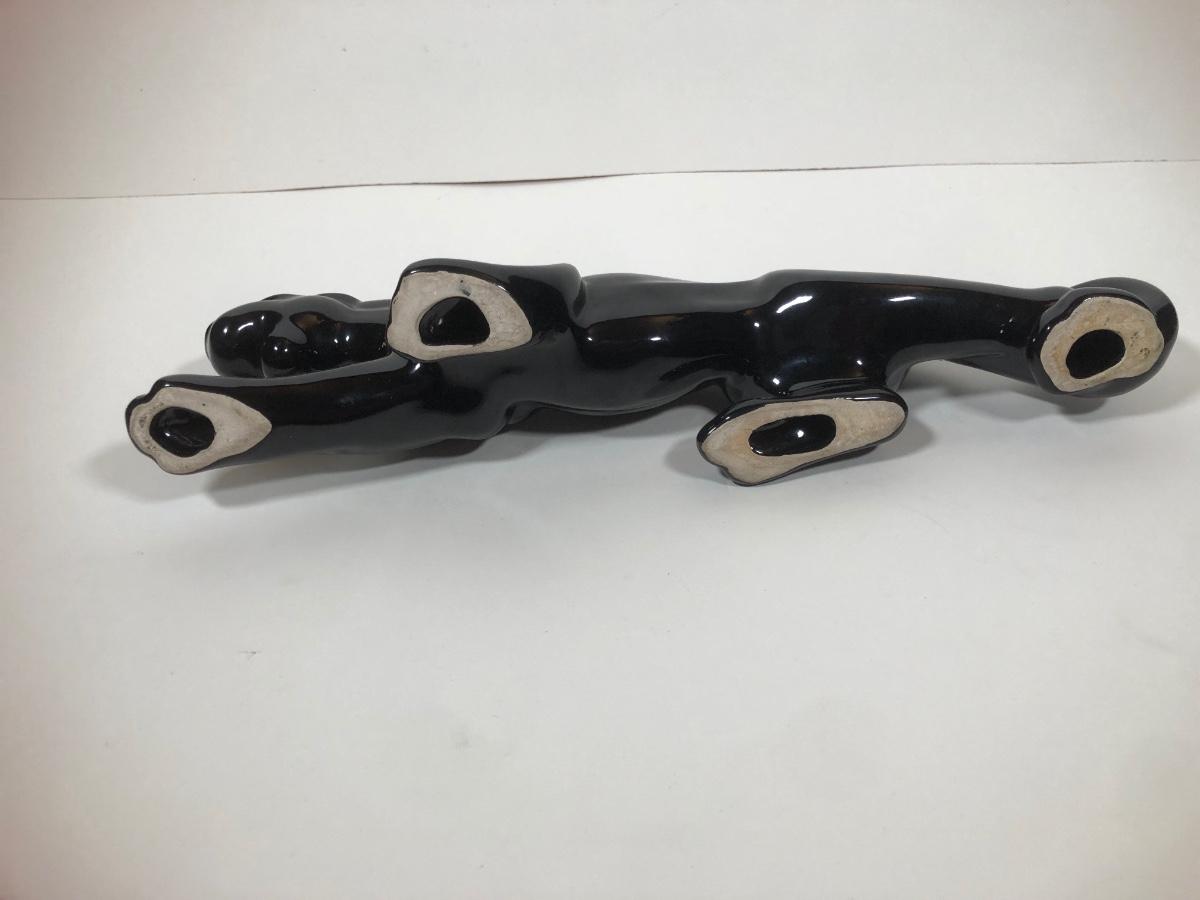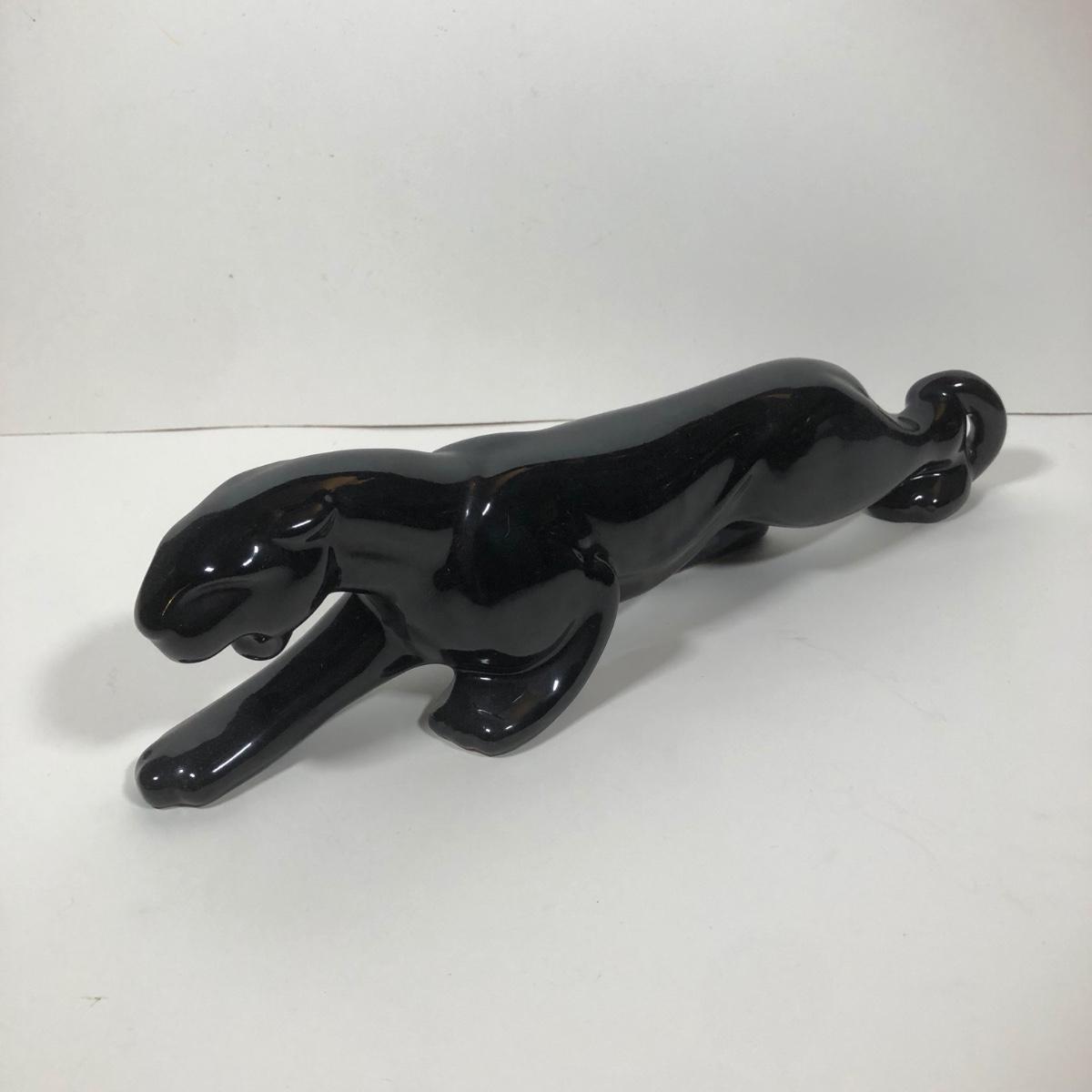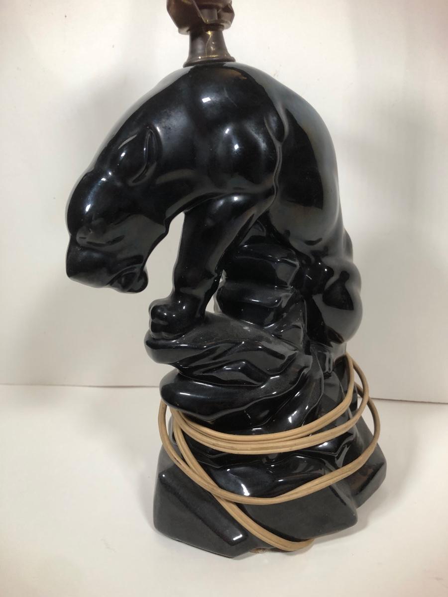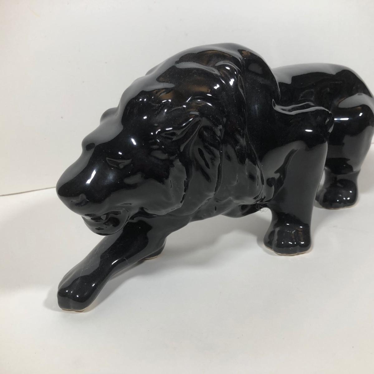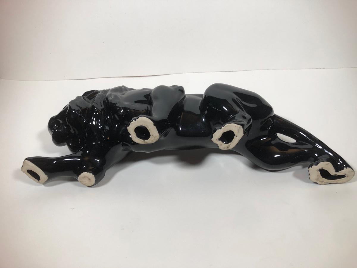 LOT 68: Vintage Mid-Century Modern Panther TV Lamp & Black Lion Statues