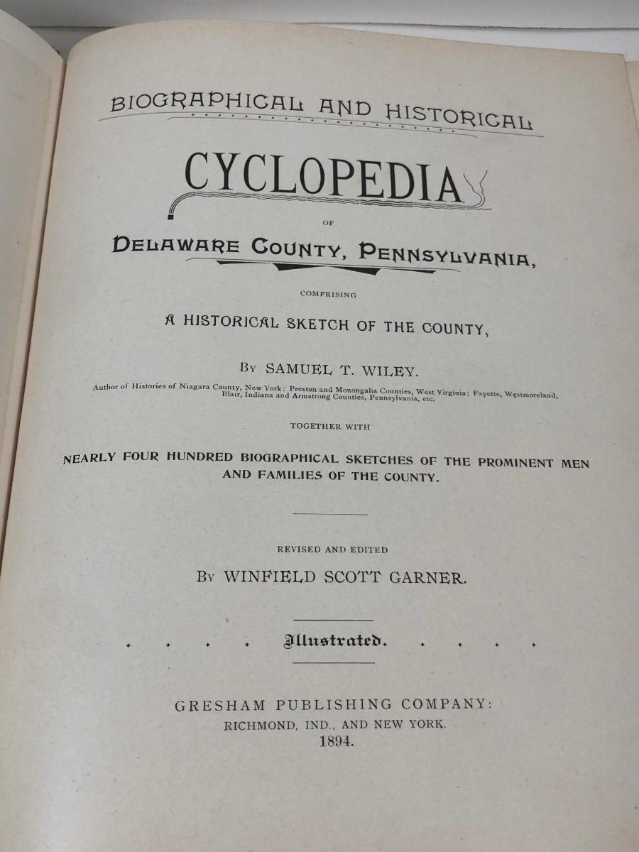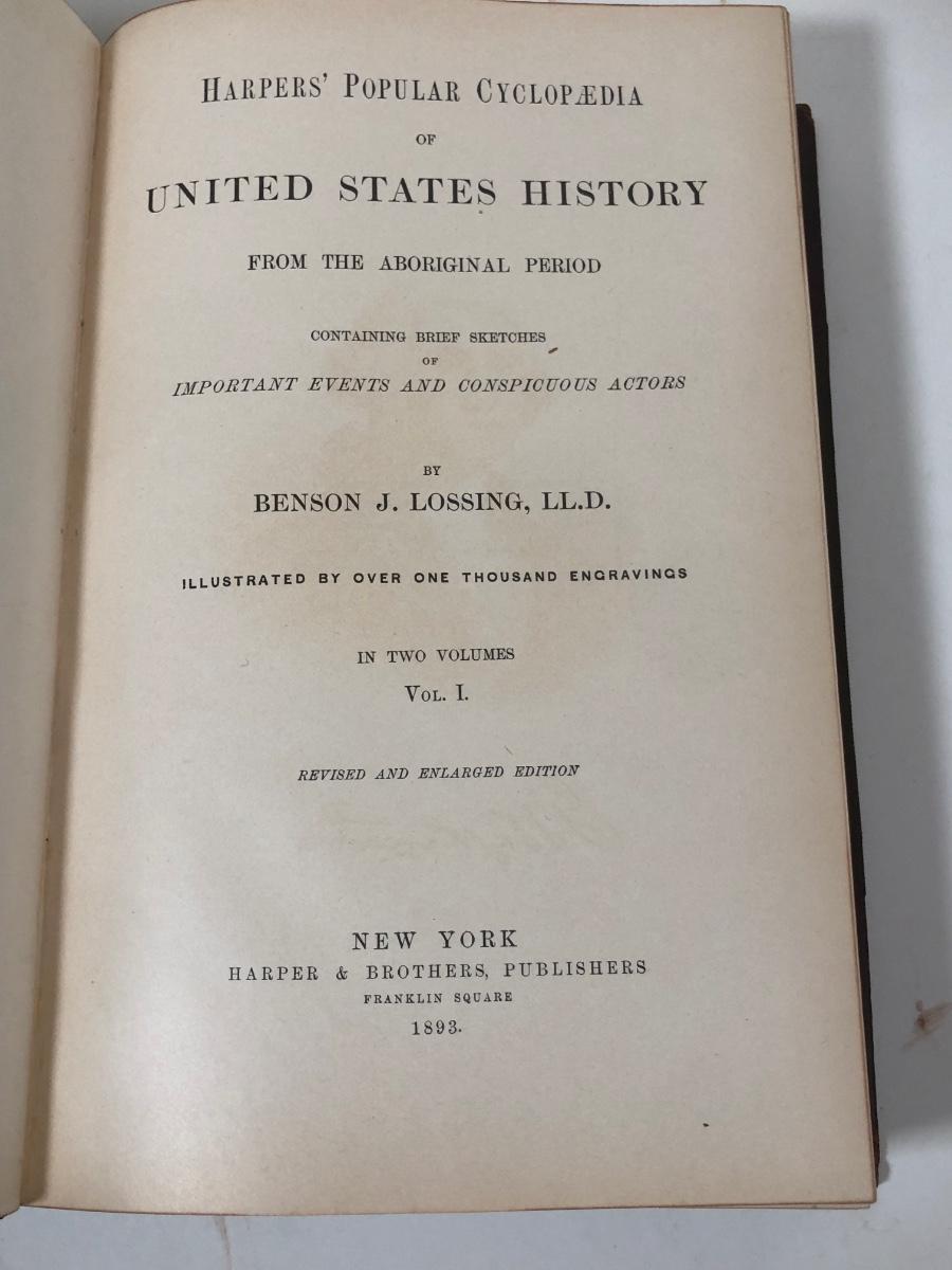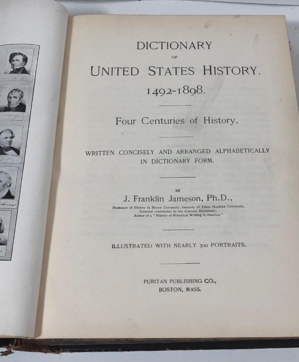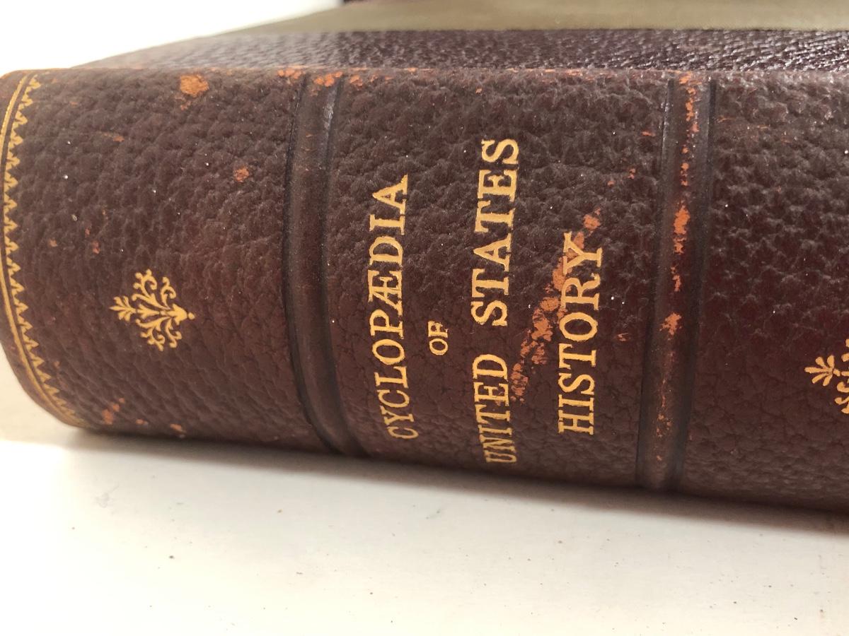 LOT 74: Antique Books - 1893 Harpers' Popular Cyclopedia of US History Vol I, 1894 Biographical & Historical Cyclopedia of Delaware Country PA & 1898 Dictionary of US History