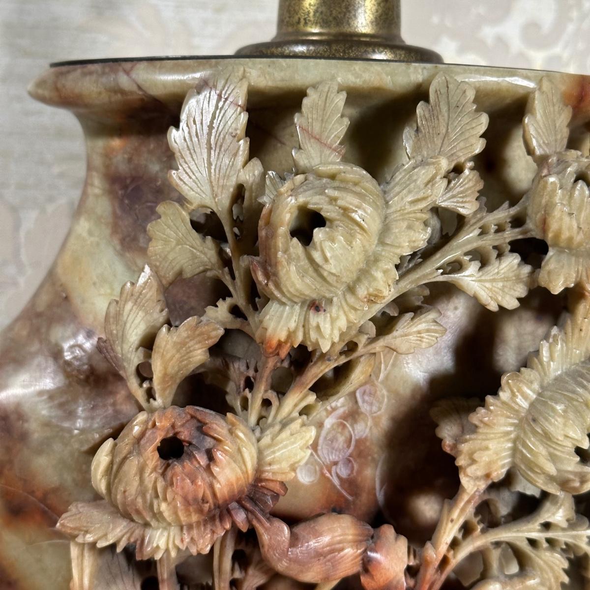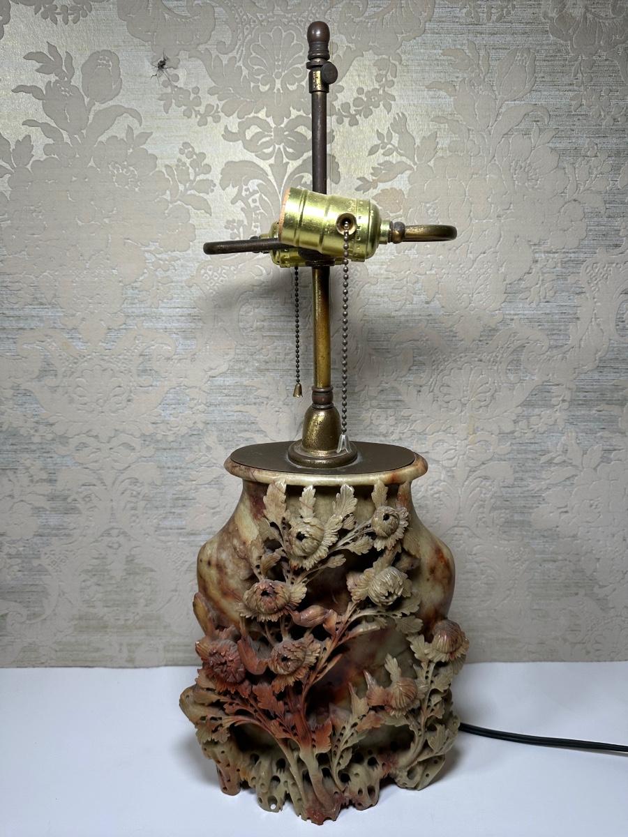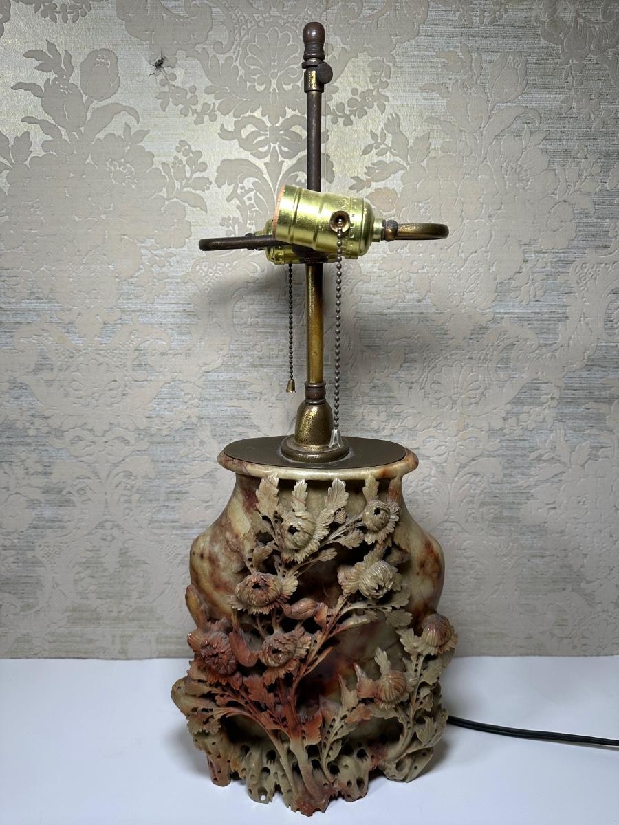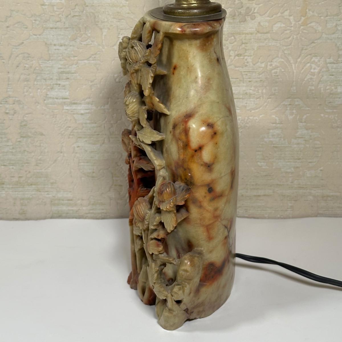 LOT 97: Chinese Carved Soapstone Table Lamp