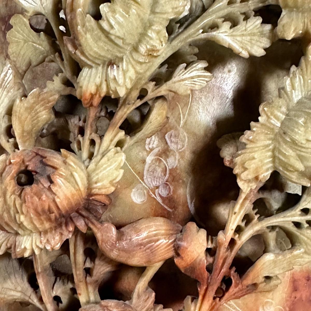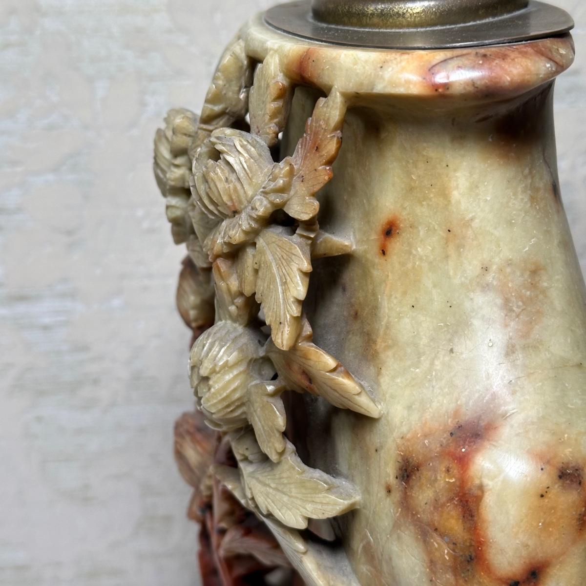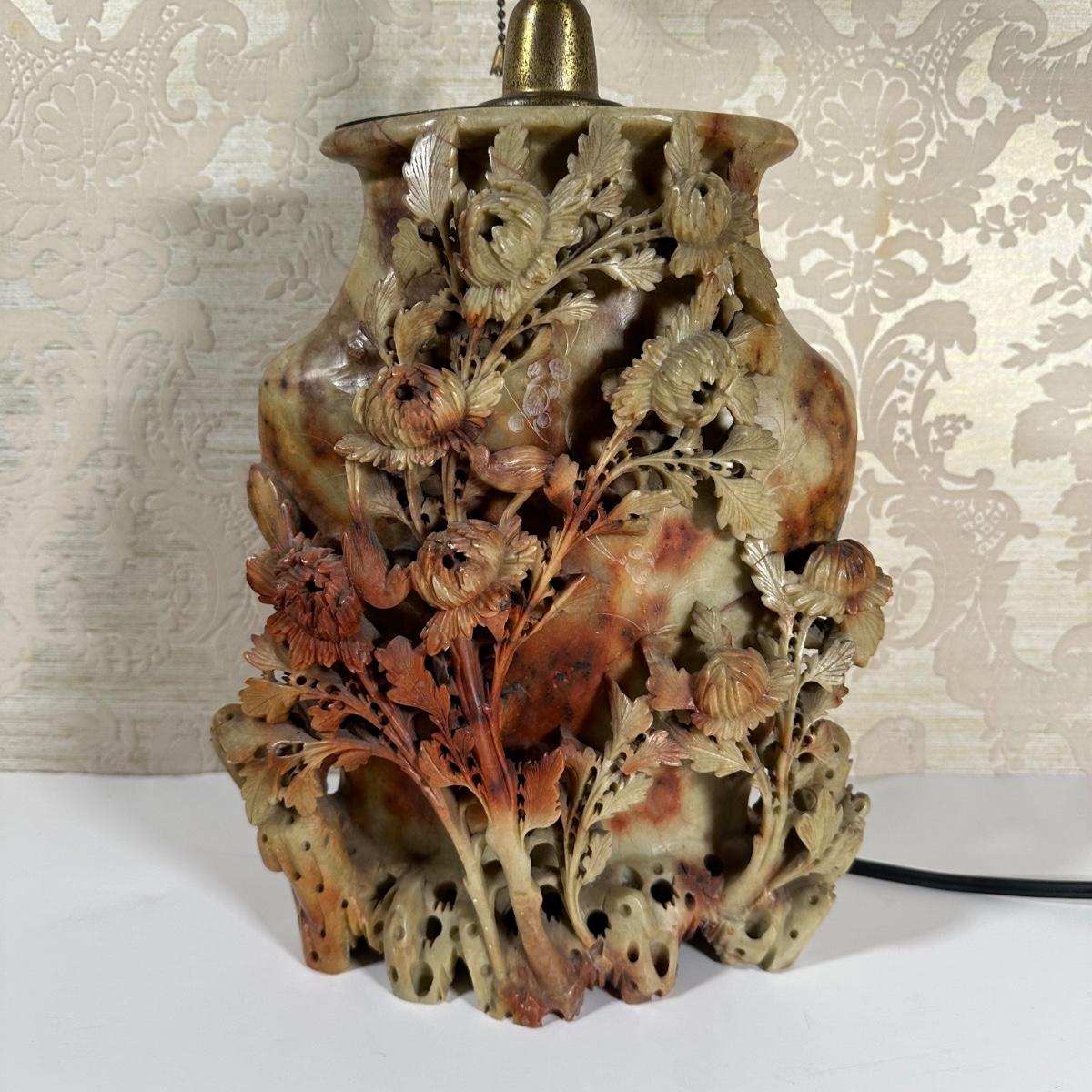 LOT 97: Chinese Carved Soapstone Table Lamp