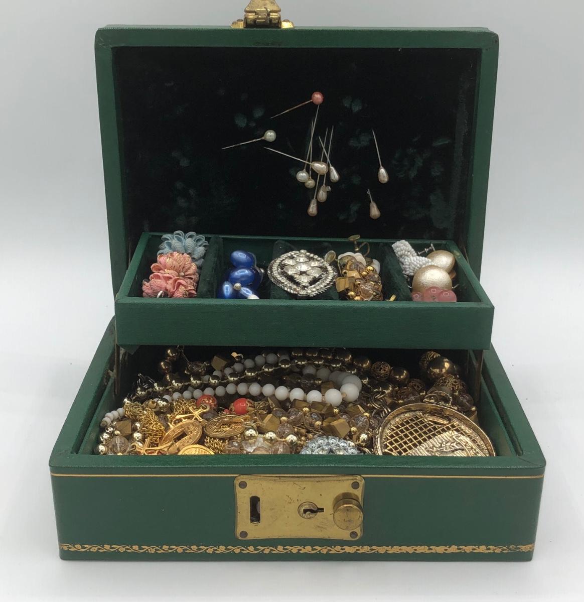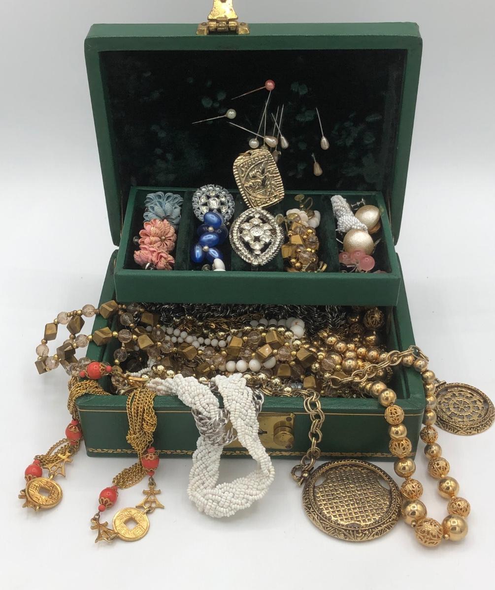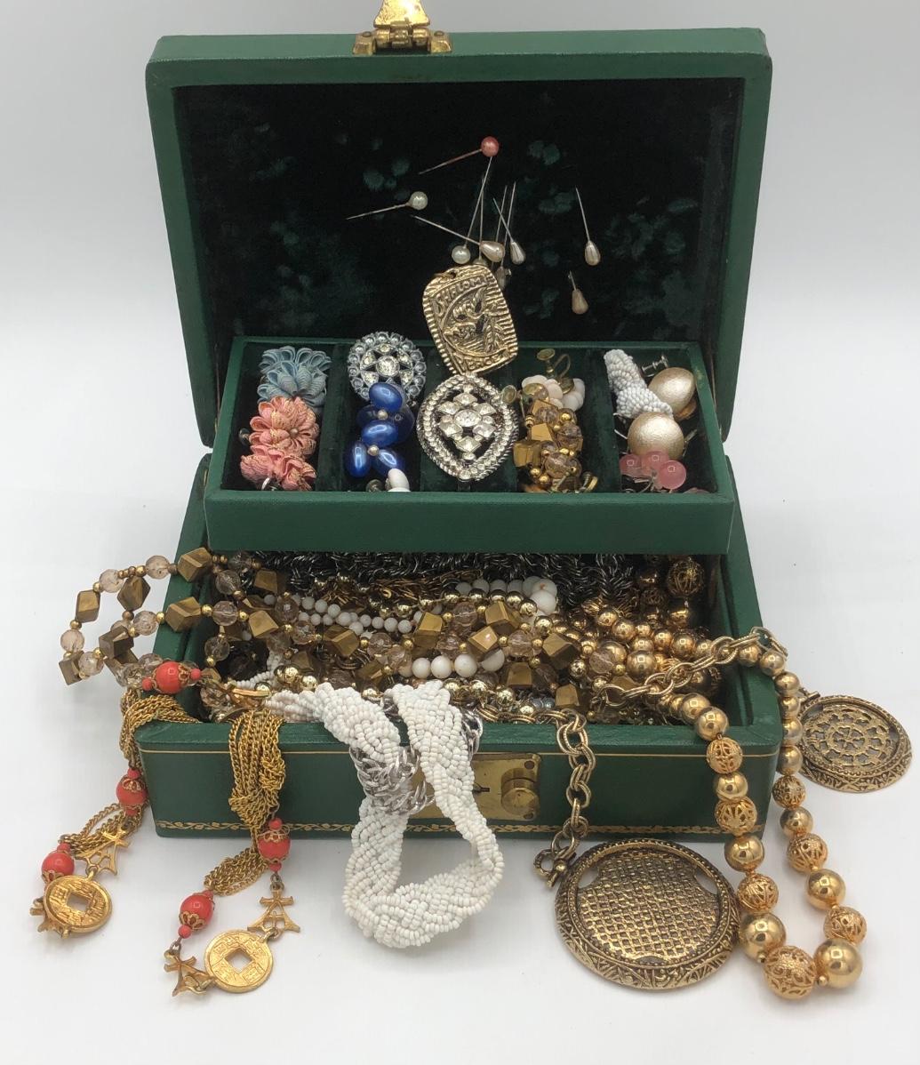 LOT 138J: Vintage Jewelry for Craft or Repair in Emerald Jewelry Box