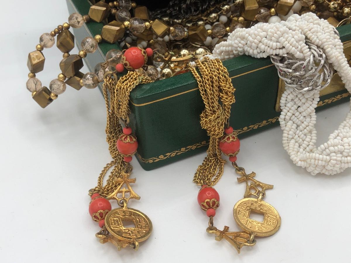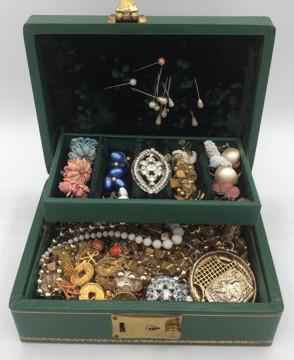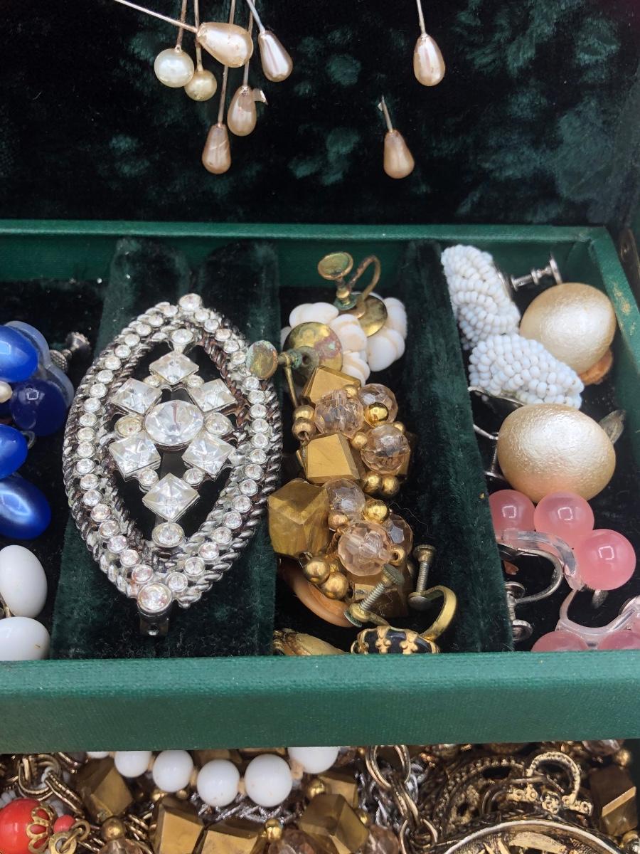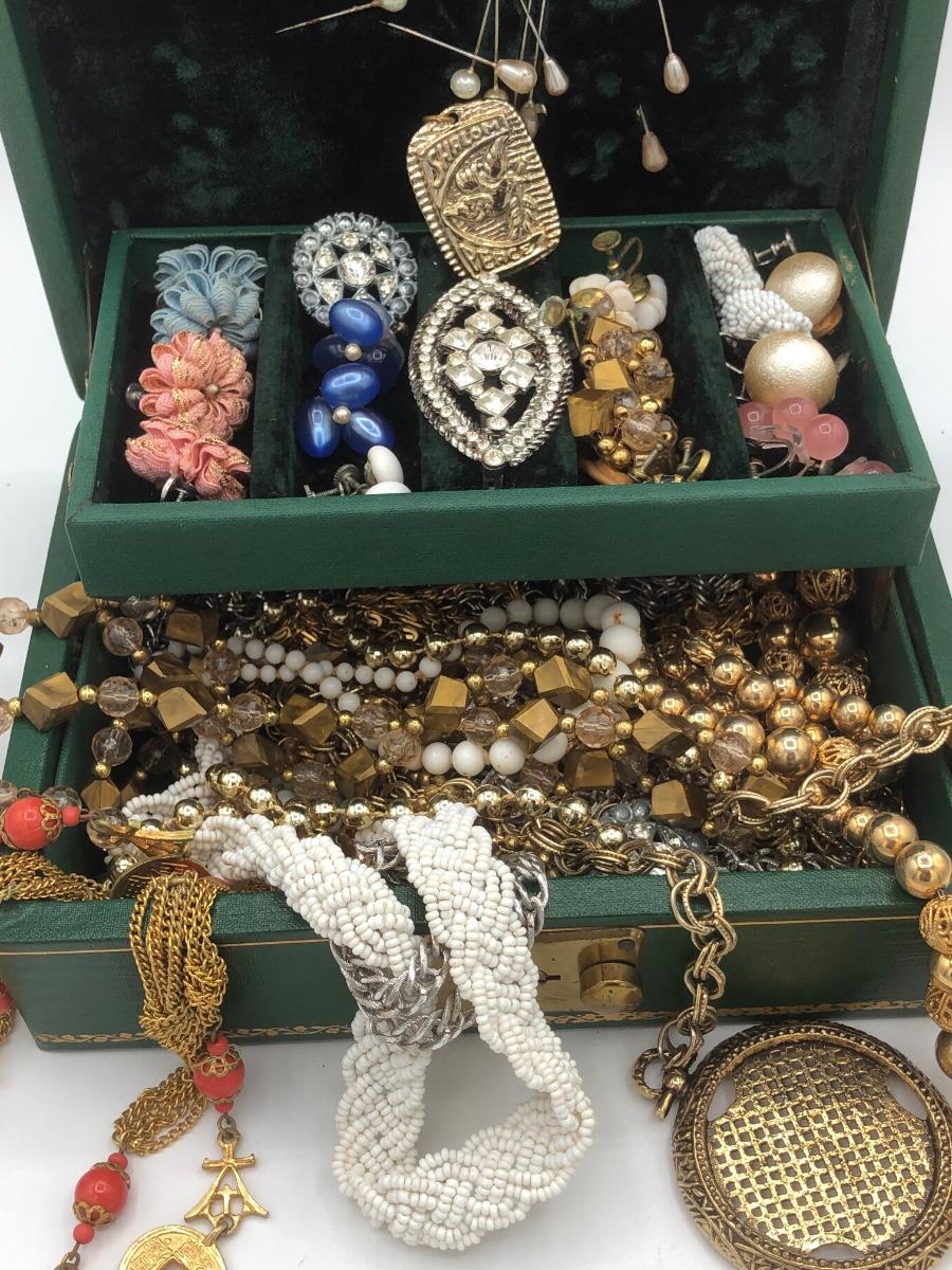 LOT 138J: Vintage Jewelry for Craft or Repair in Emerald Jewelry Box