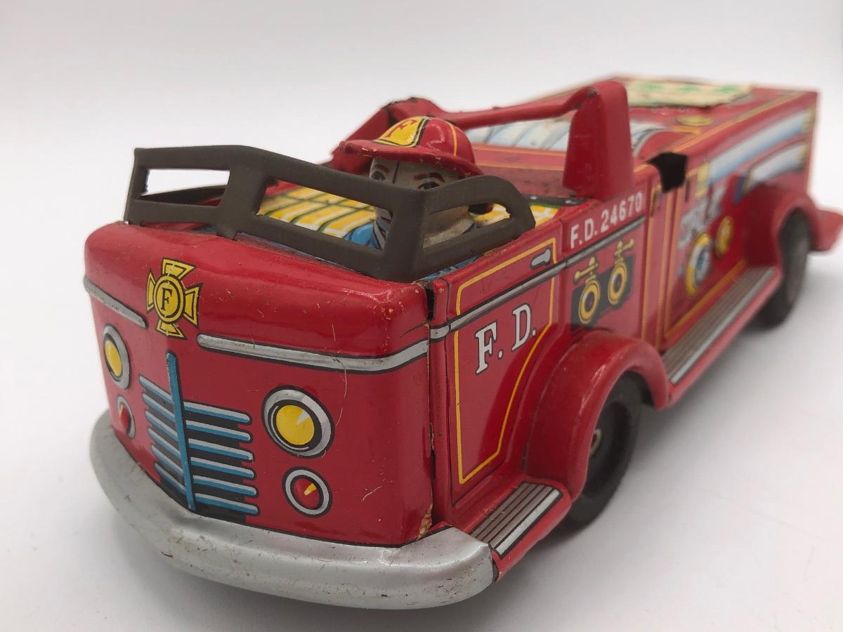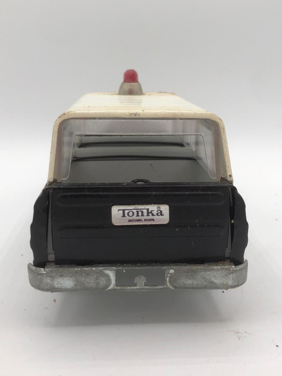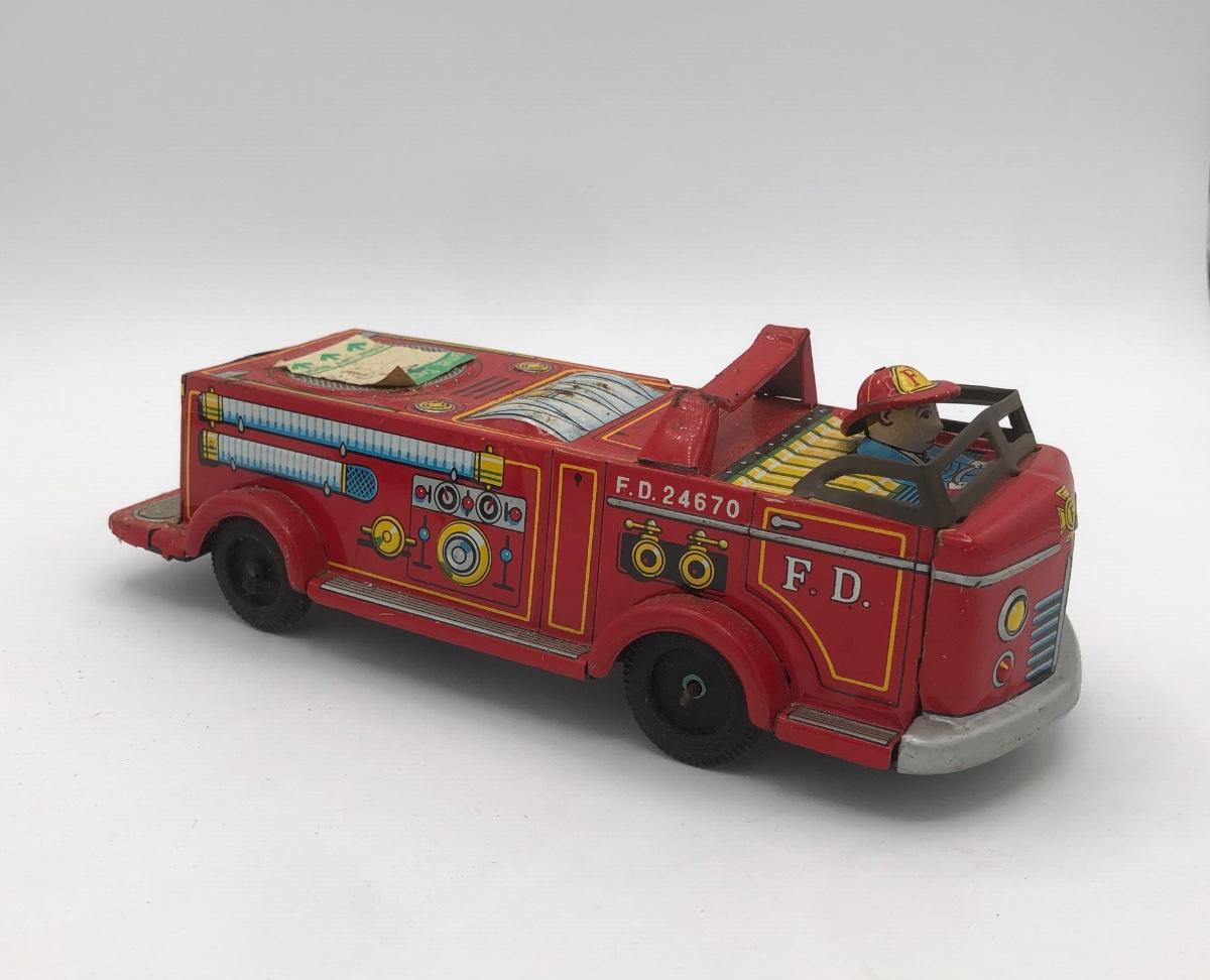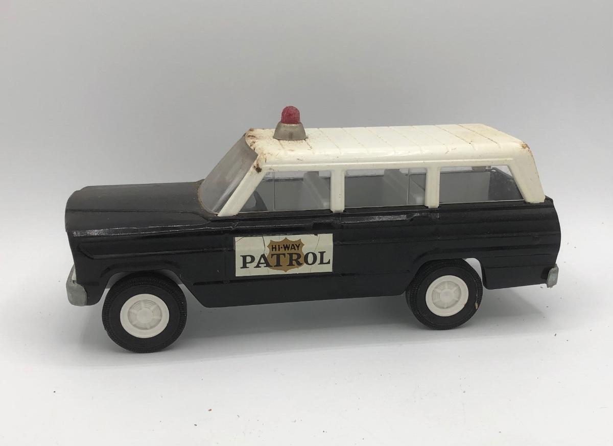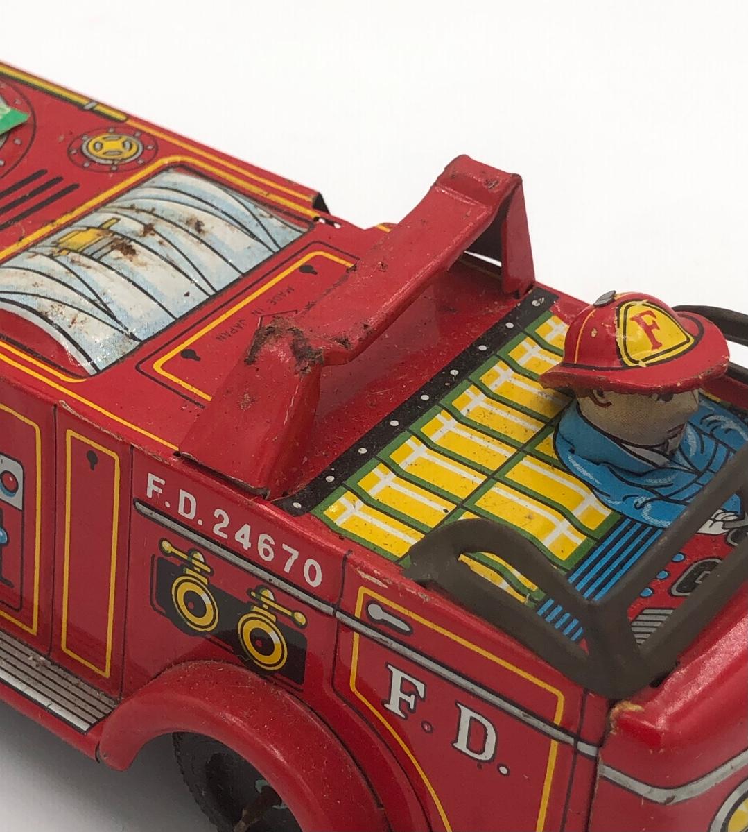 LOT 144B: Vintage 1960s Tonka Highway Patrol Wagoneer, Vintage 1960s Tin Firetruck & 1950s Sato Tin Litho Super Tank Toy