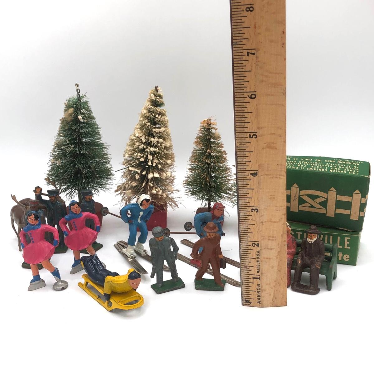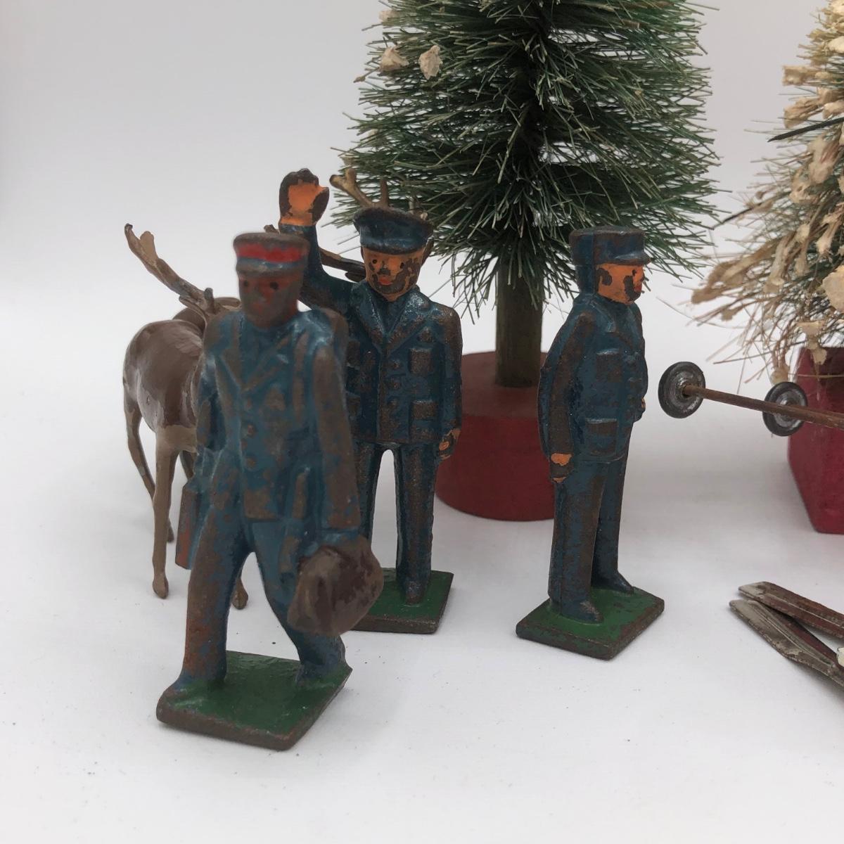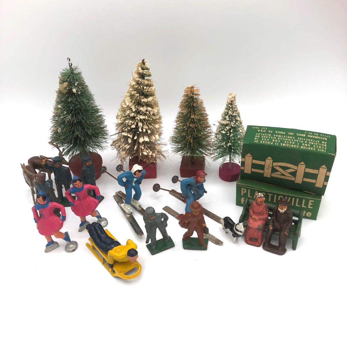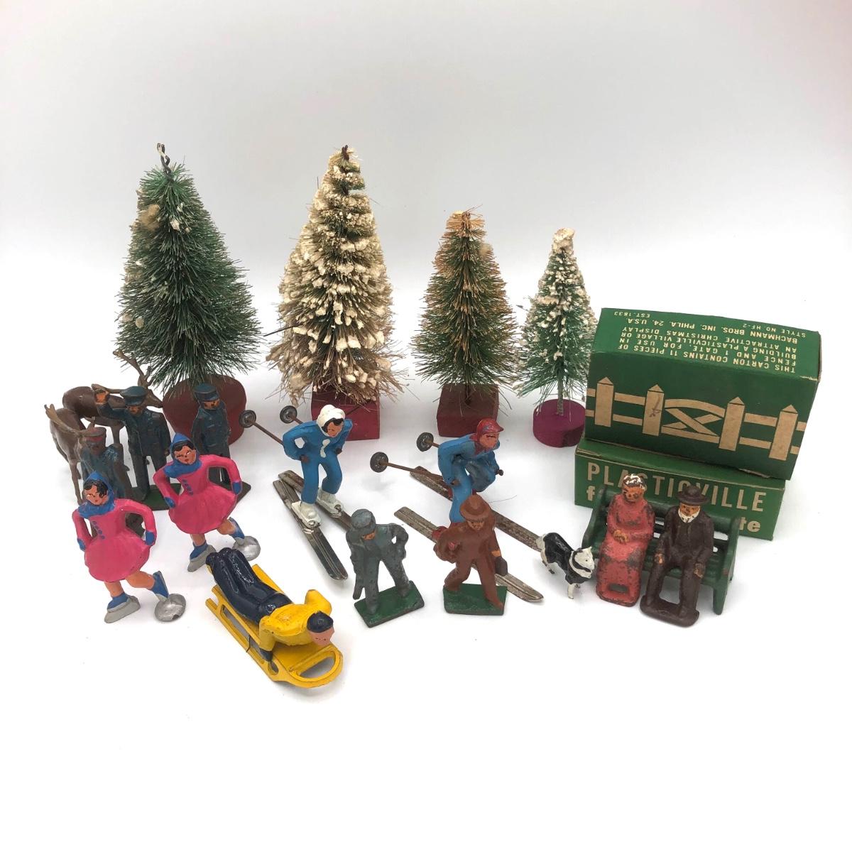 LOT 146B: Vintage Metal Winter Scene Figures w/ Bottle Brush Trees