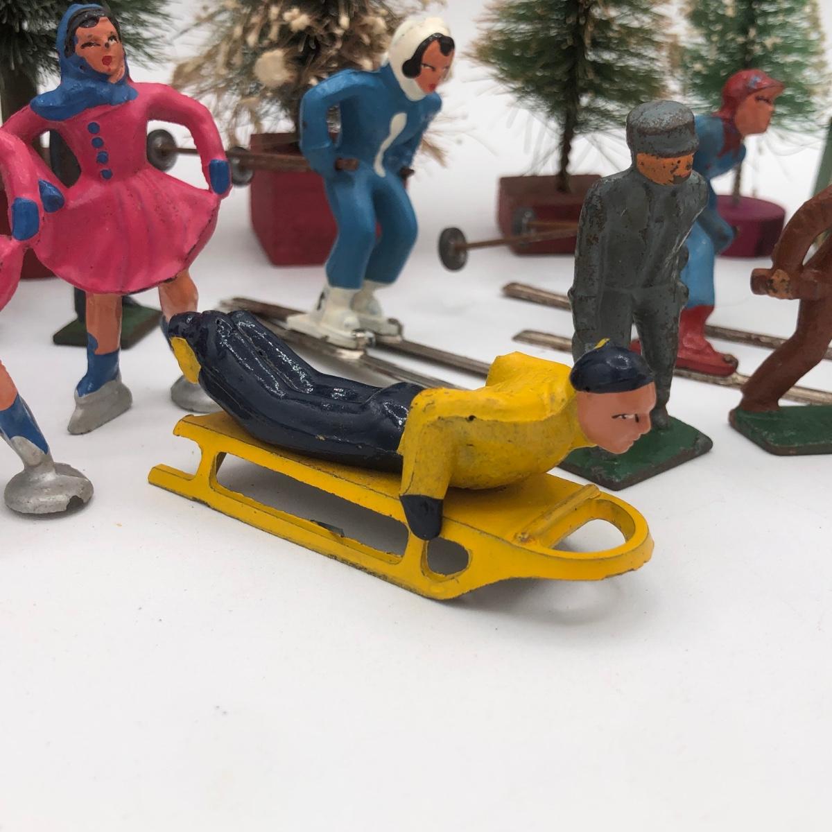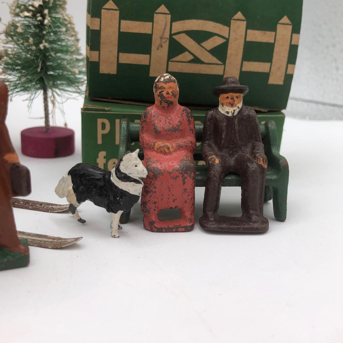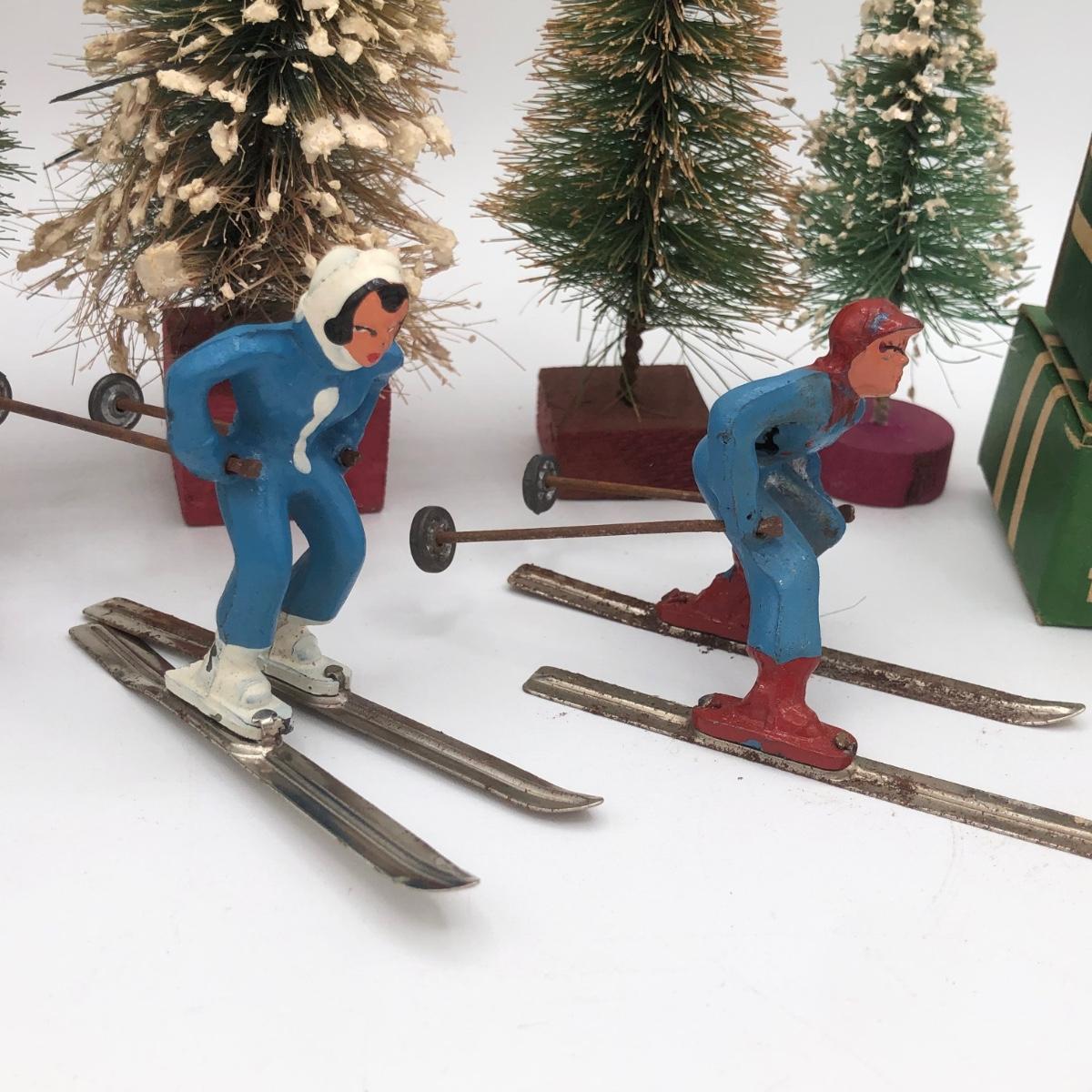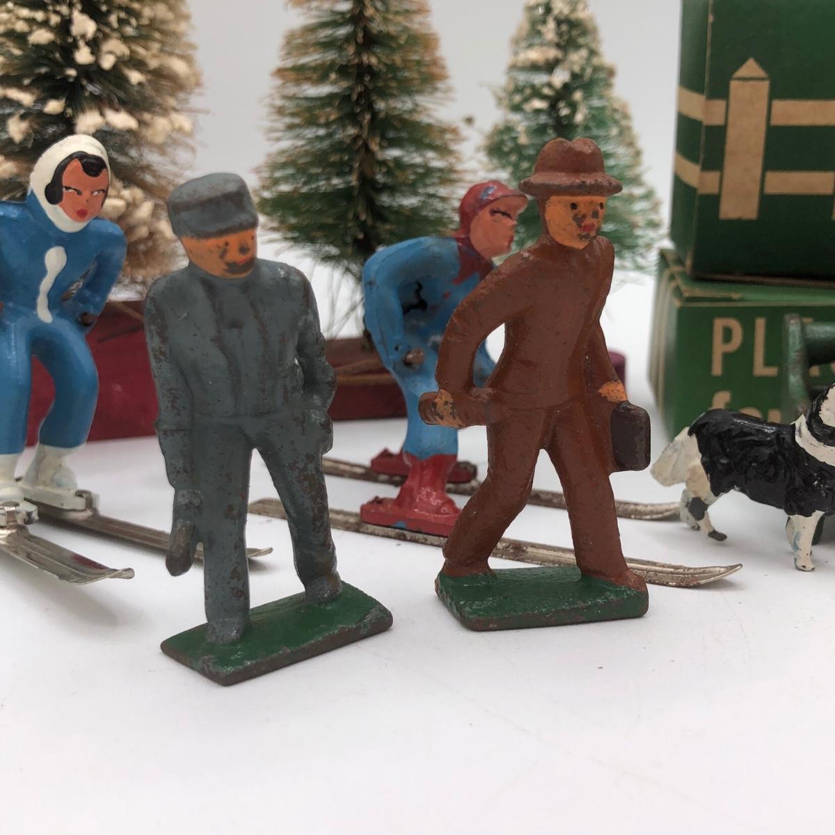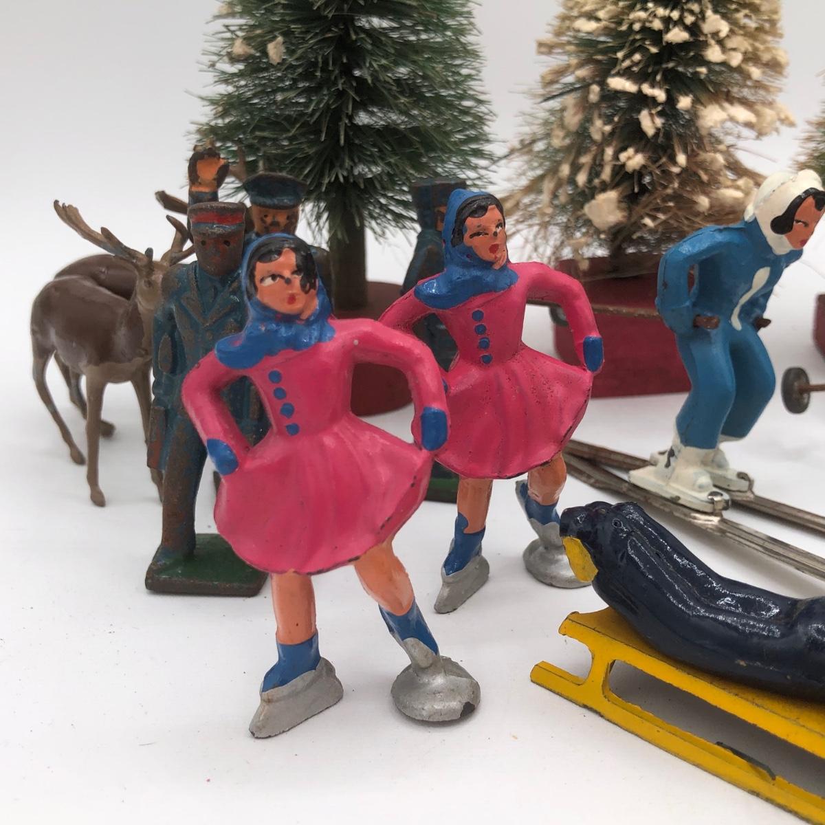 LOT 146B: Vintage Metal Winter Scene Figures w/ Bottle Brush Trees