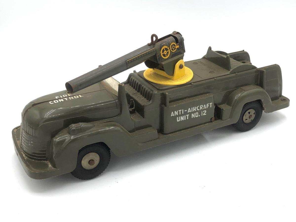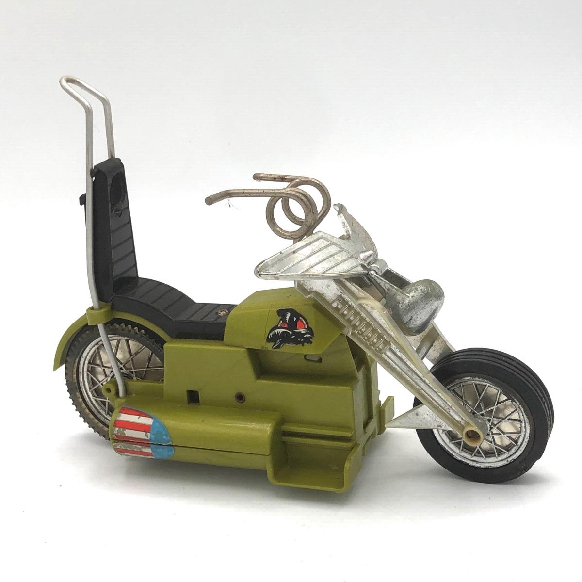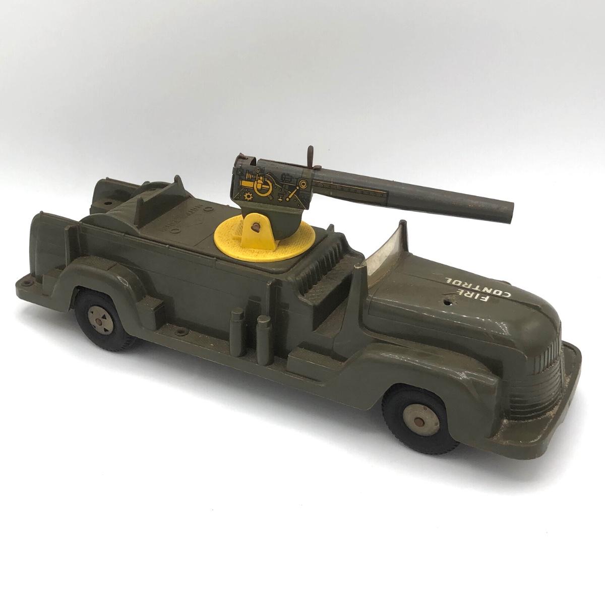 LOT 149B: Vintage 1950s Marx Toys Anti-Aircraft Vehicle, 1971 Hasbro Buzzard Screamin Demons Daredevil's Bike (No Doll) & Vintage Plastic Derby Car