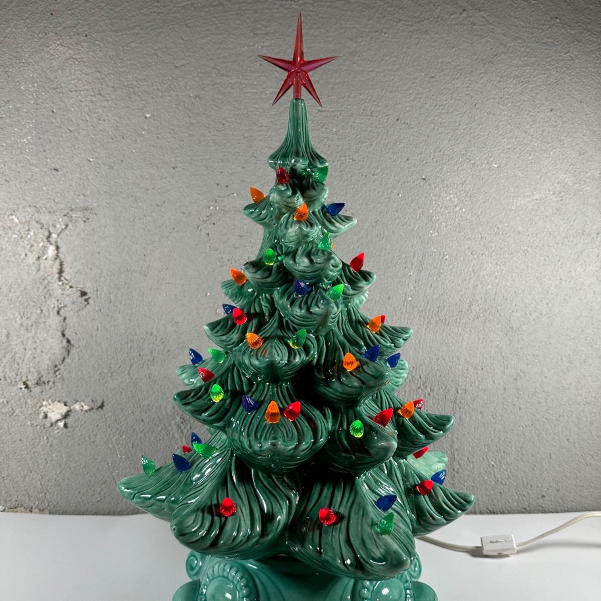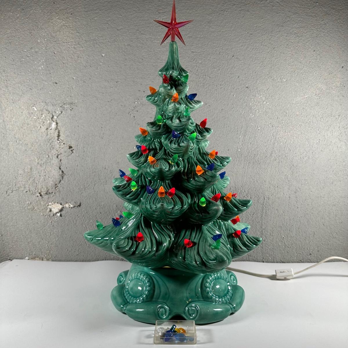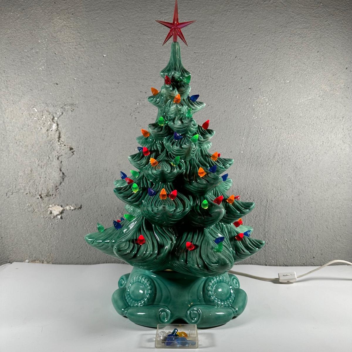 LOT 186: Vintage Atlantic Mold 19" Ceramic Green Christmas Tree w/ Extra Lights