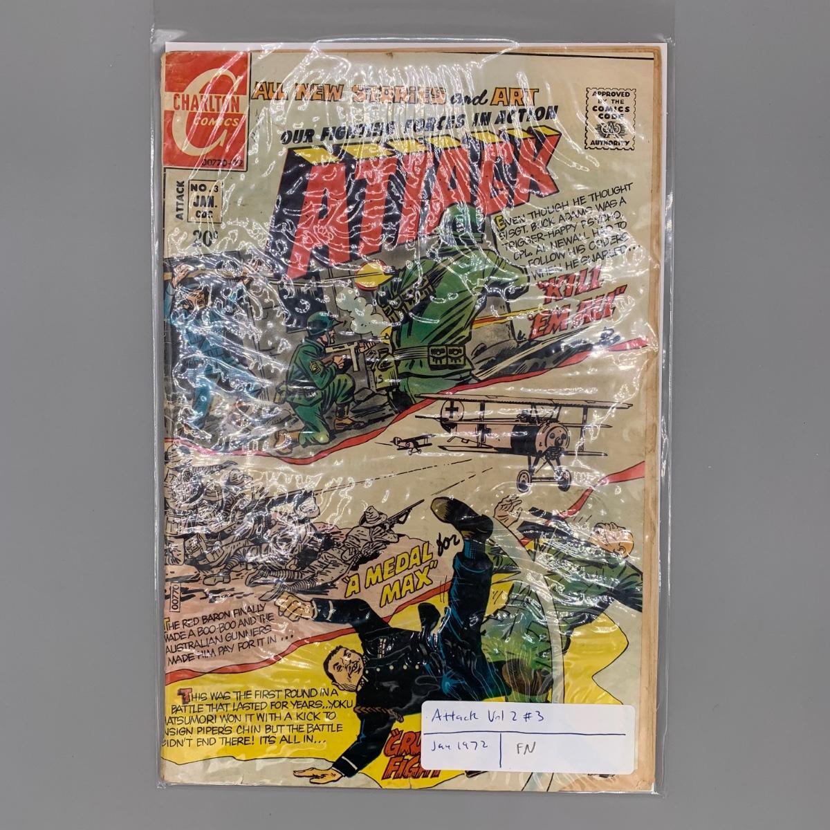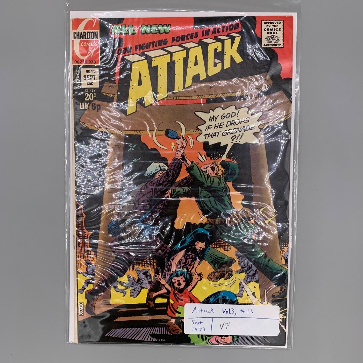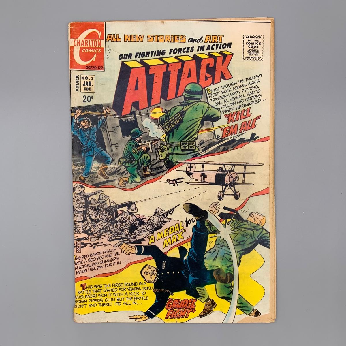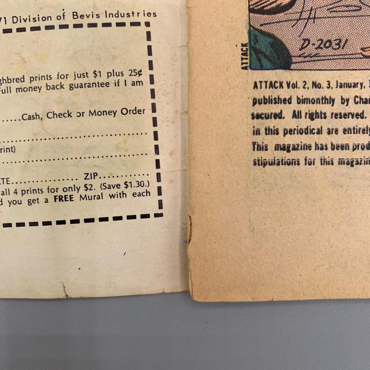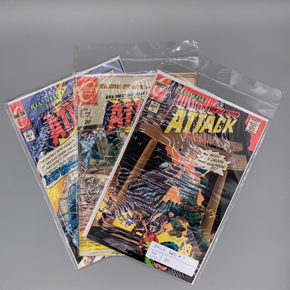 LOT 203: Attack Vol. 3 #12 Jul. 1973, Vol. 2 #3 Jan. 1972, & Vol. 3 #13 Sept. 1973 Comic Books