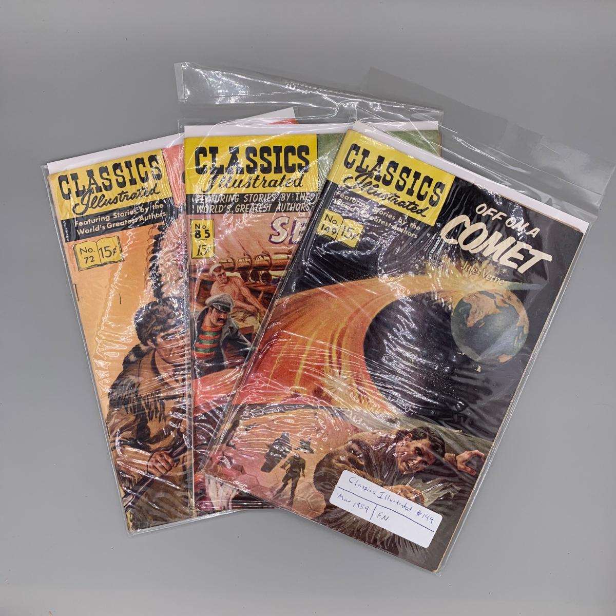 LOT 204: Classics Illustrated The Oregon Trail #72 Jun. 1950, Jack London's Sea Wolf #85 Jul. 1951, & Off On A Comet #149 Mar. 1959 Comic Books