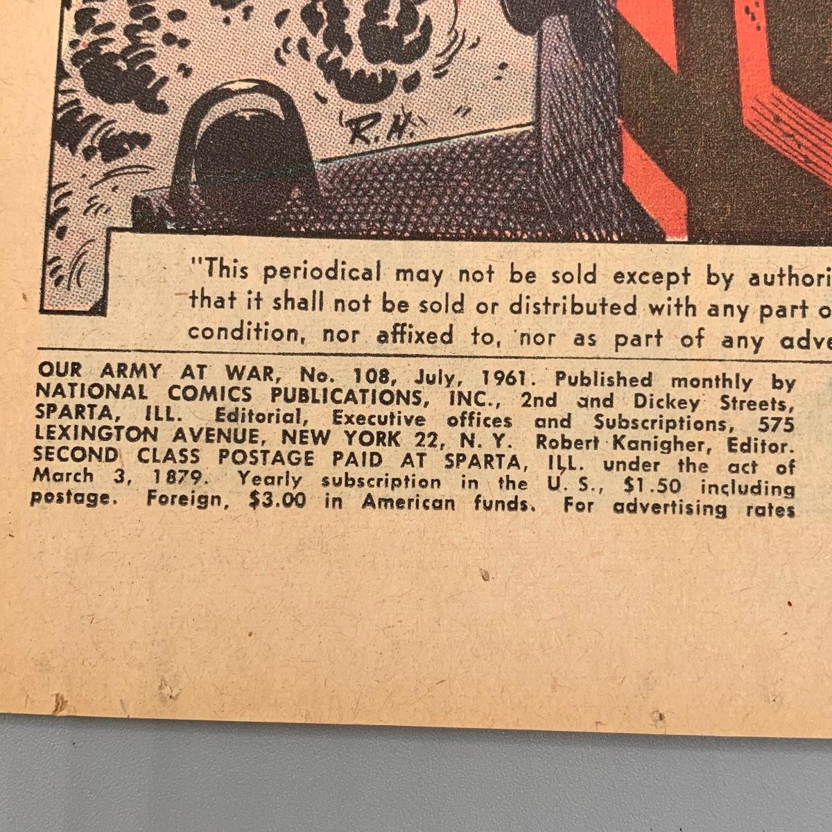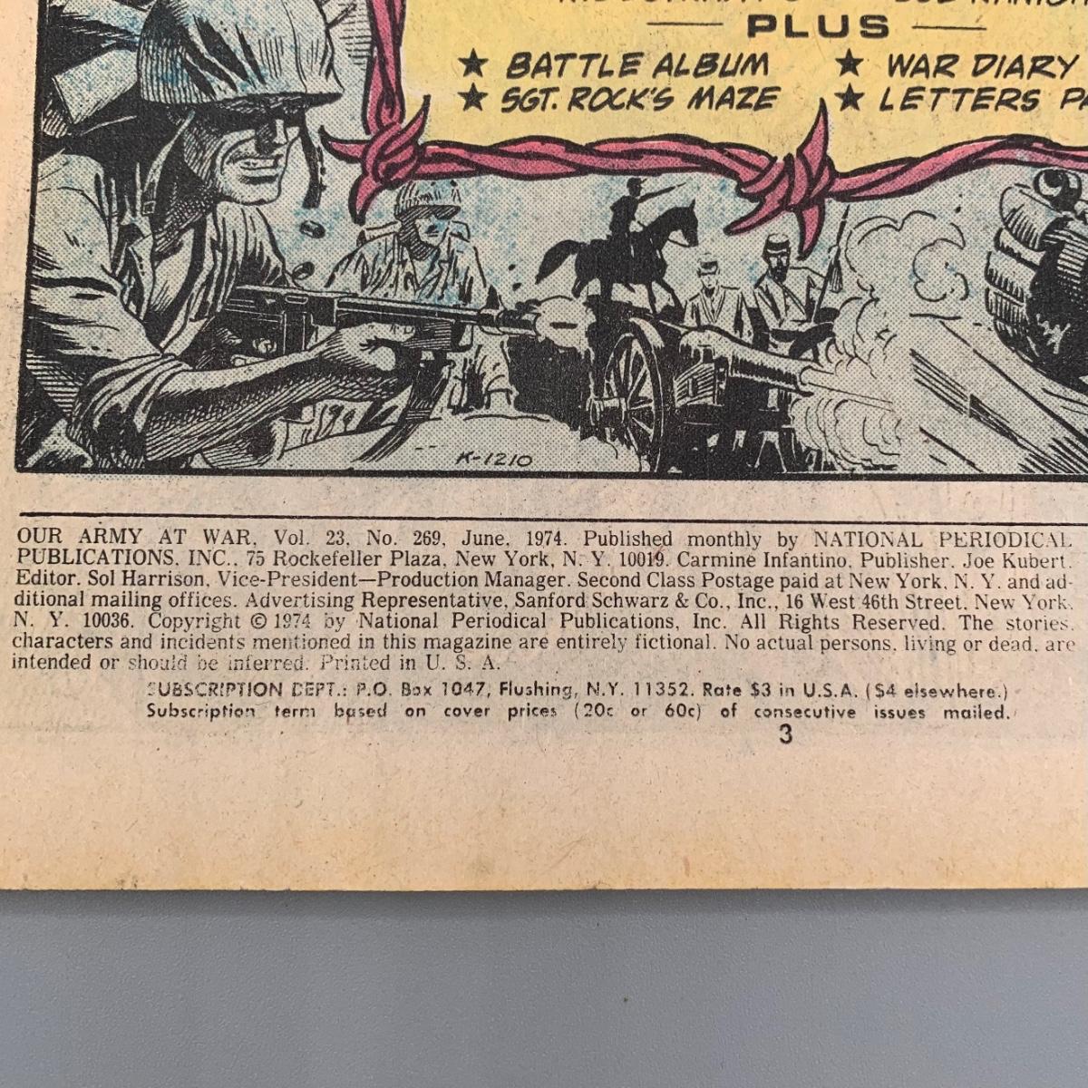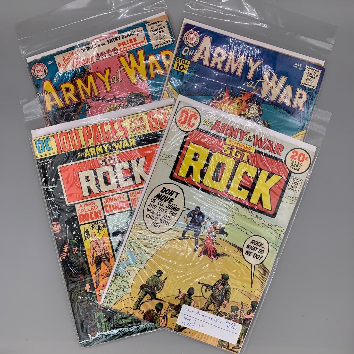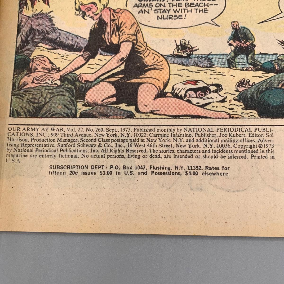 LOT 206: Our Army At War #50 Sept. 1956, #108 Jul. 1961, Vol. 23 #269. Jun. 1974, & Vol. 22 #260 Sept. 1973 Comic Books
