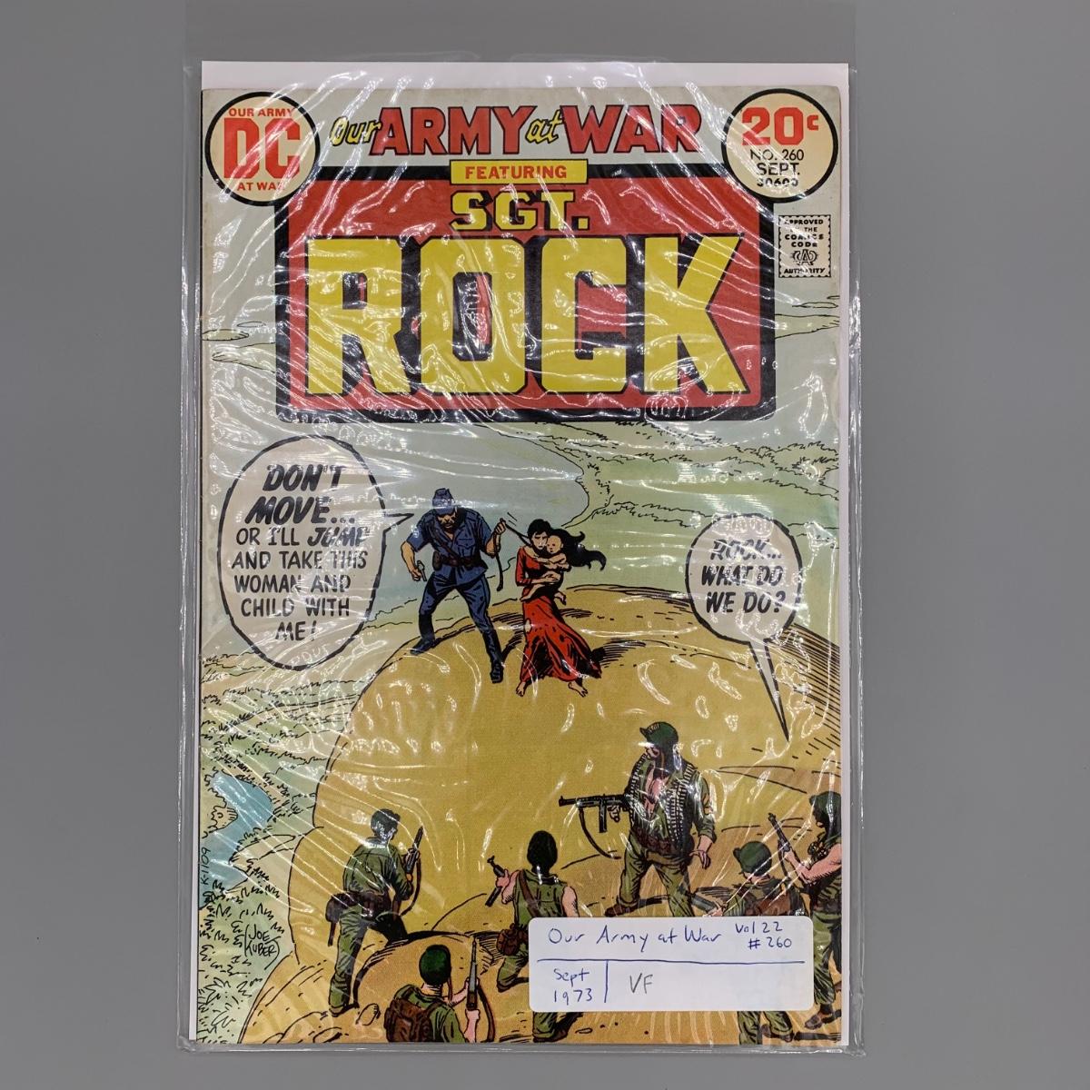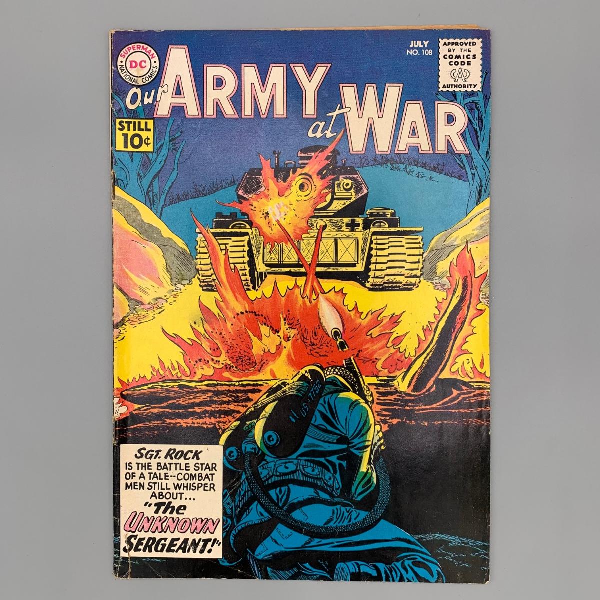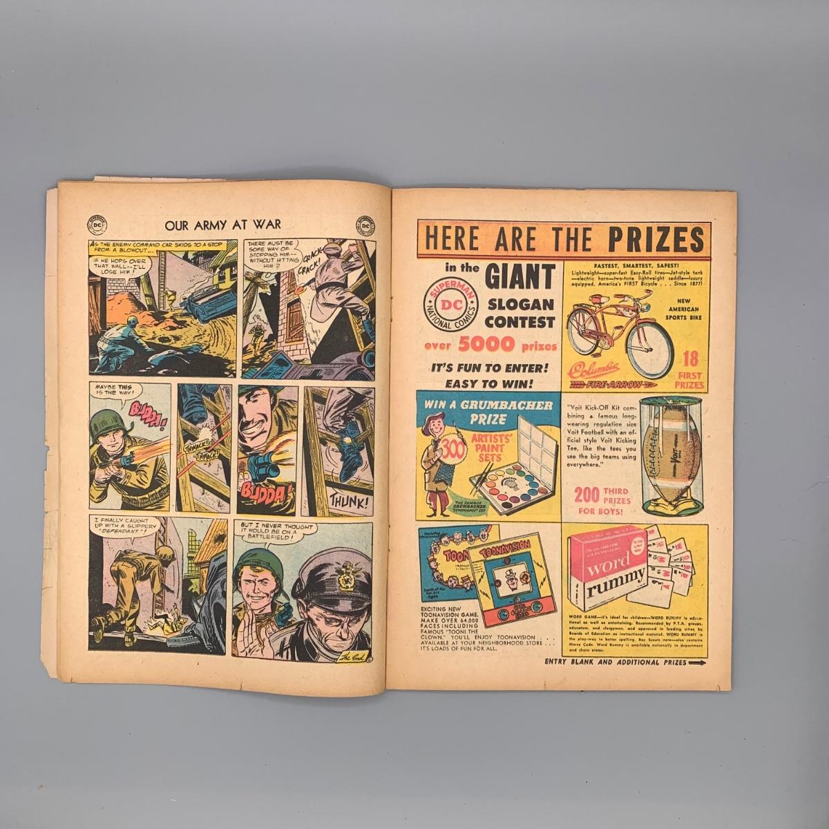 LOT 206: Our Army At War #50 Sept. 1956, #108 Jul. 1961, Vol. 23 #269. Jun. 1974, & Vol. 22 #260 Sept. 1973 Comic Books