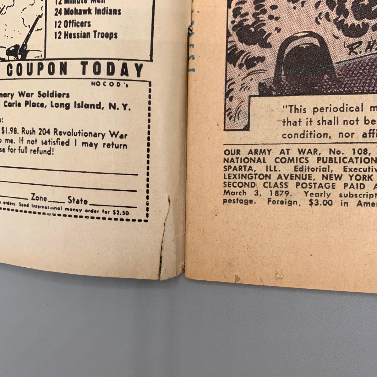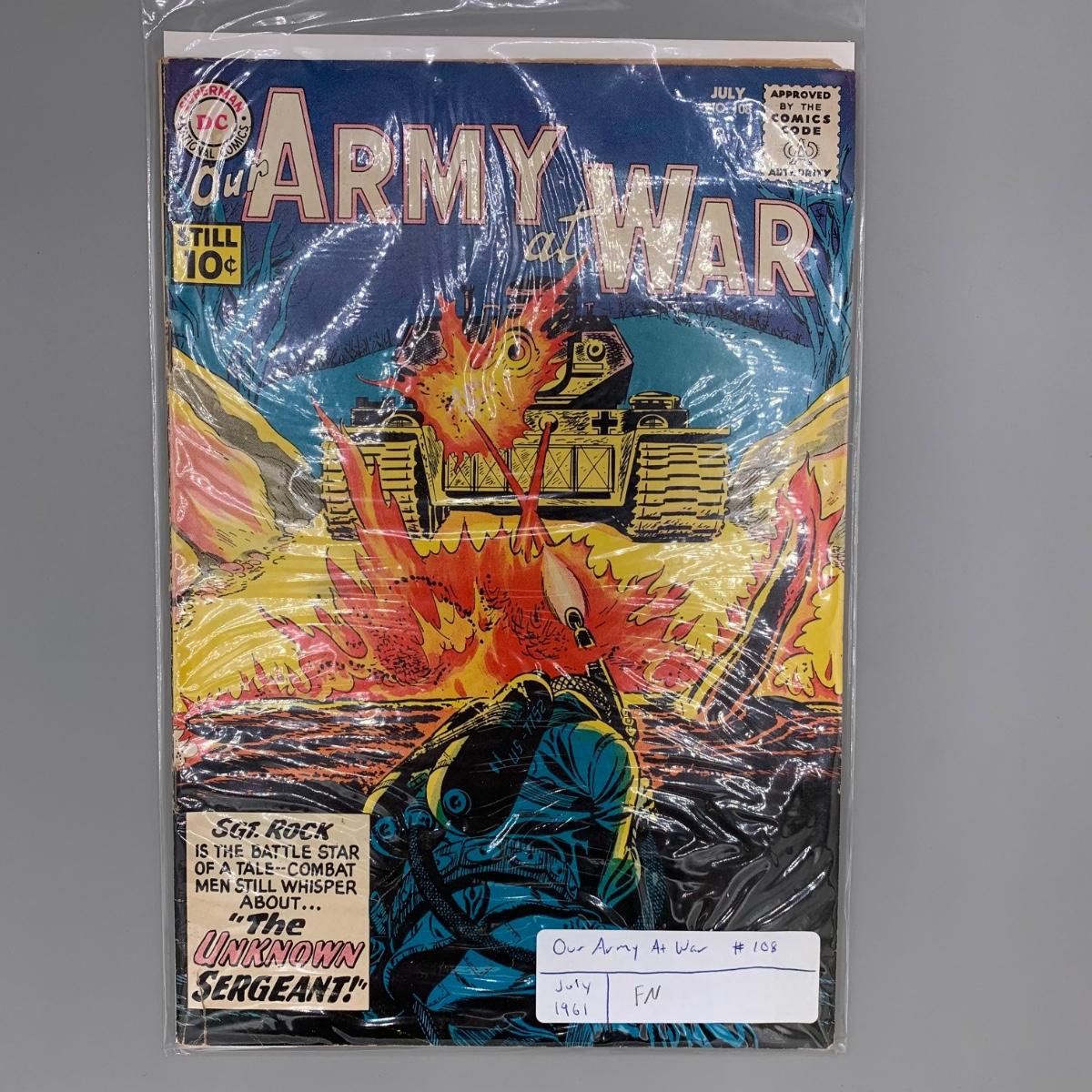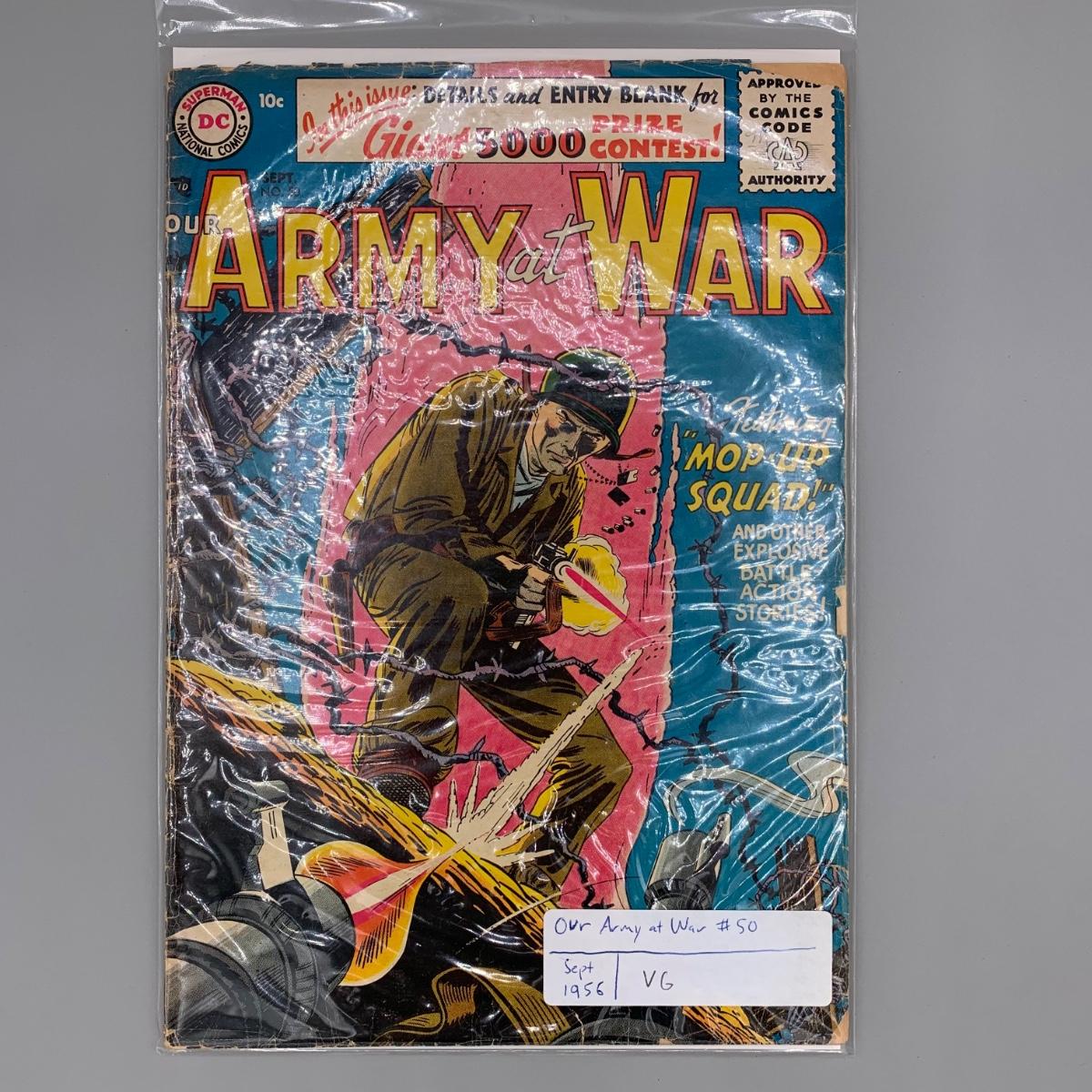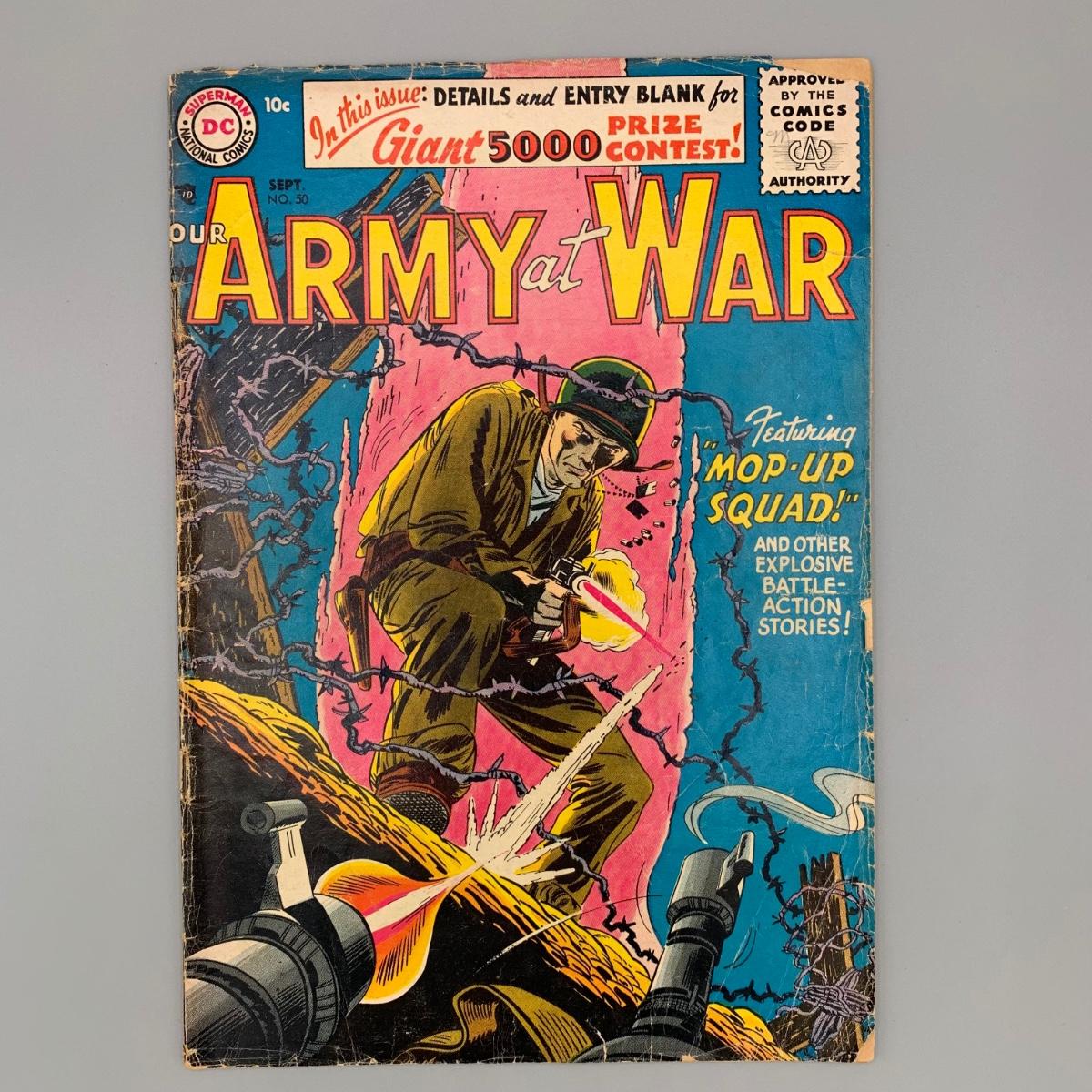 LOT 206: Our Army At War #50 Sept. 1956, #108 Jul. 1961, Vol. 23 #269. Jun. 1974, & Vol. 22 #260 Sept. 1973 Comic Books