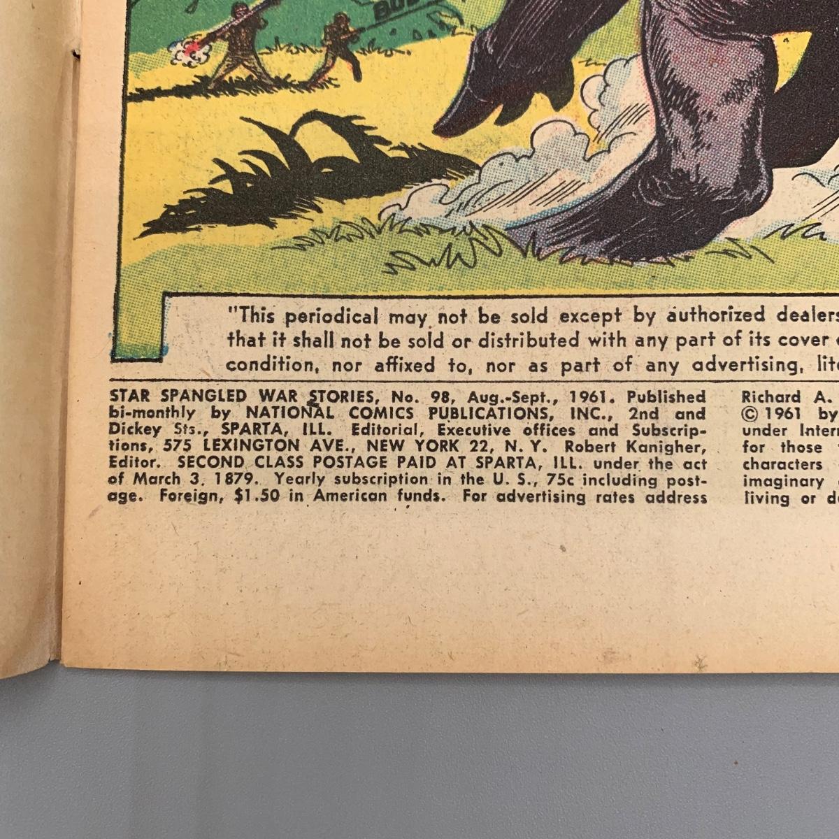 LOT 207: Star Spangled War Stories #97 Jun. - Jul. 1961, #98 Aug. - Sept. 1961, Vol. 22 #176 Dec. 1973, & #89 Feb. - Mar. 1960 Comic Books