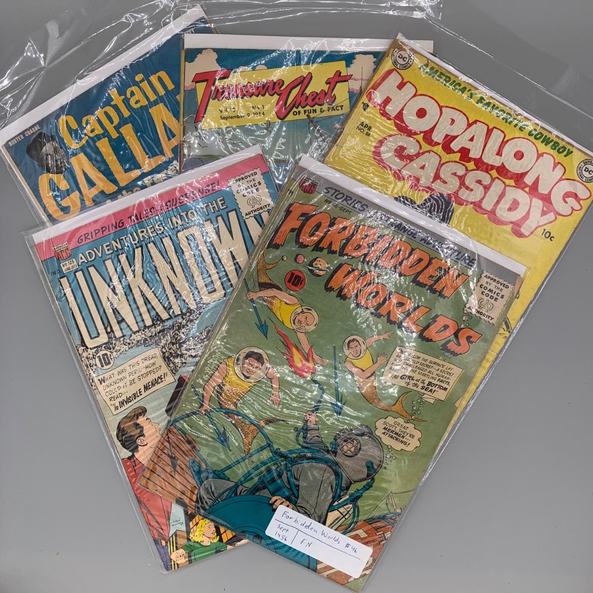 LOT 209: 1954 Treasure Chest of Fun and Fact Vol. 10 #1, Hopalong Cassidy #88 Apr. 1954, Adventures Into The Unknown #125 Jun. - Jul. 1961, & More Comic Books