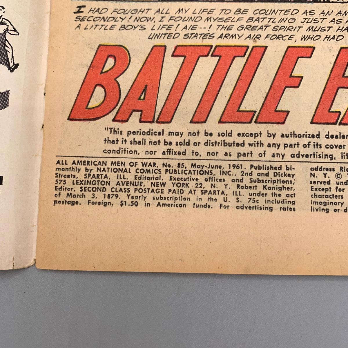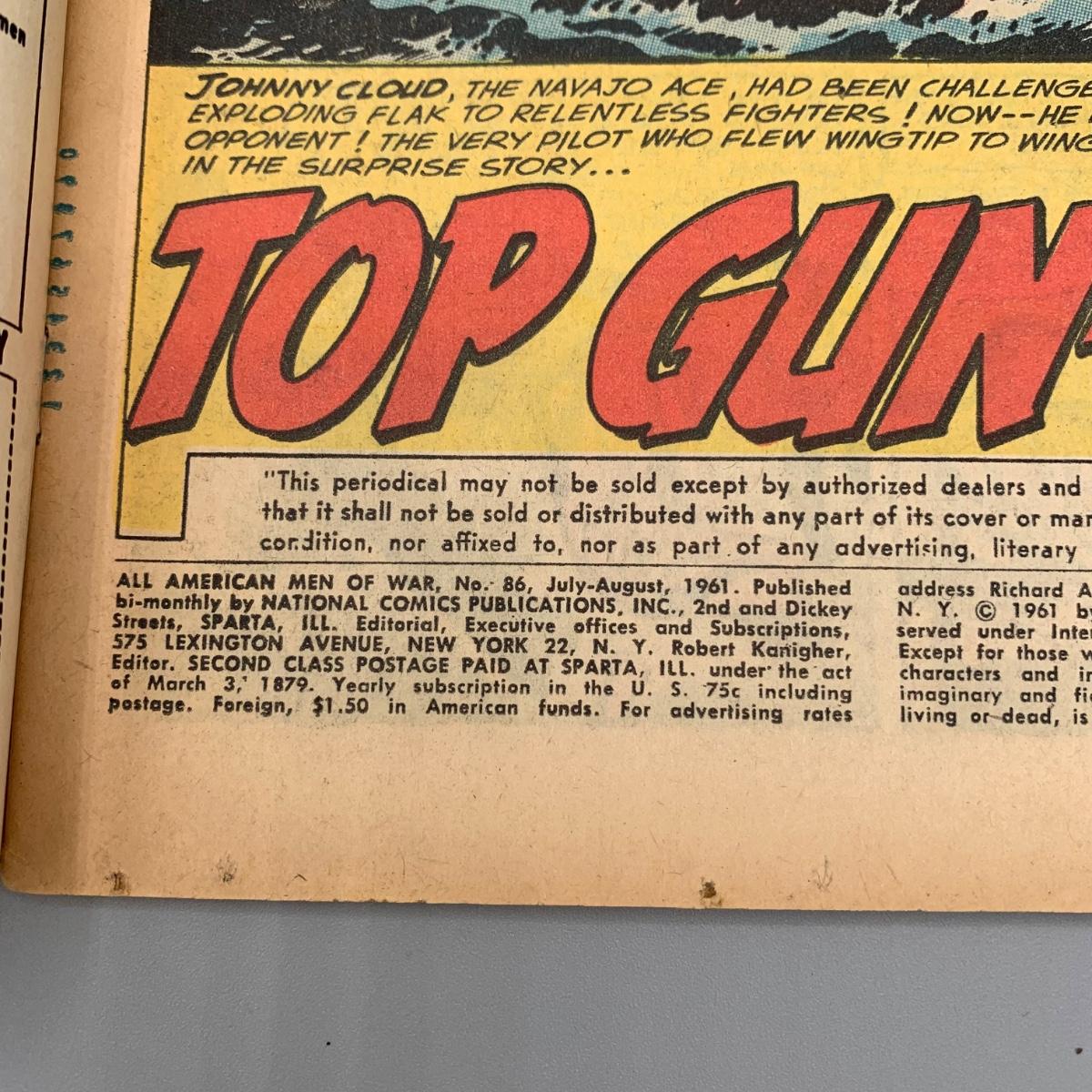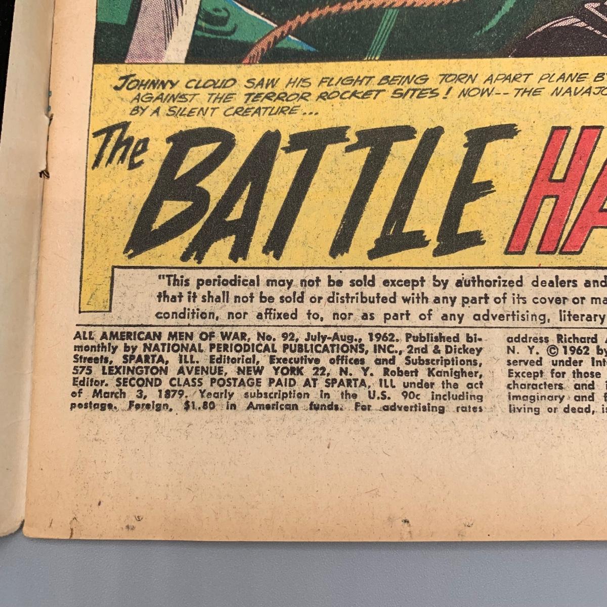 LOT 210: All American Men Of War #86 Jul. - Aug. 1961, #85 May - Jun. 1961, & #92 Jul. - Aug. 1962 Comic Books