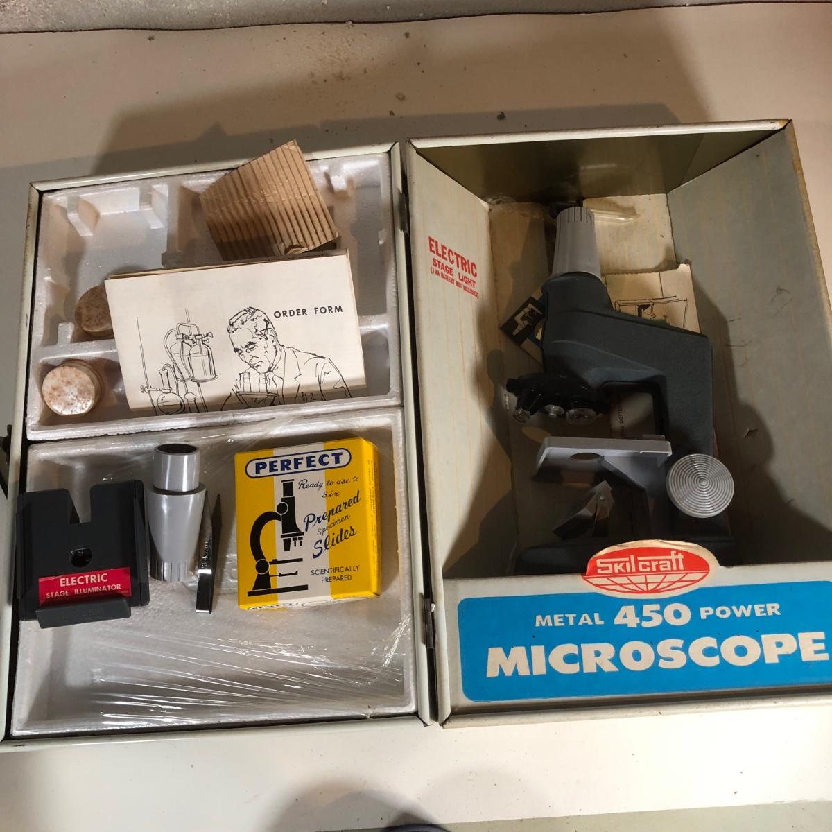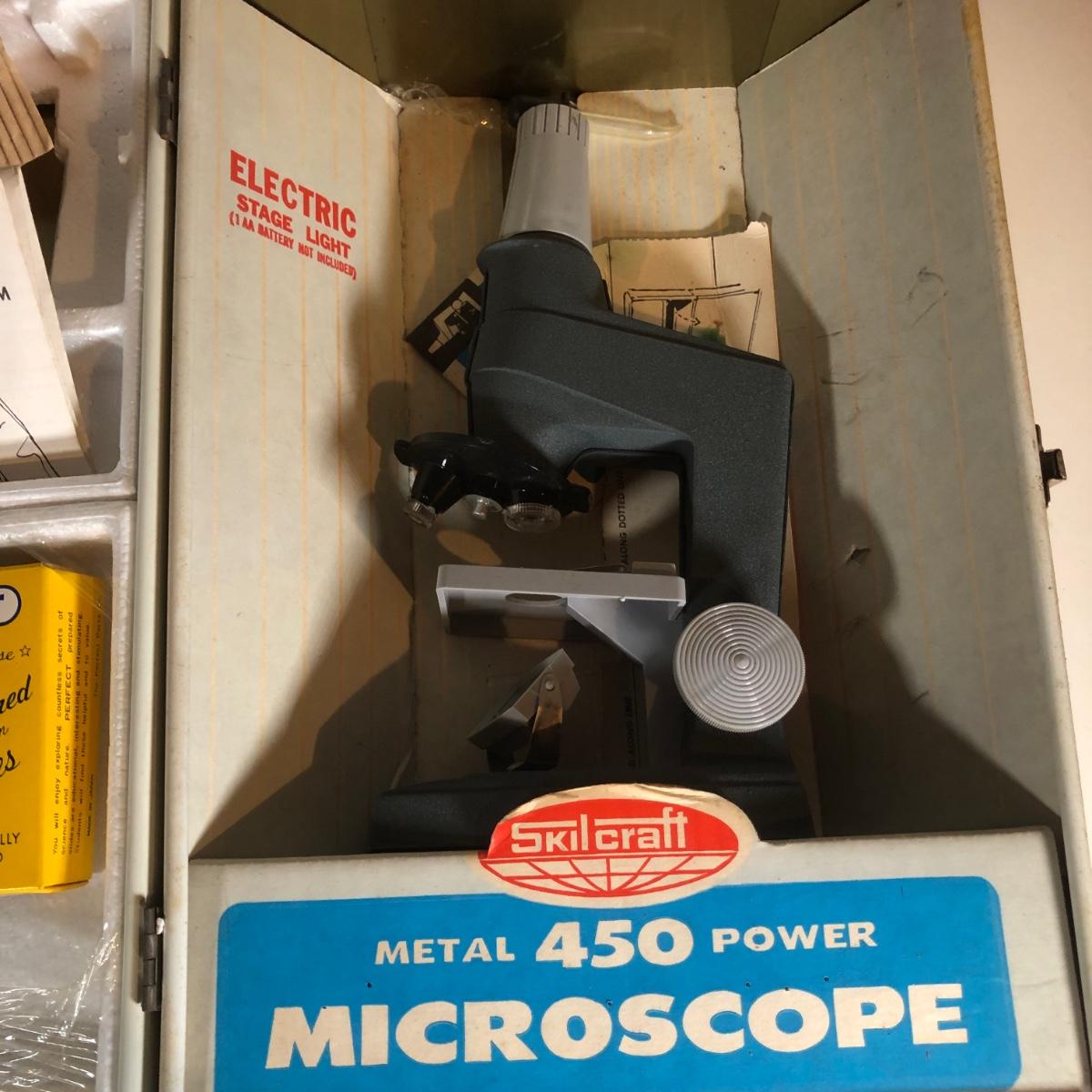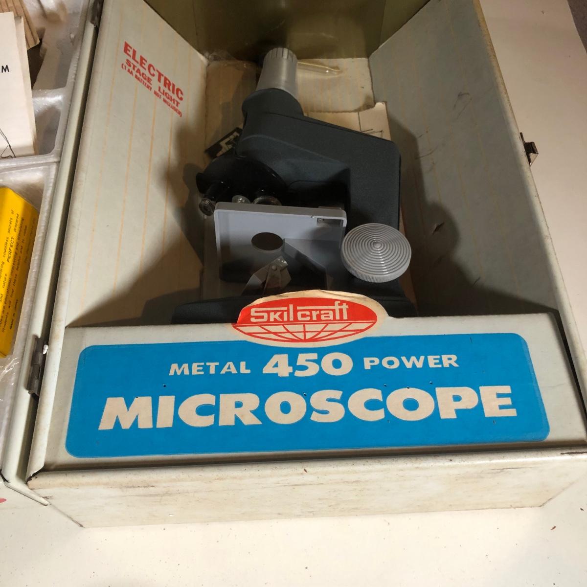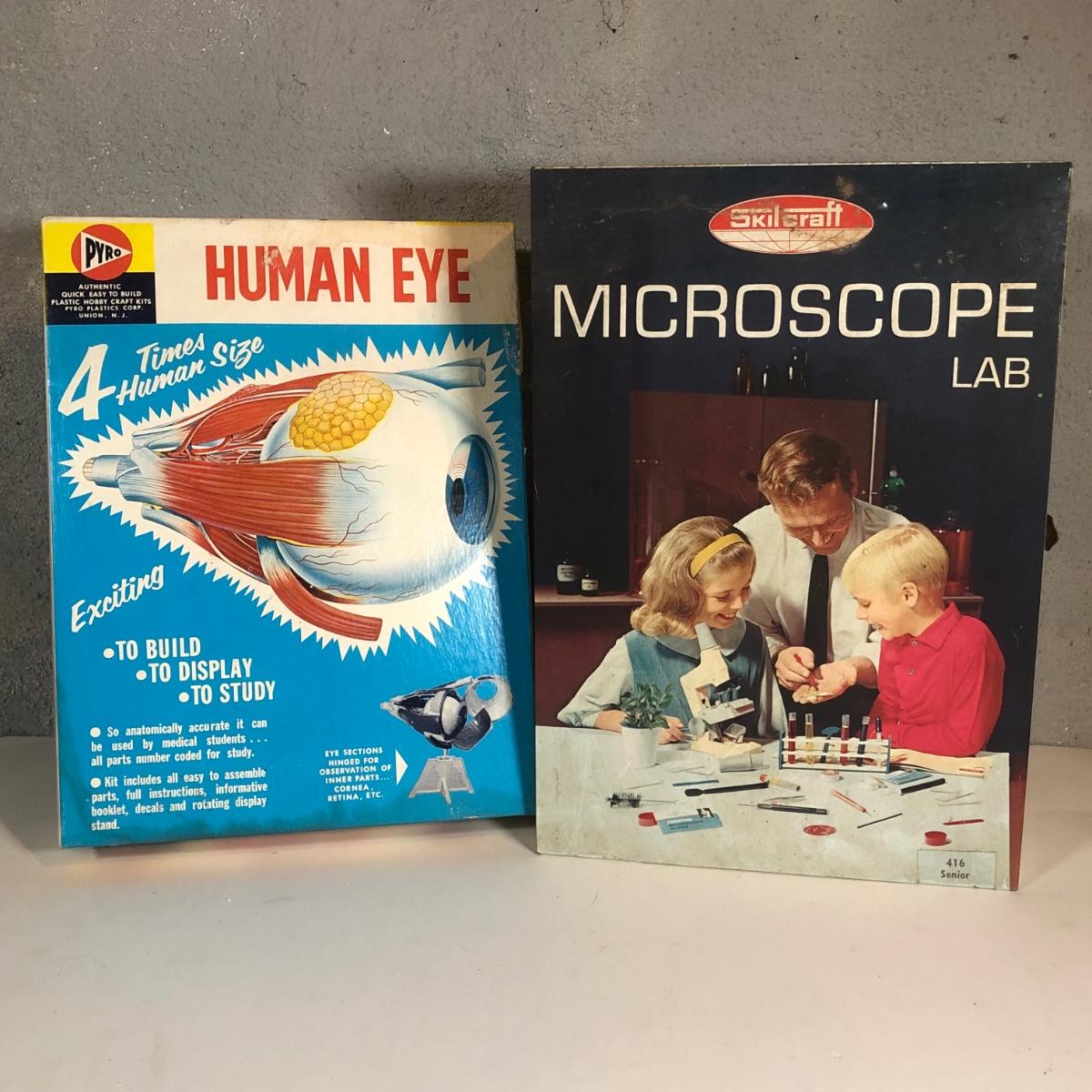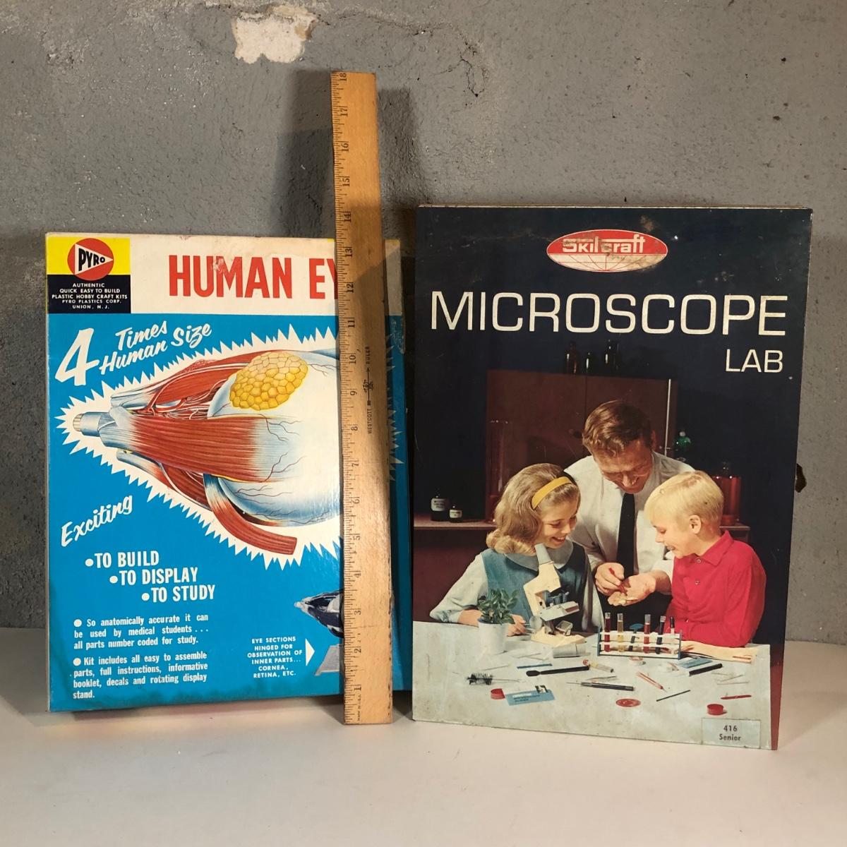 LOT 242B: Vintage Kids' Science - Pyro Human Eye Model Kit & Skilcraft Microscope Lab in Steel Case