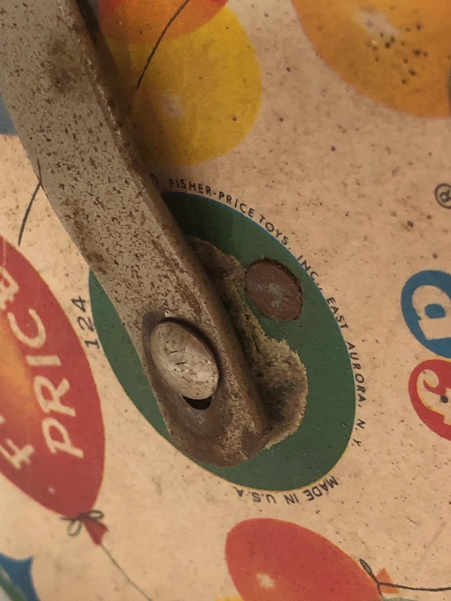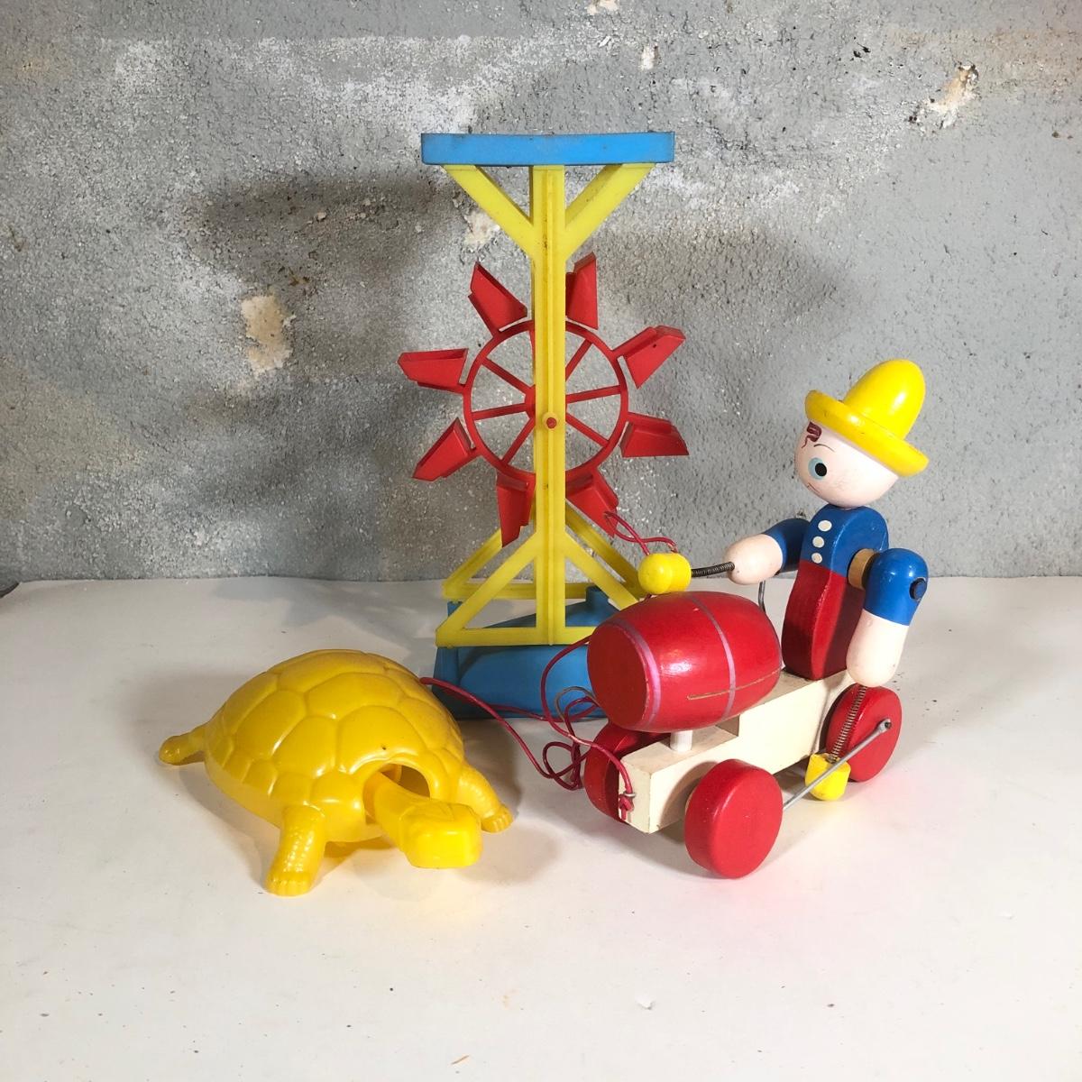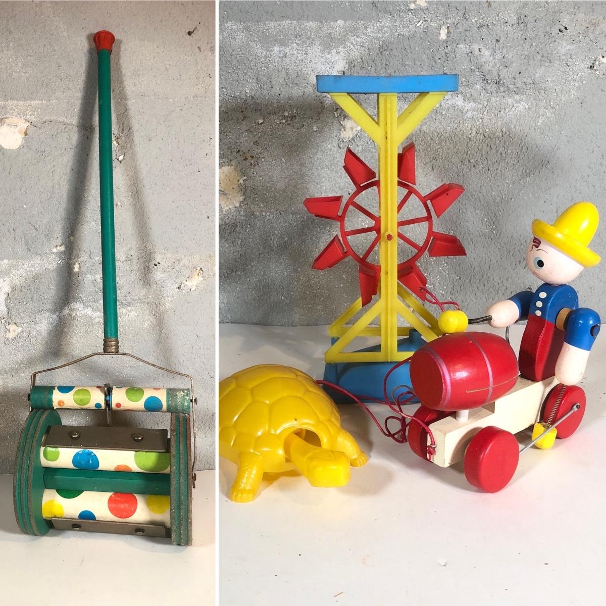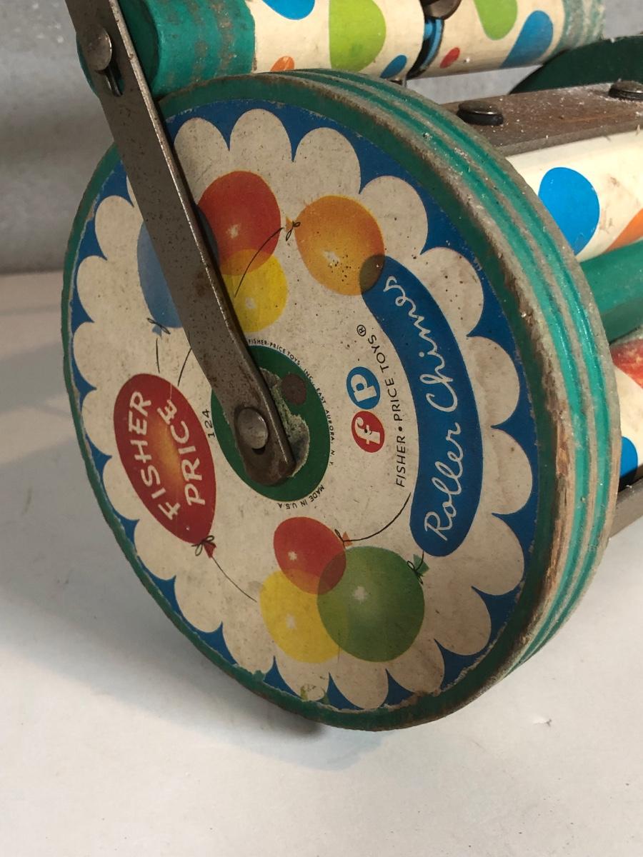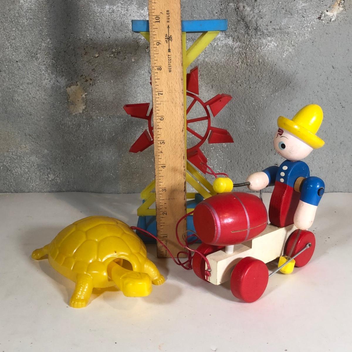 LOT 252B: Vintage Fisher Price Roller Chimes Push Toy, Plastic Toys & Red Robin Pull Toy