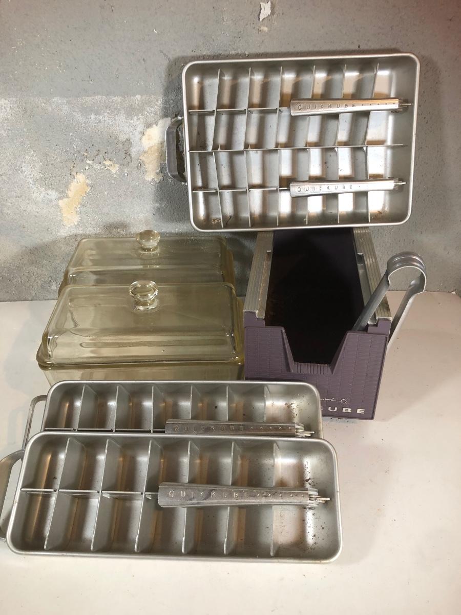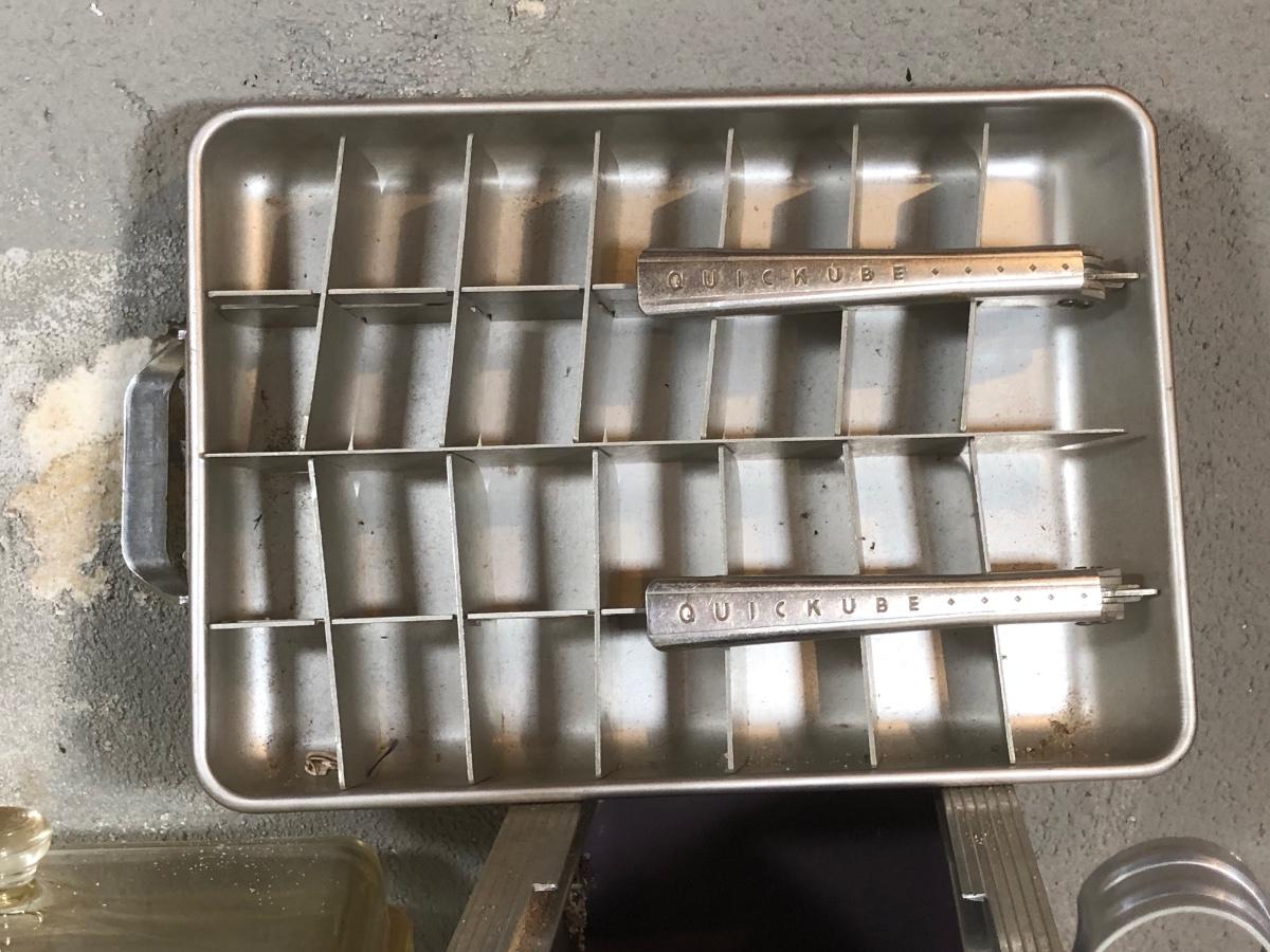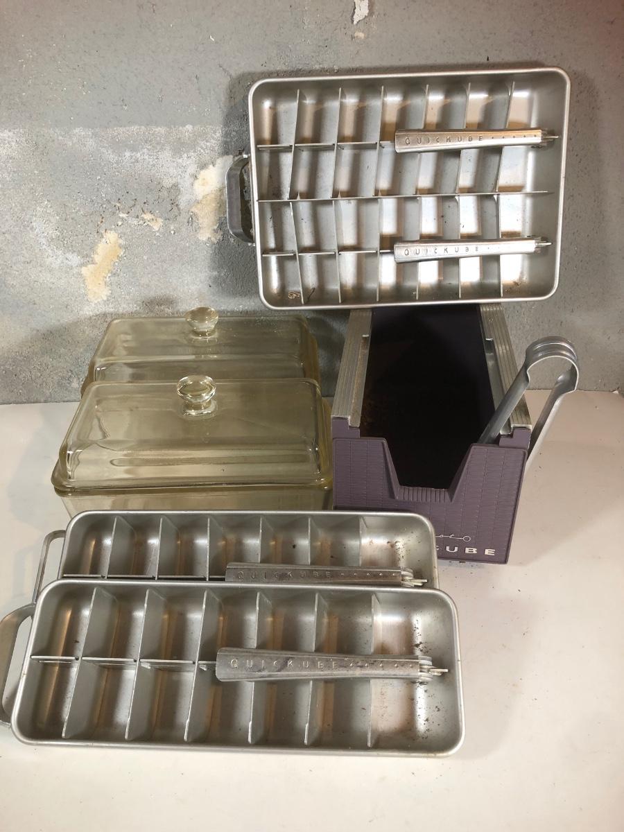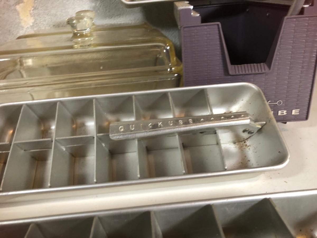 LOT 263B: Vintage Freezer Collection - Westinghouse Refrigerator Dishes, Frigidaire QuickCube Metal Ice Trays & Coldpot Autocube Ice Drawer