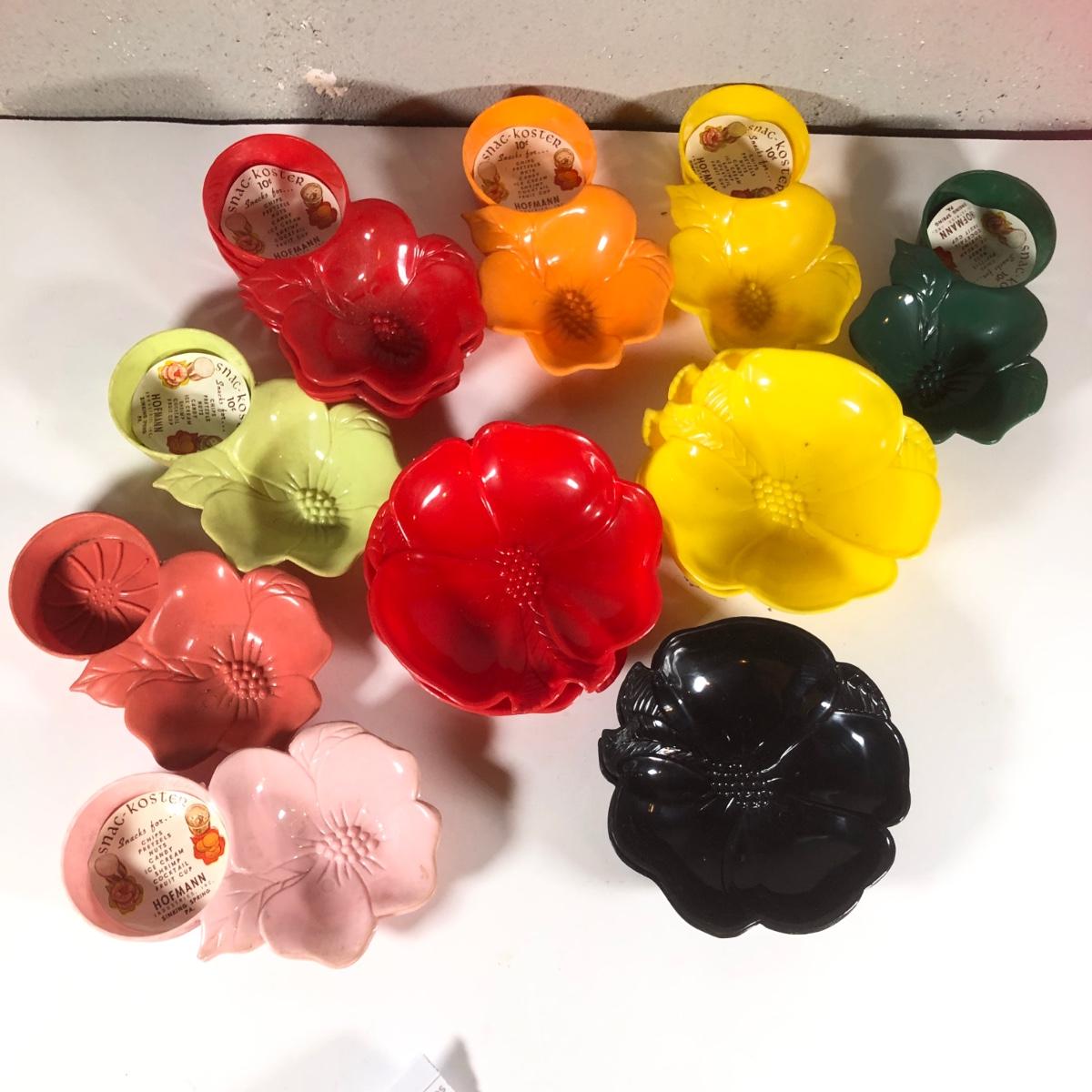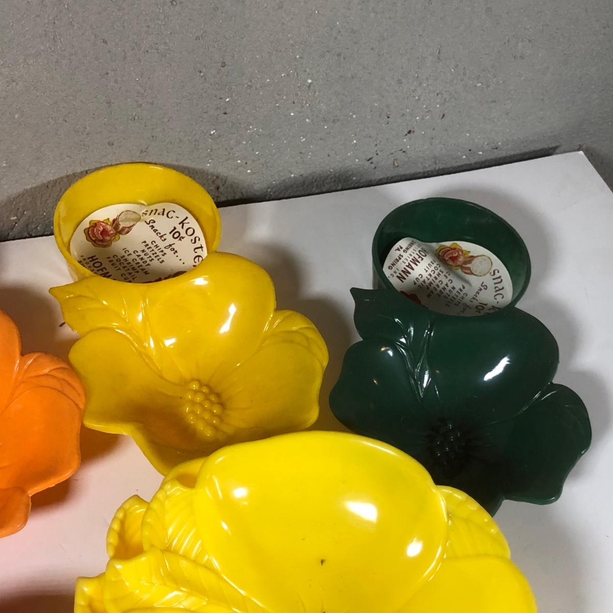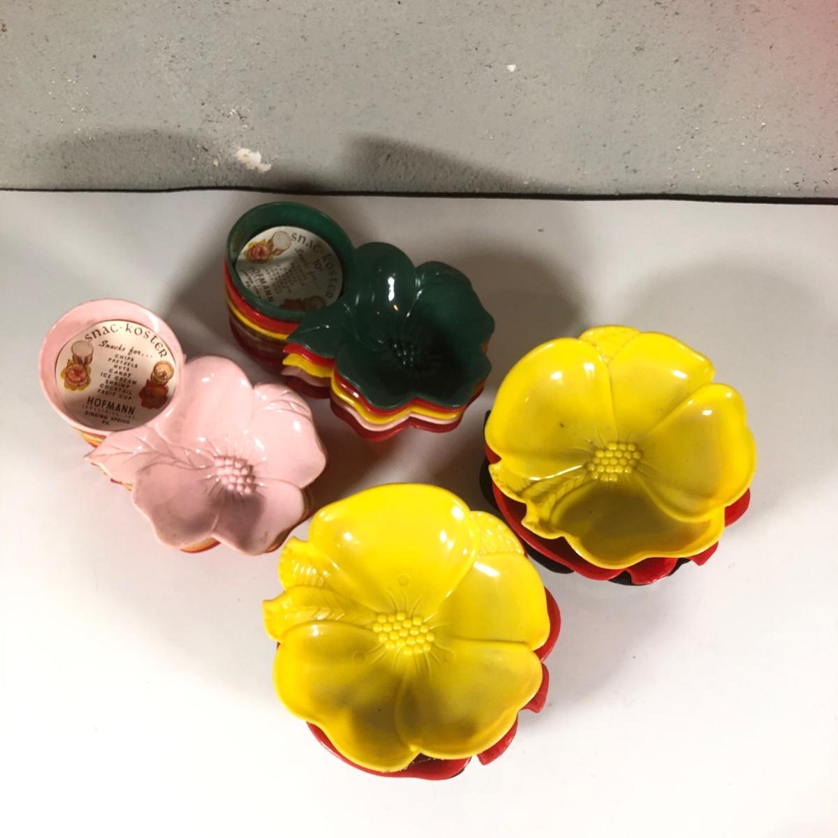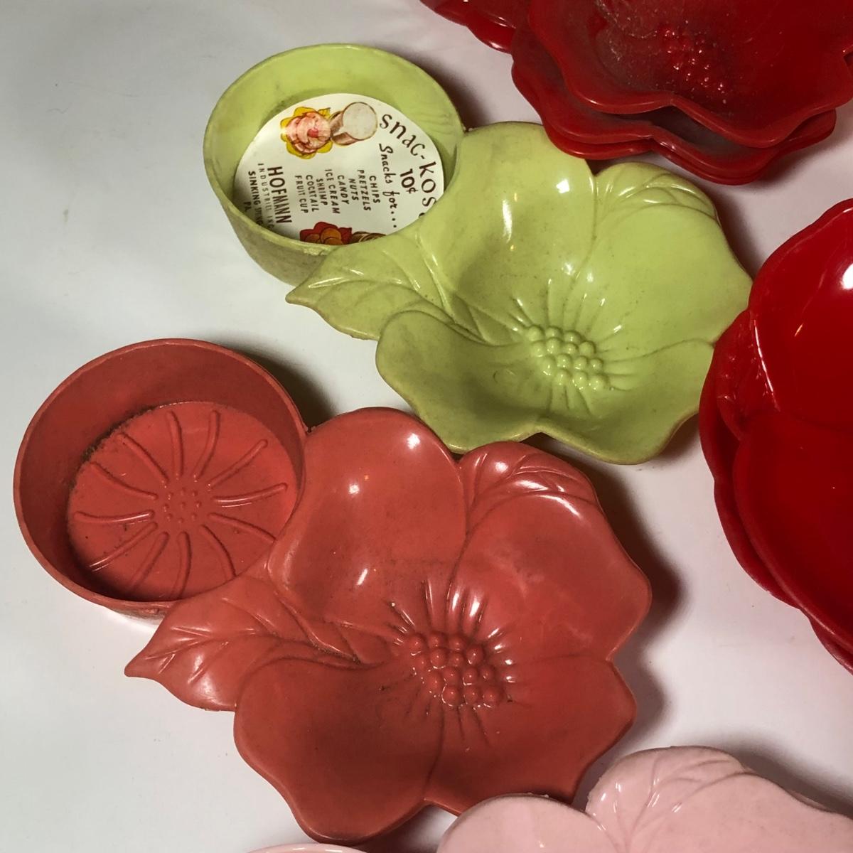LOT 266B: Vintage Hoffman Flower Plastic Snac-Koasters in Variety of Colors & Flower Bowls