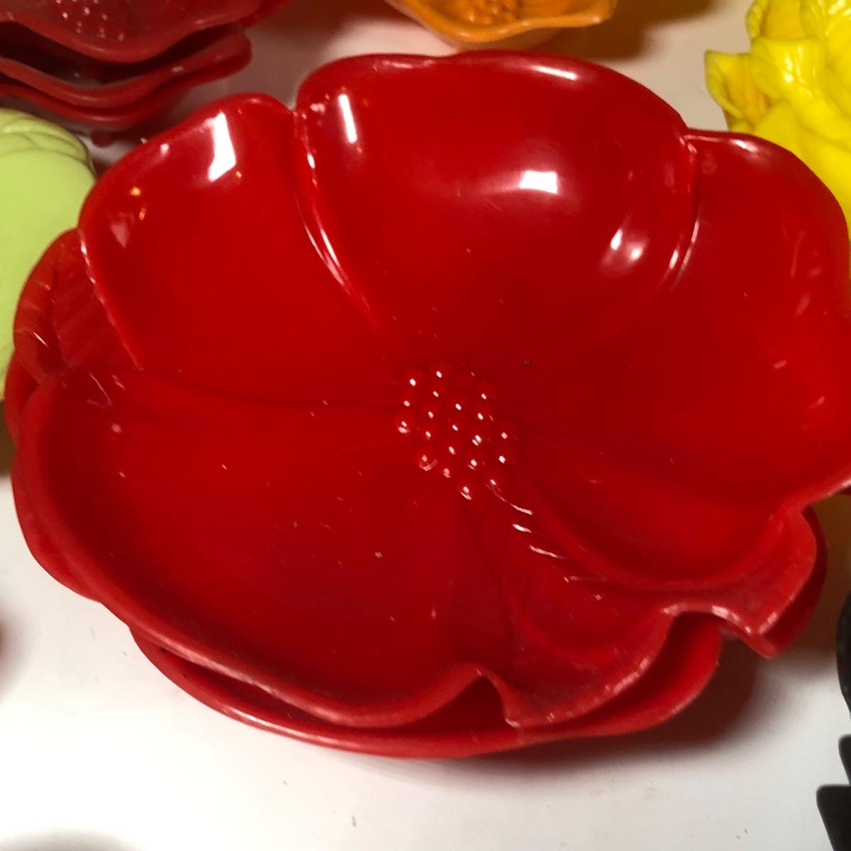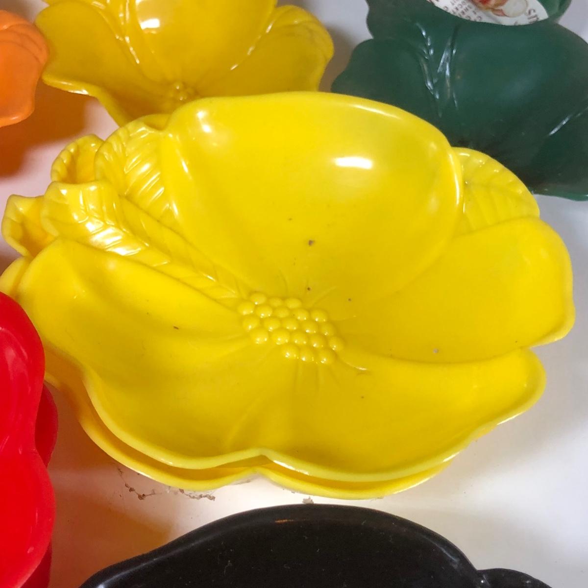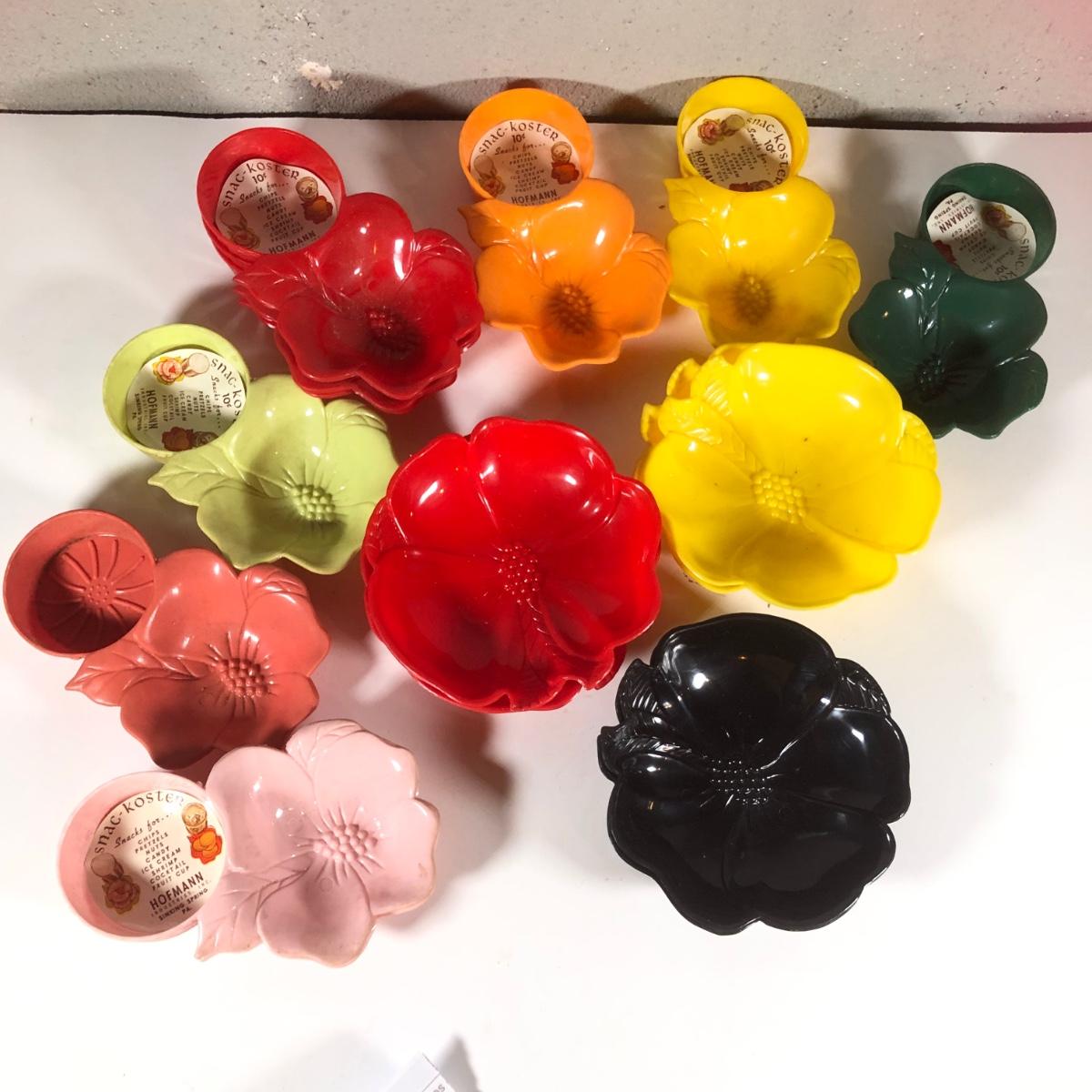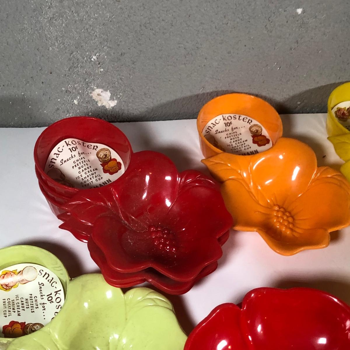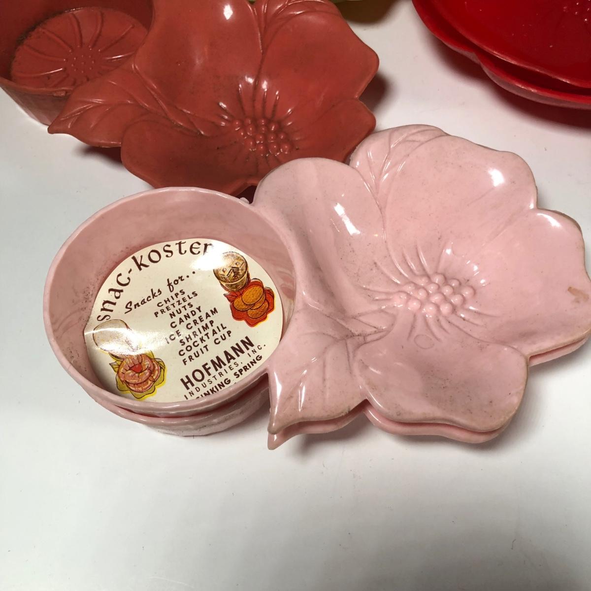LOT 266B: Vintage Hoffman Flower Plastic Snac-Koasters in Variety of Colors & Flower Bowls
