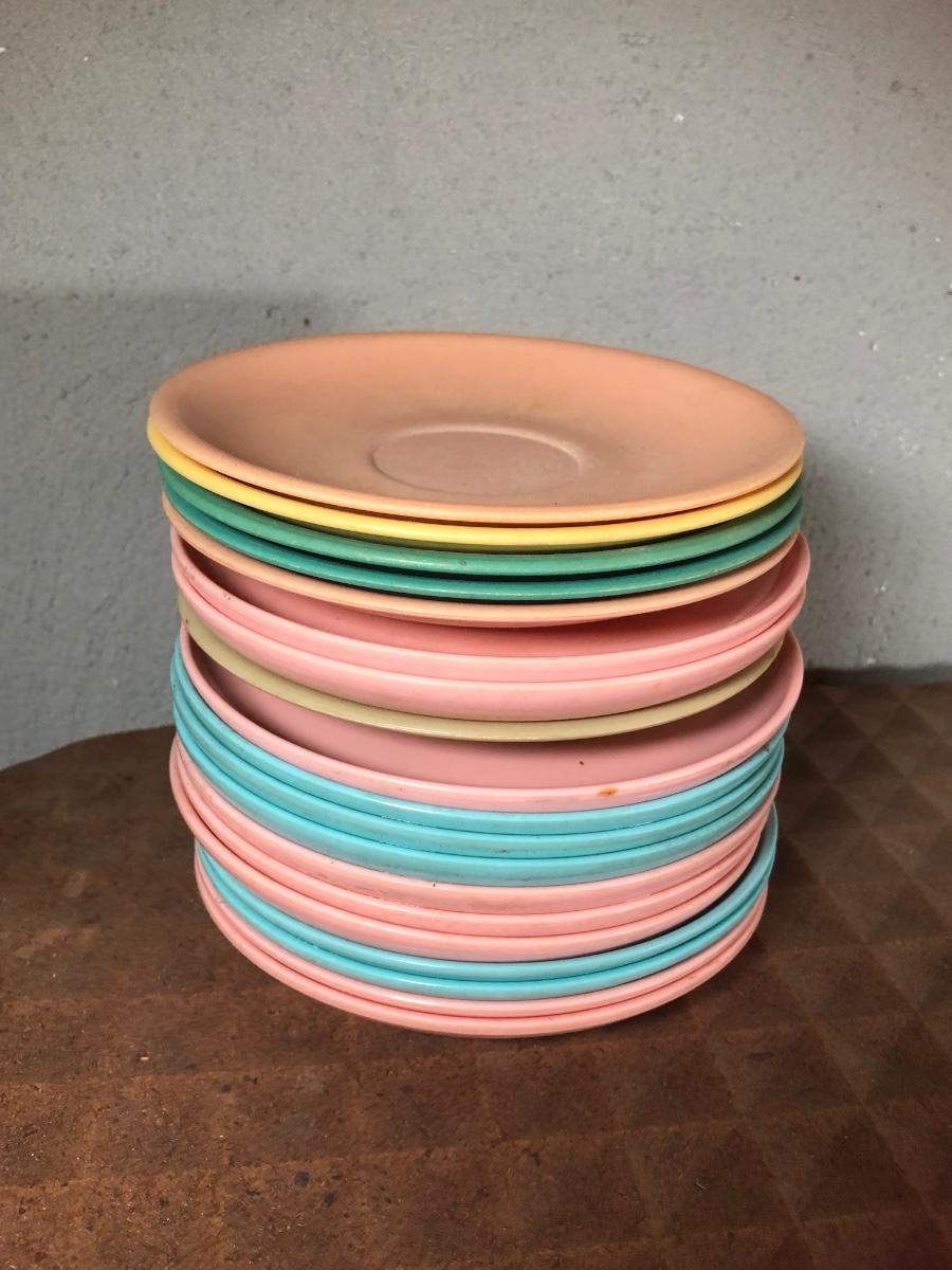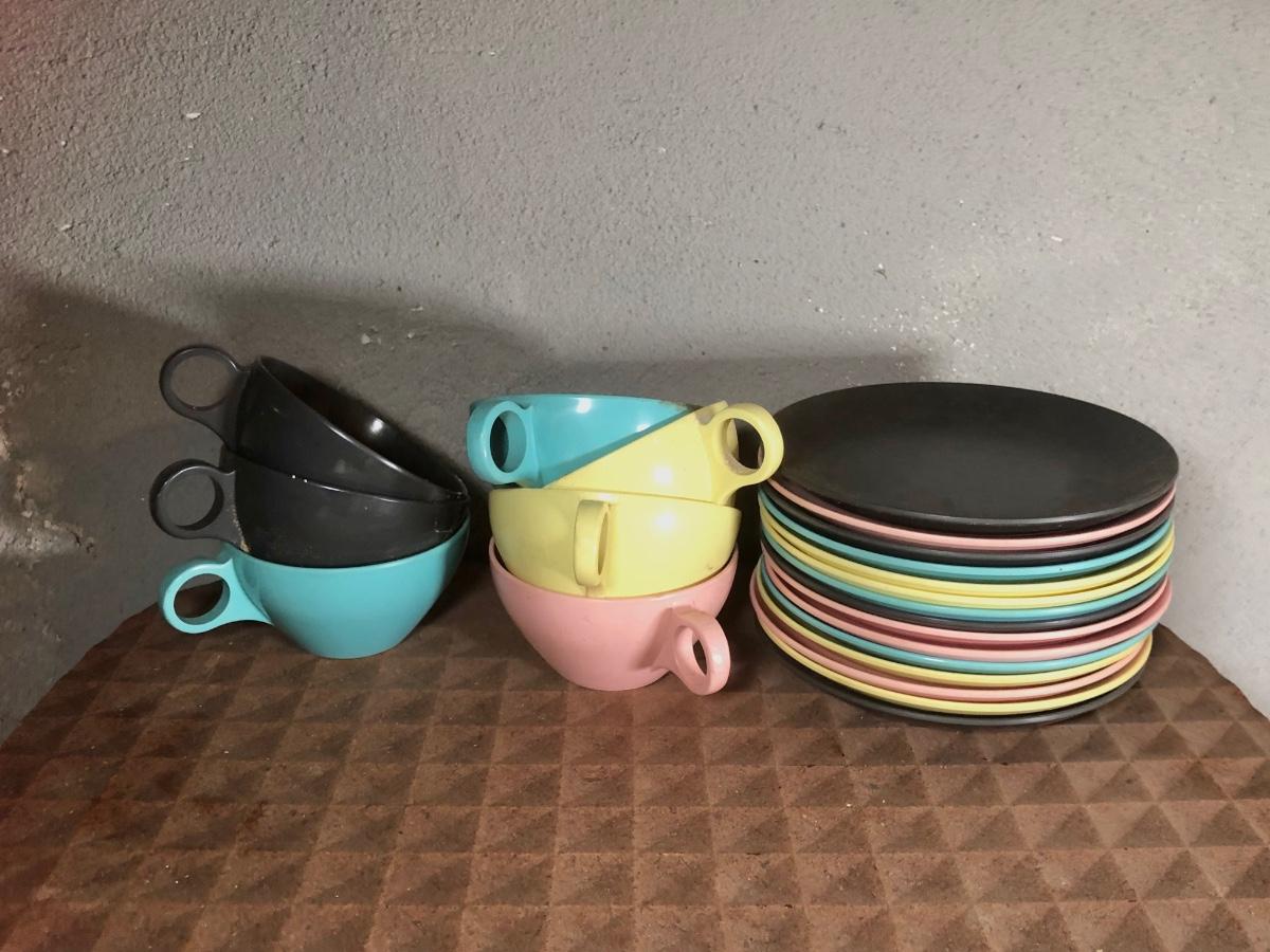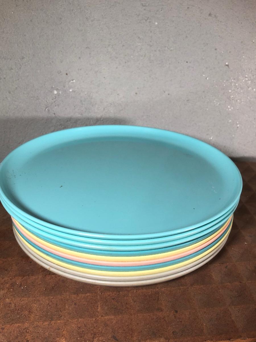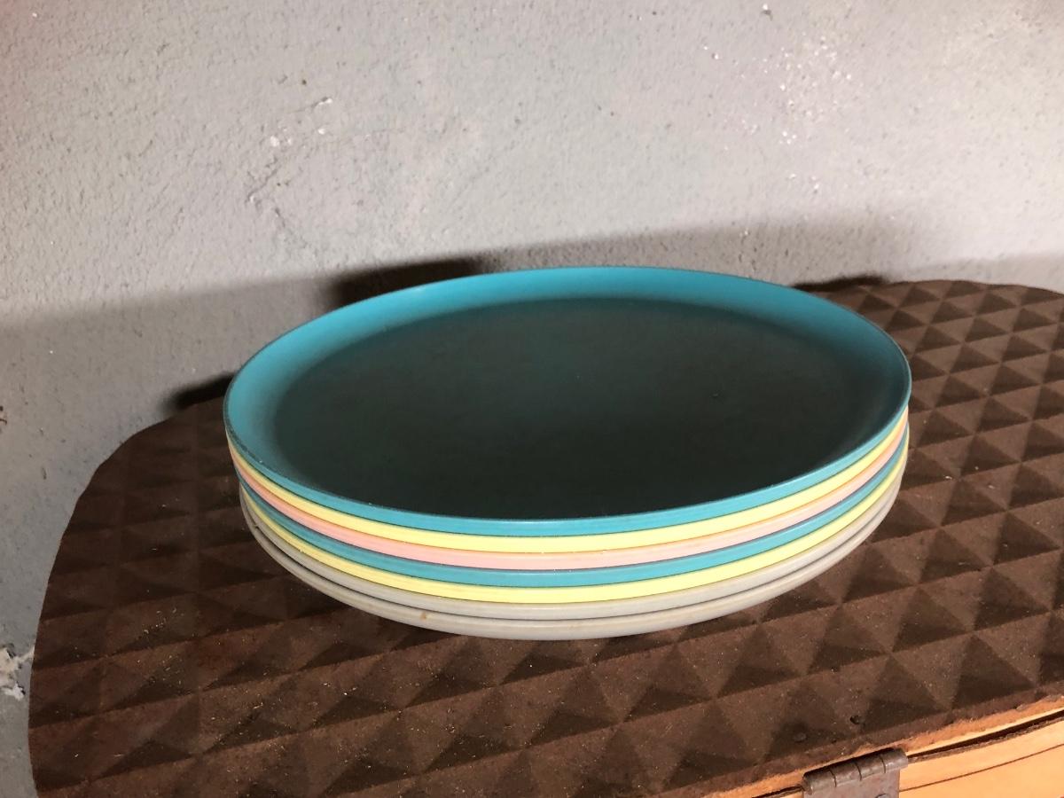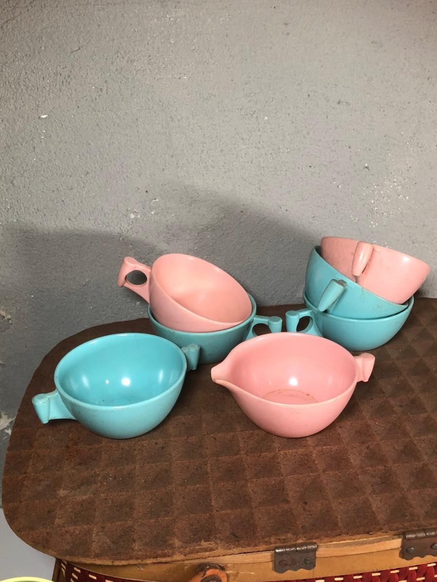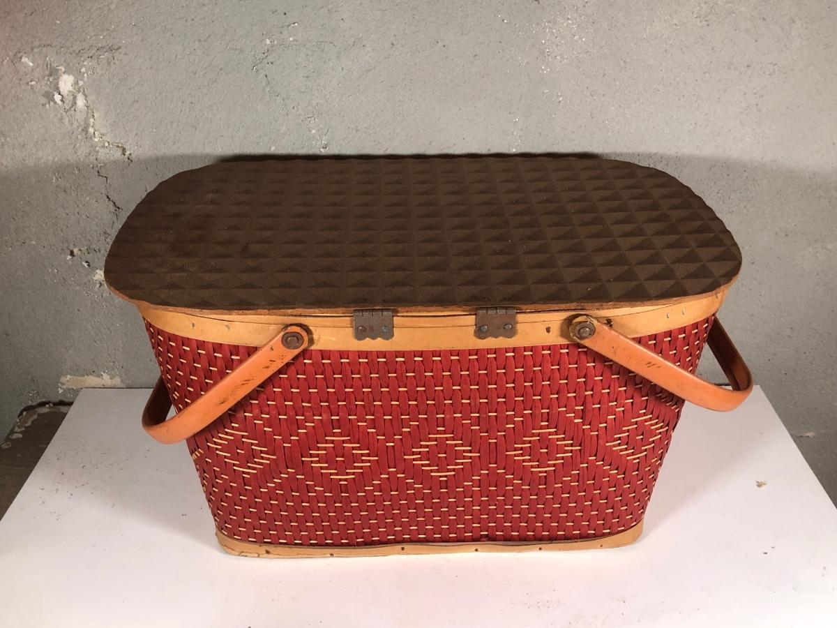 LOT 267B: Picnic Party! Vintage Red-Man Picnic Basket & Plastic Dishware - Aladdin, Grant Crest, Mallo-Ware, Spaulding Ware & More