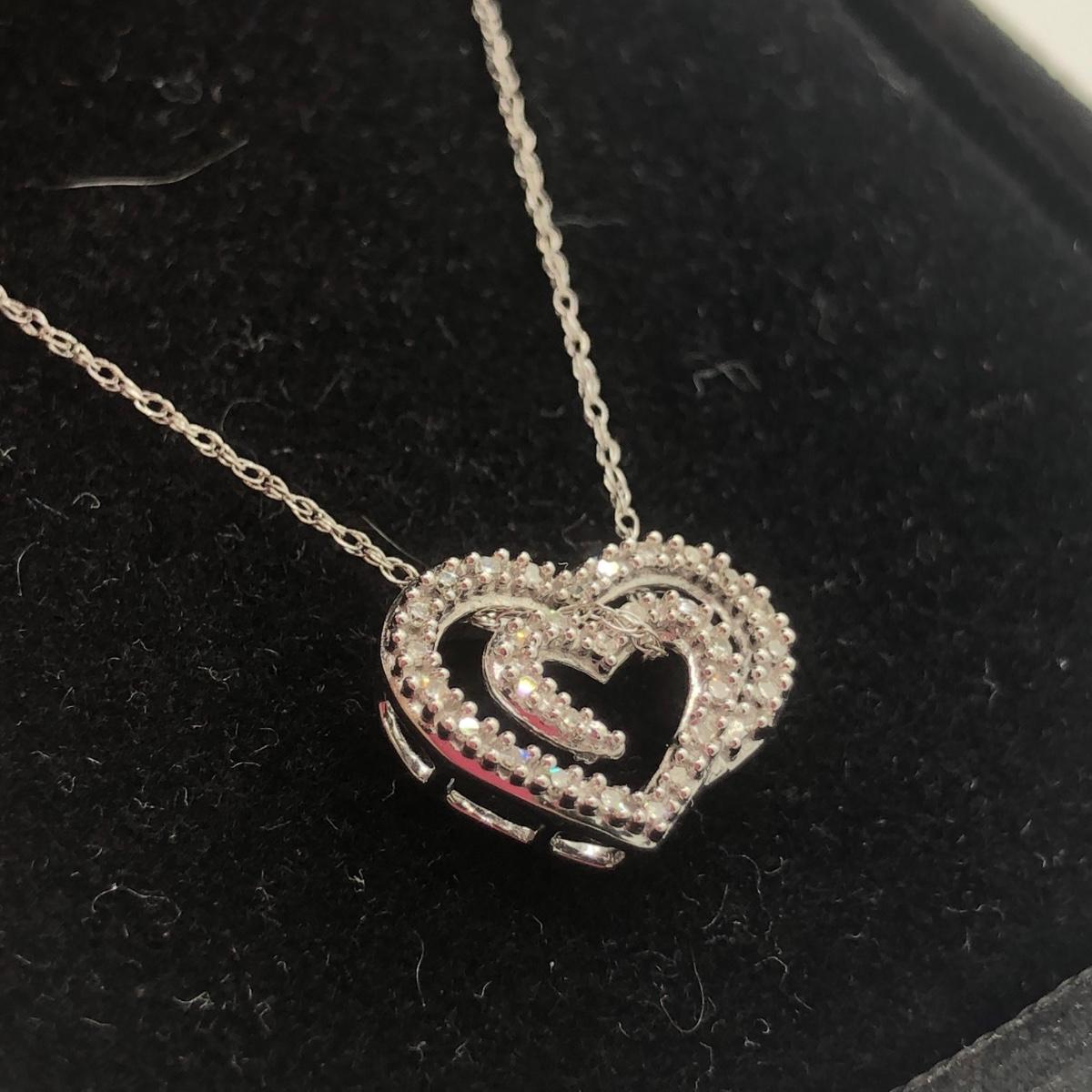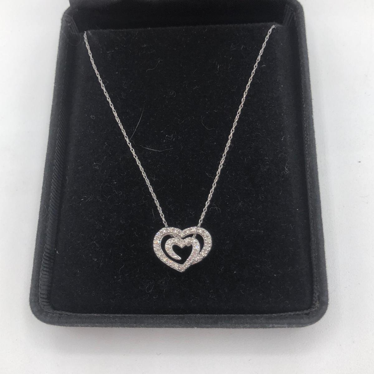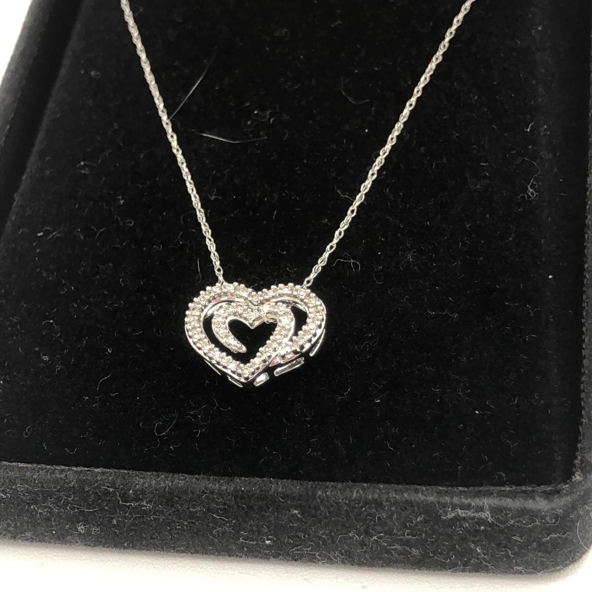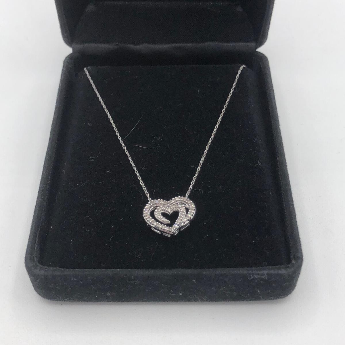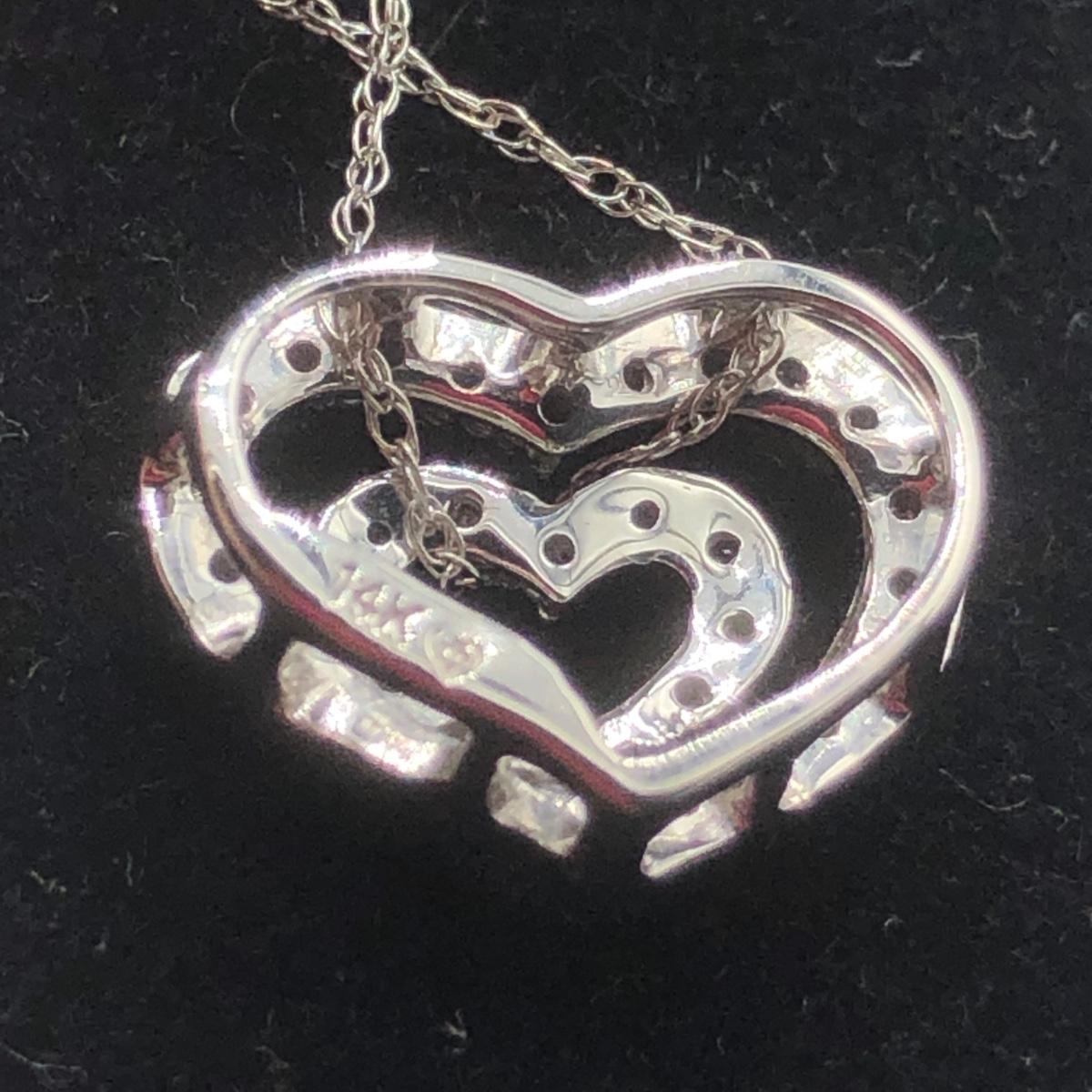 LOT 4J: 14k White Gold Diamond Heart Pendant Necklace on 18” Chain (2.0 gtw)