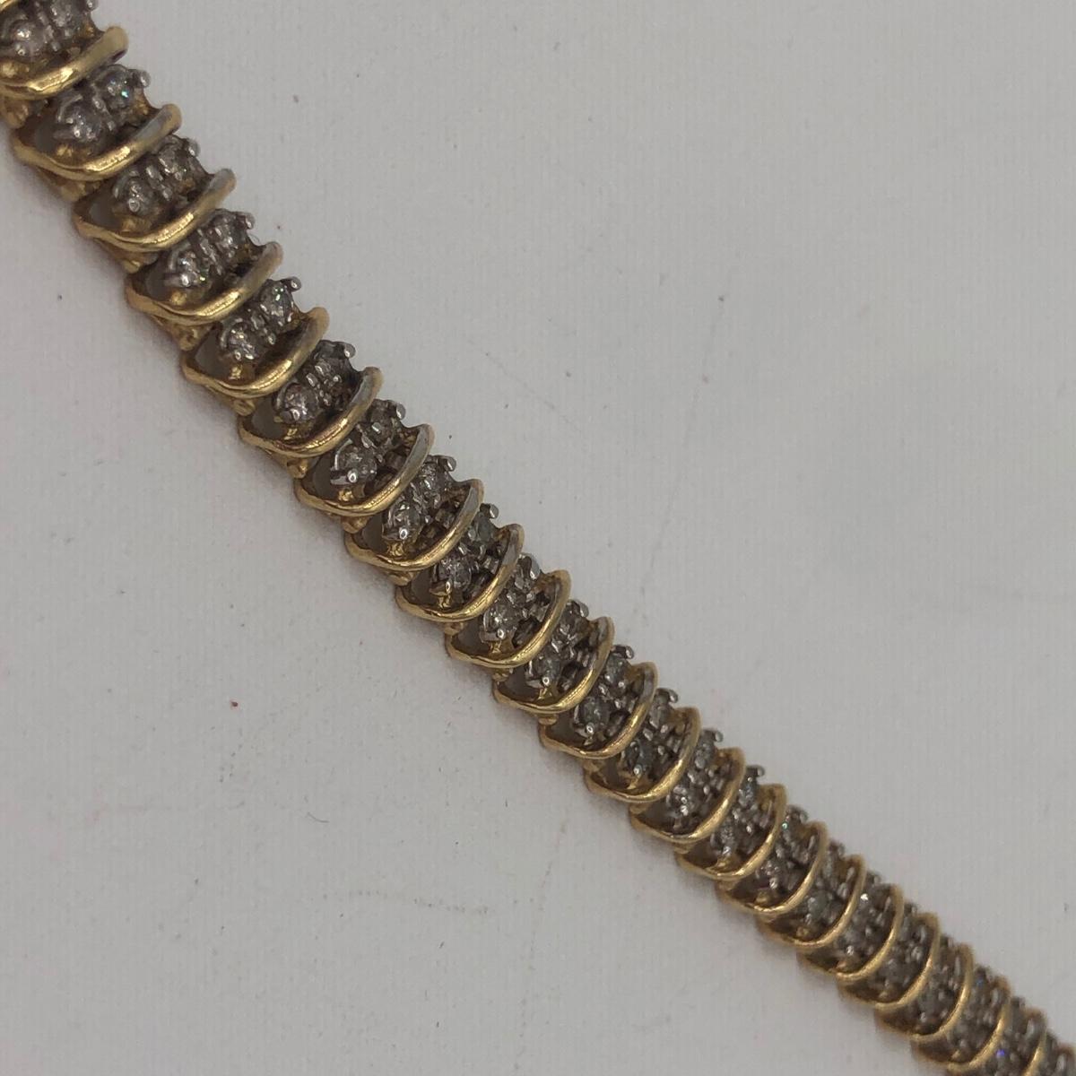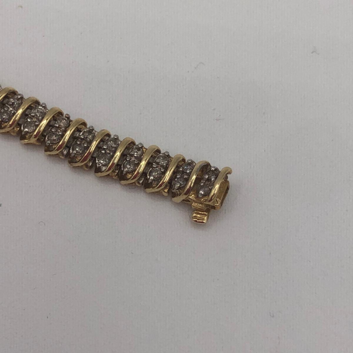 LOT 5J: 10k Yellow Gold and Diamond 7” Tennis Bracelet with Safety Lock (10.3 gtw)