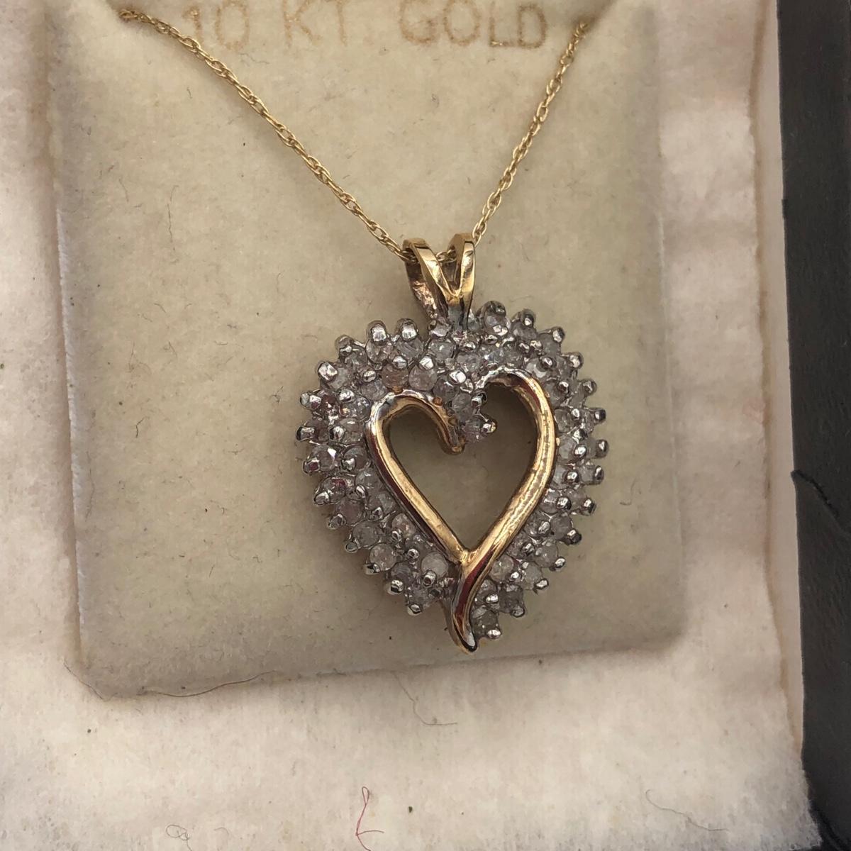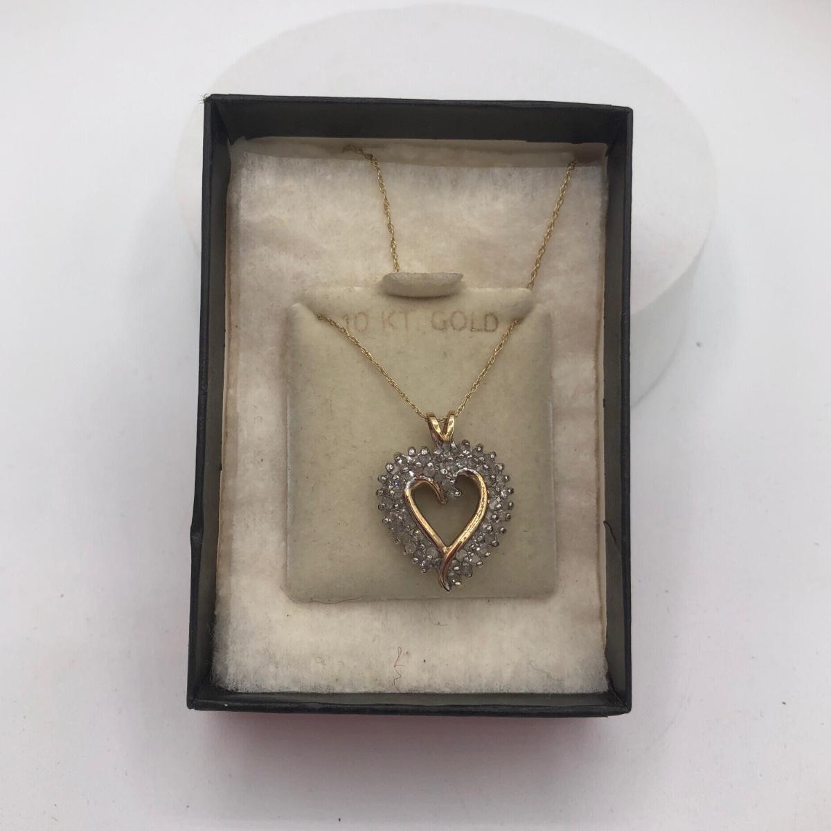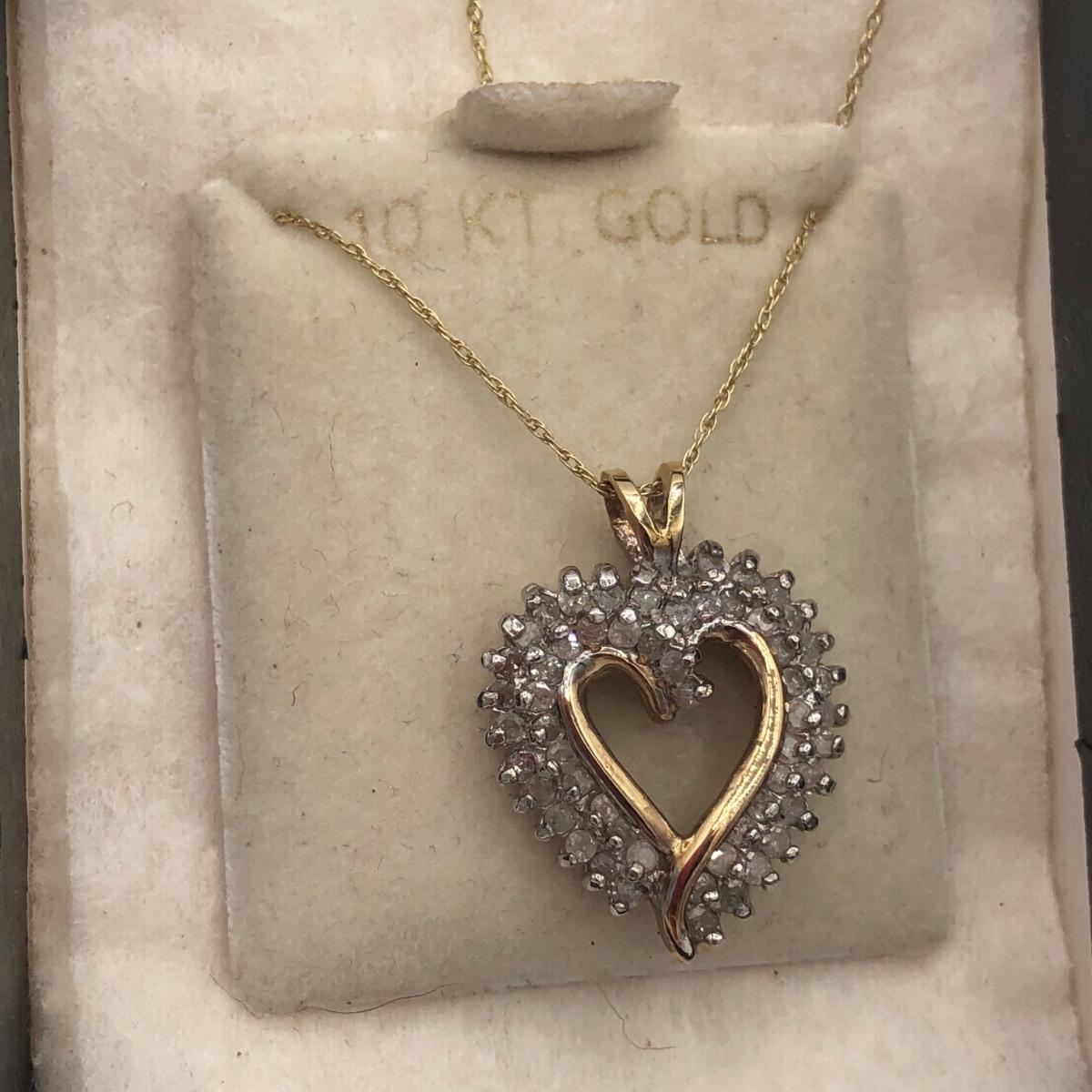 LOT 11J: 10k Gold & Diamond Heart Pendant Necklace on 18” Chain (4.0 gtw)