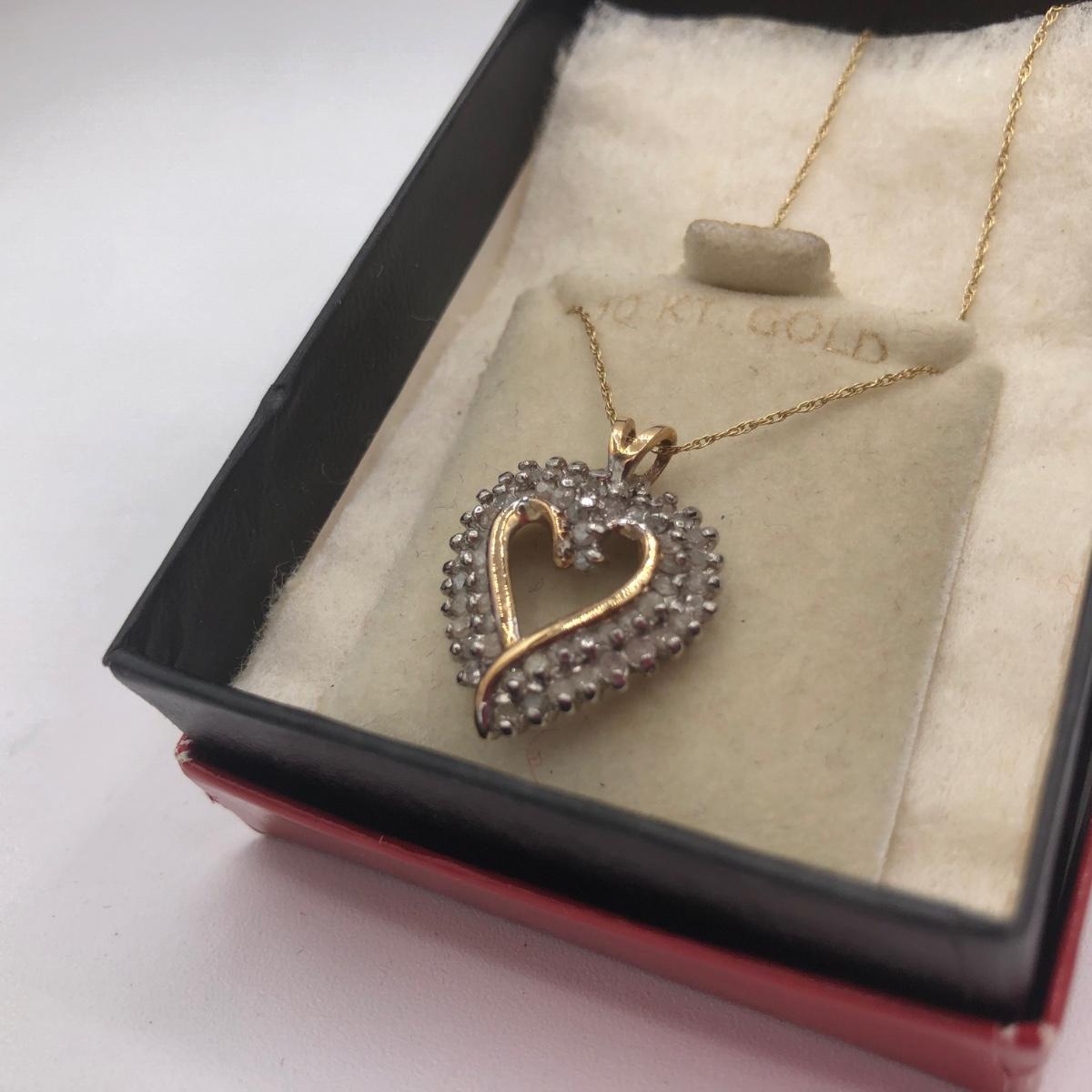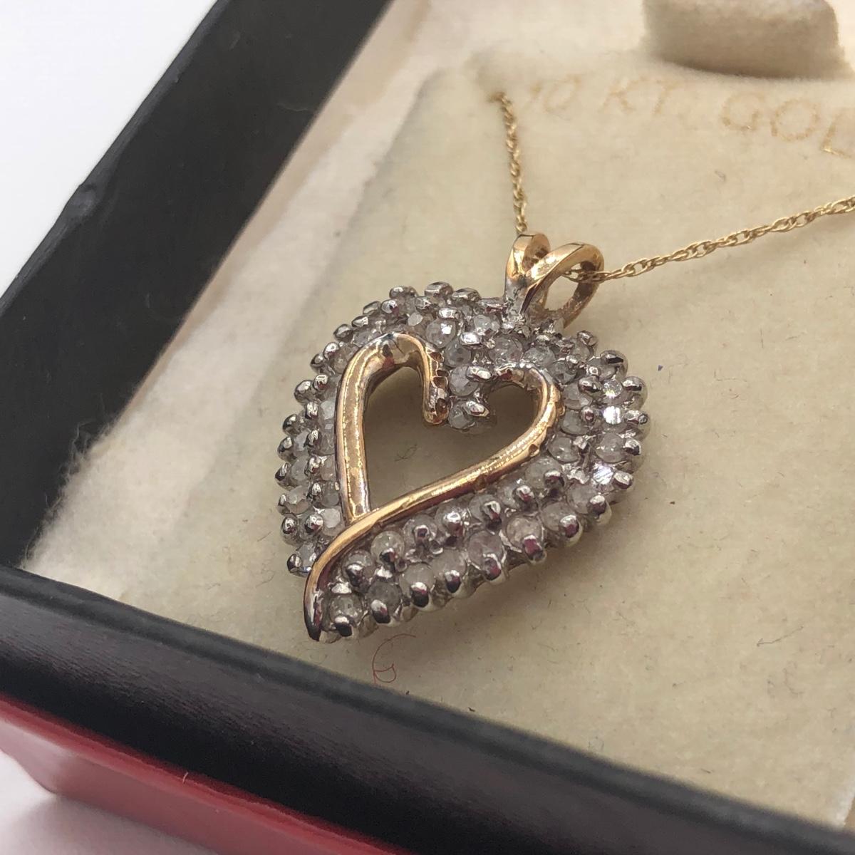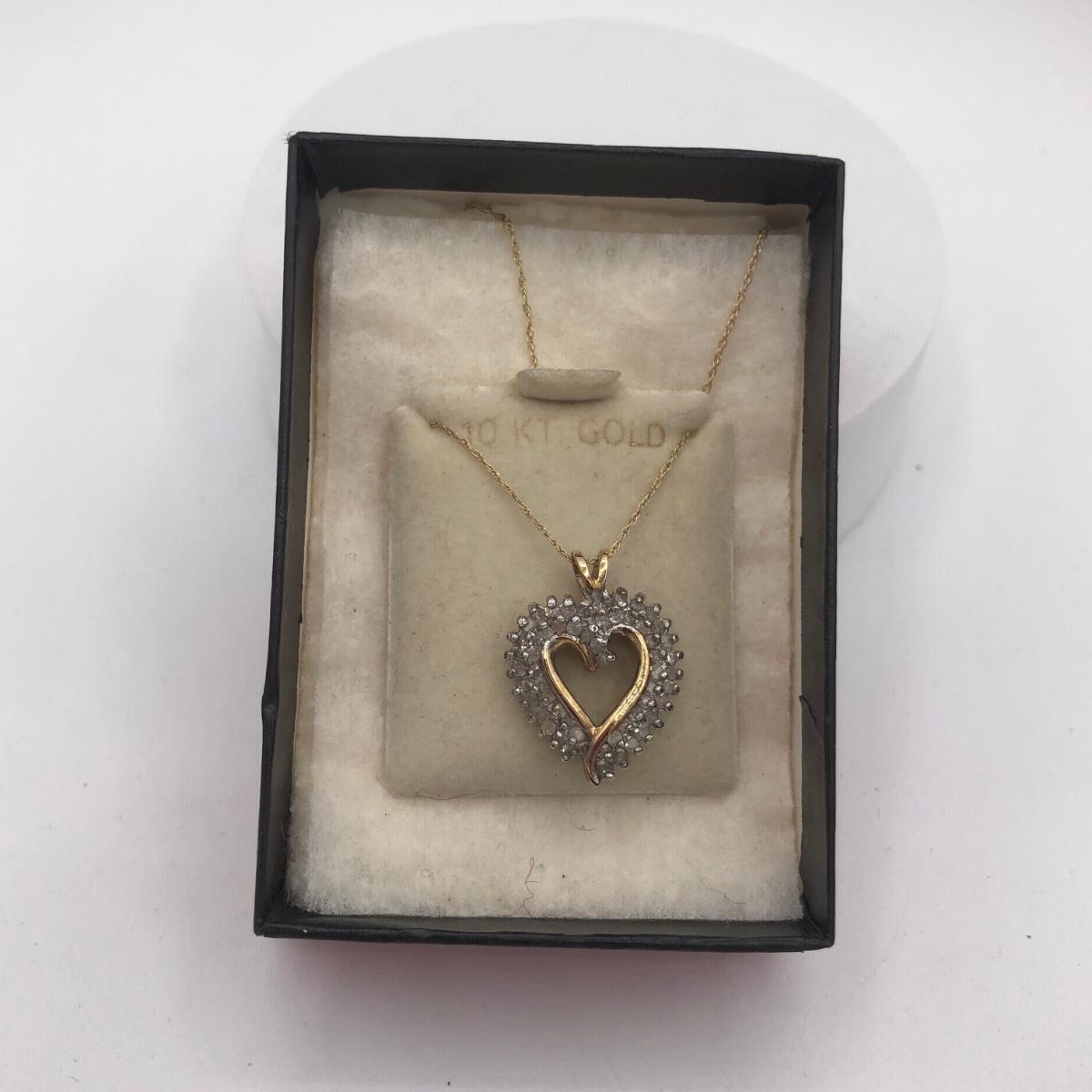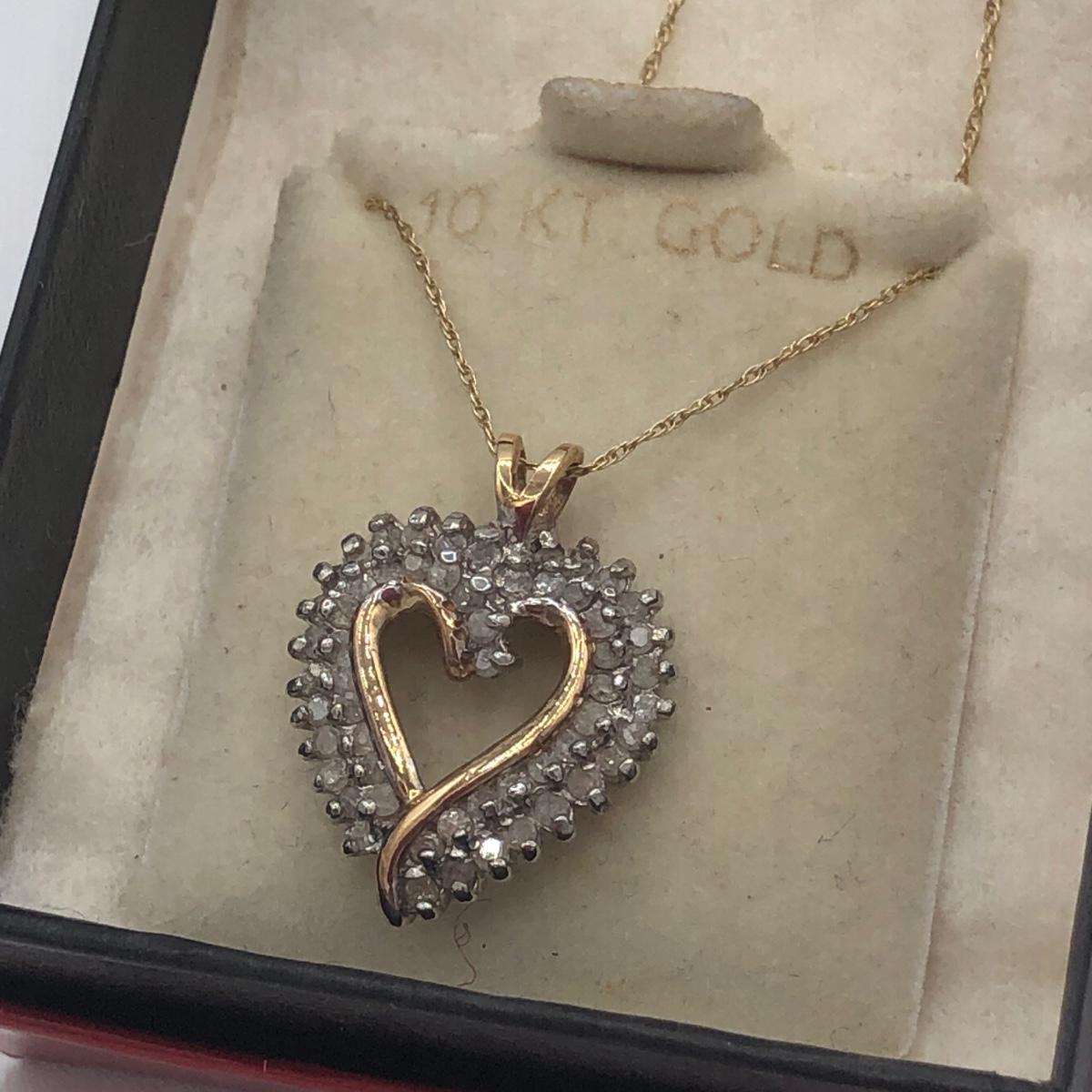 LOT 11J: 10k Gold & Diamond Heart Pendant Necklace on 18” Chain (4.0 gtw)