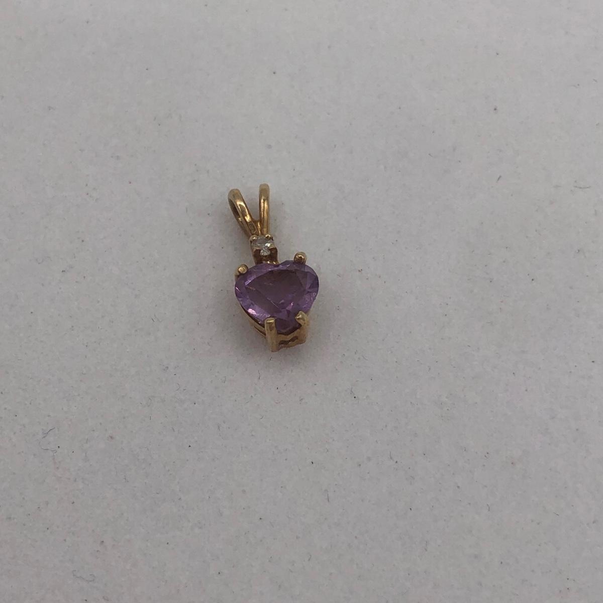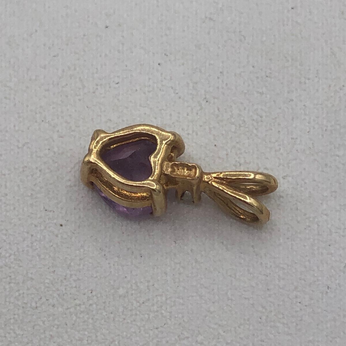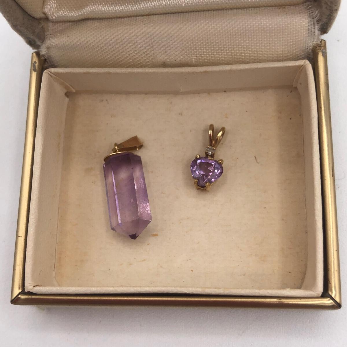LOT 12J: 14k Amethyst & Diamond Chip Heart Pendant & 14KP Amethyst Crystal Mini Point Pendant