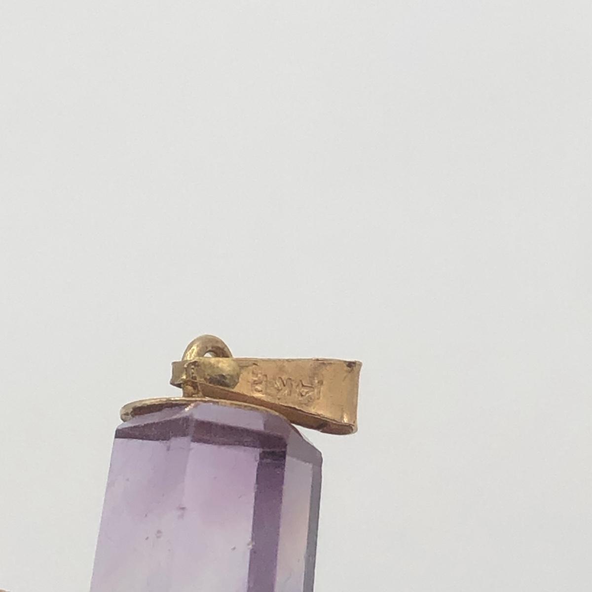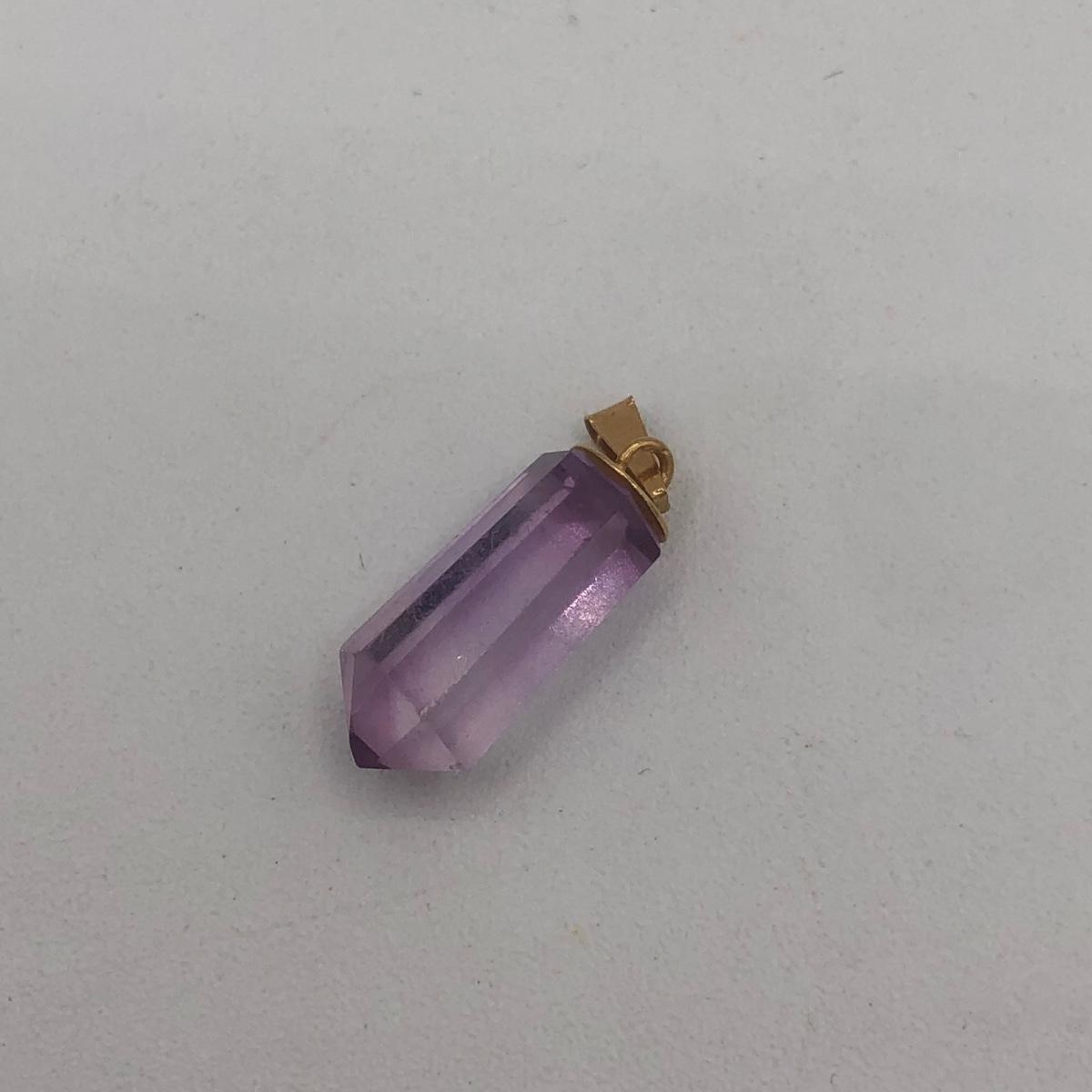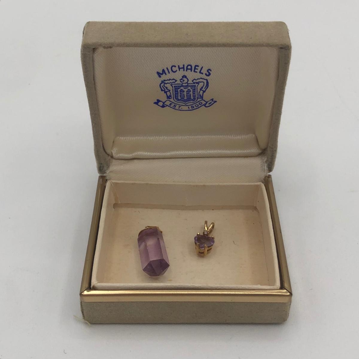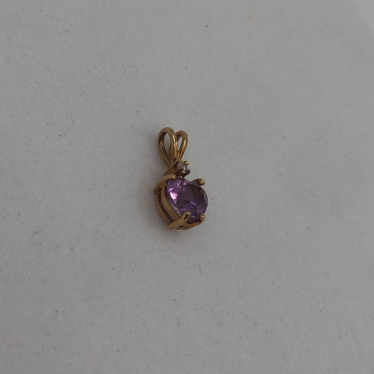 LOT 12J: 14k Amethyst & Diamond Chip Heart Pendant & 14KP Amethyst Crystal Mini Point Pendant