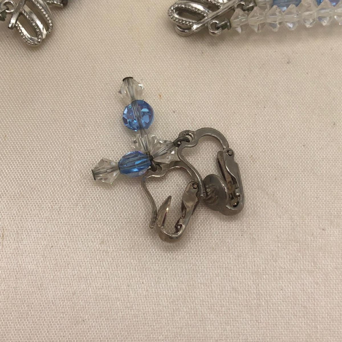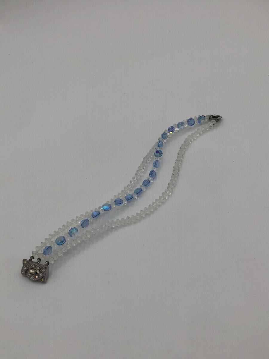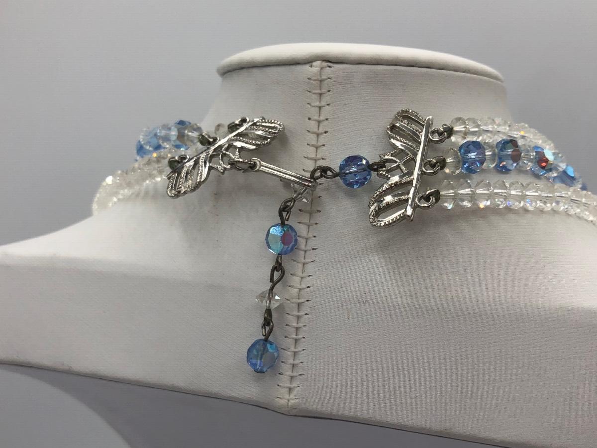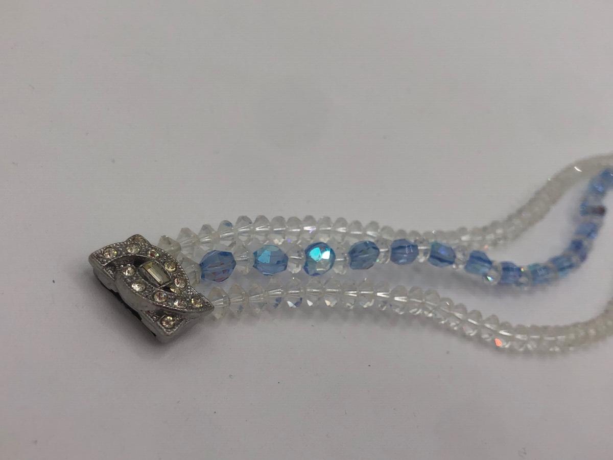LOT 17J: Vintage Triple Strand Swarovski Crystal & Blue Aurora Borealis Bead Necklace (16”), Bracelet (7.5”) & Earrings w/ Silvertone Findings in Box