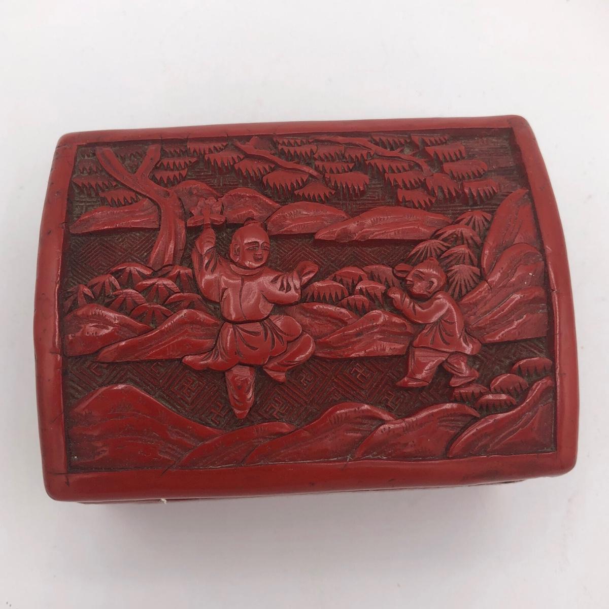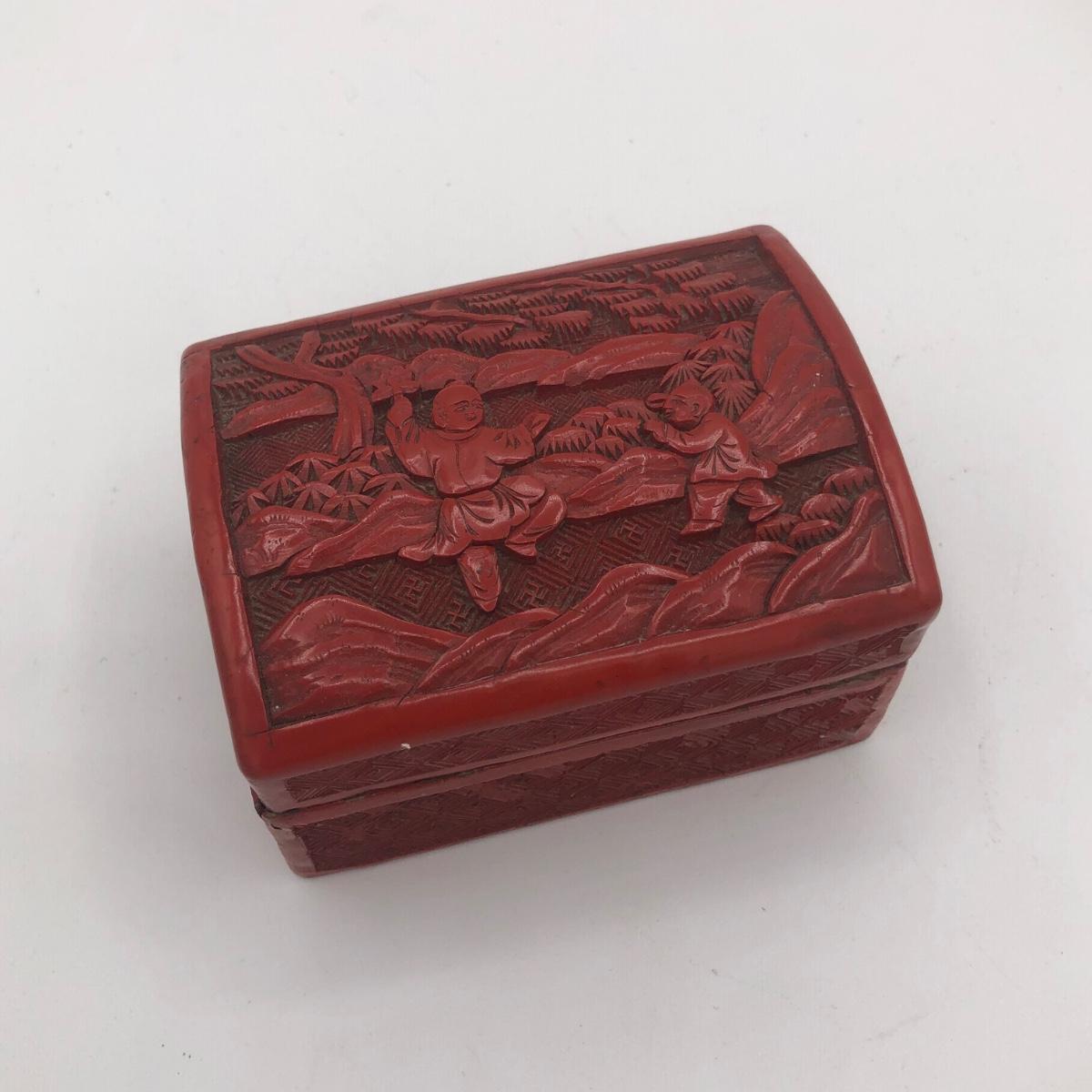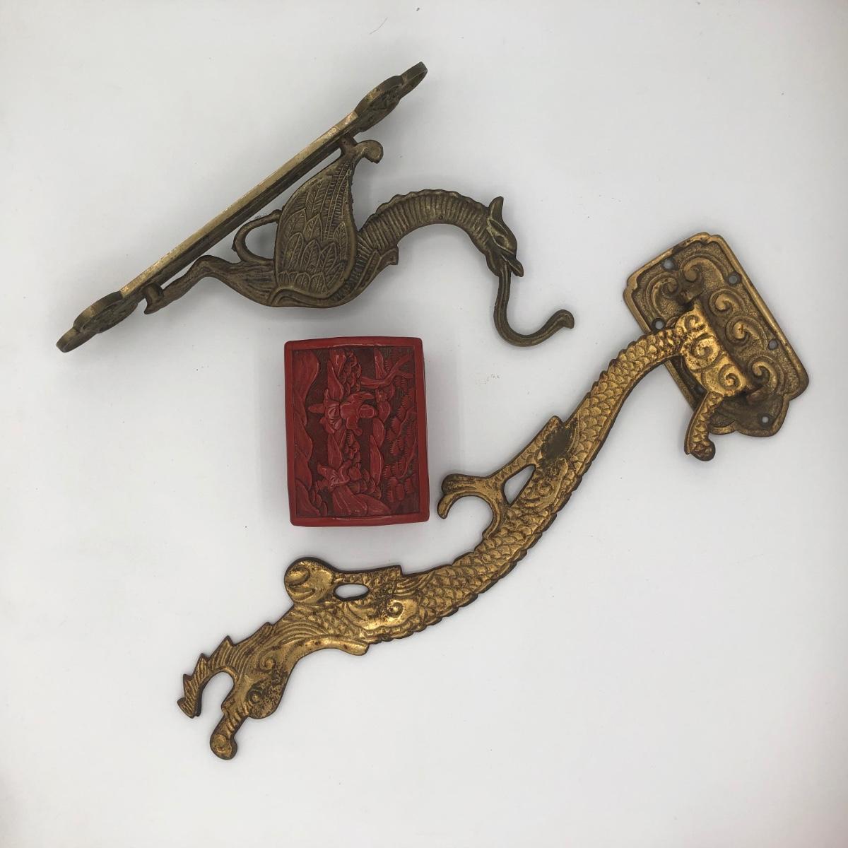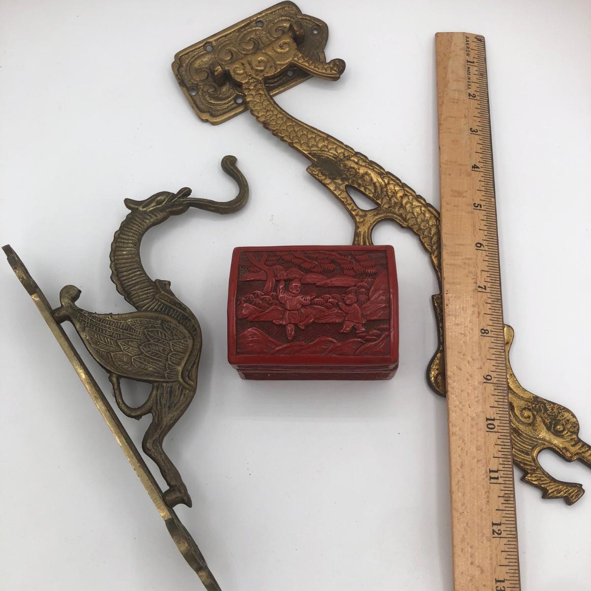 LOT 21K: Vintage Decorative Wall Mounted Dragon Coat / Purse Hooks & Carved Cinnabar Trinket Box made in China