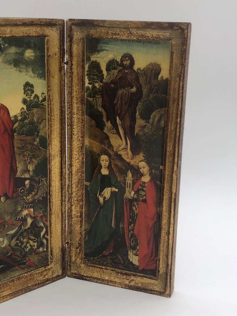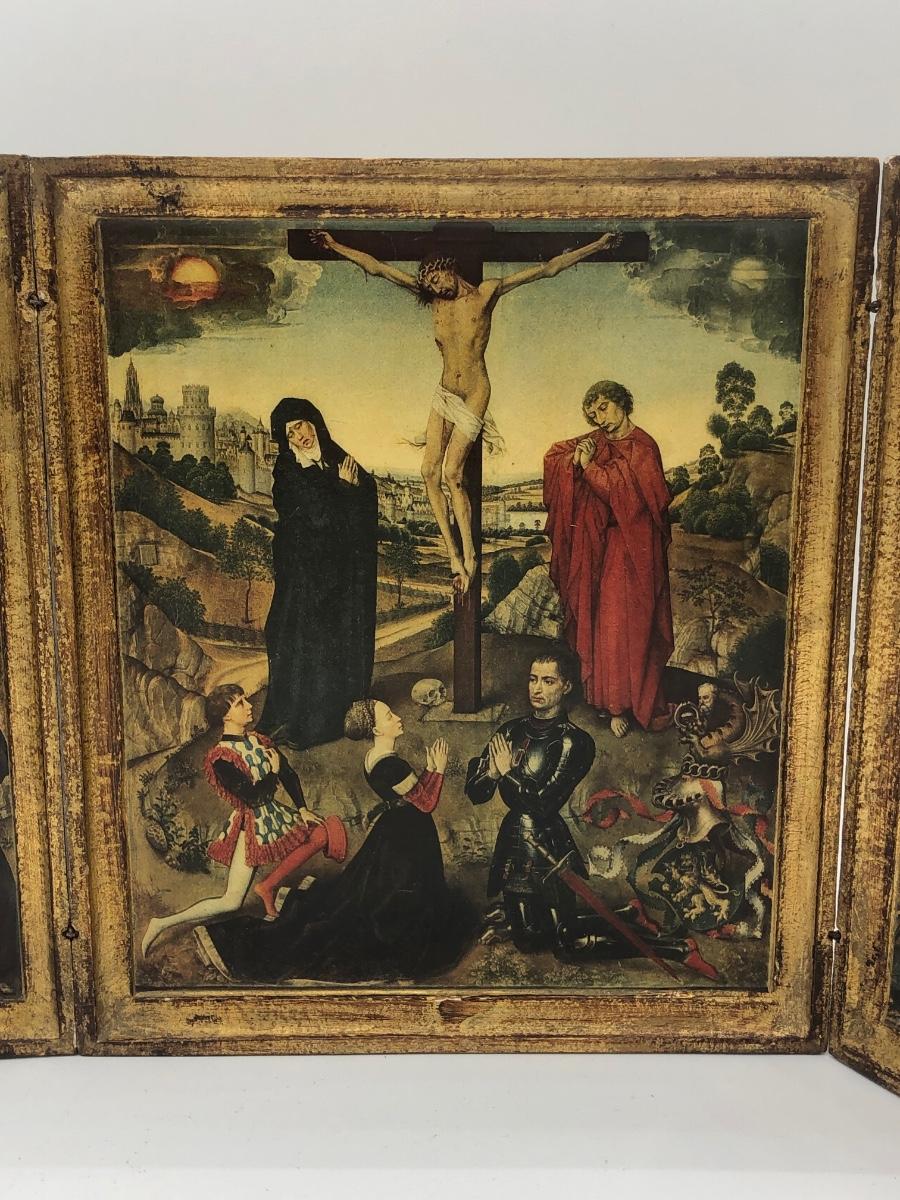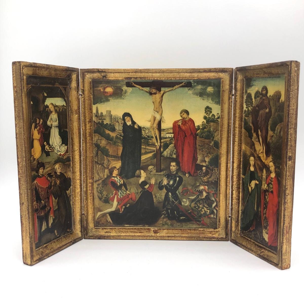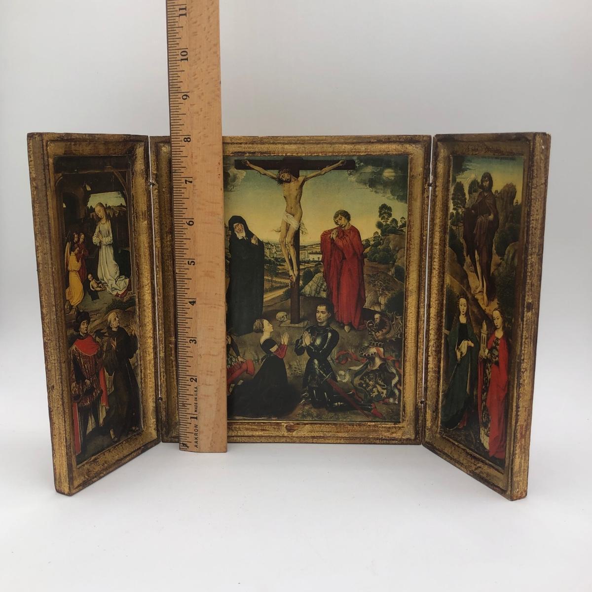 LOT 22K: Antique/Vintage Rogier Van Der Weyden Triptych Sforza Wooden Folding Religious Decor Hand Made in Florence, Italy