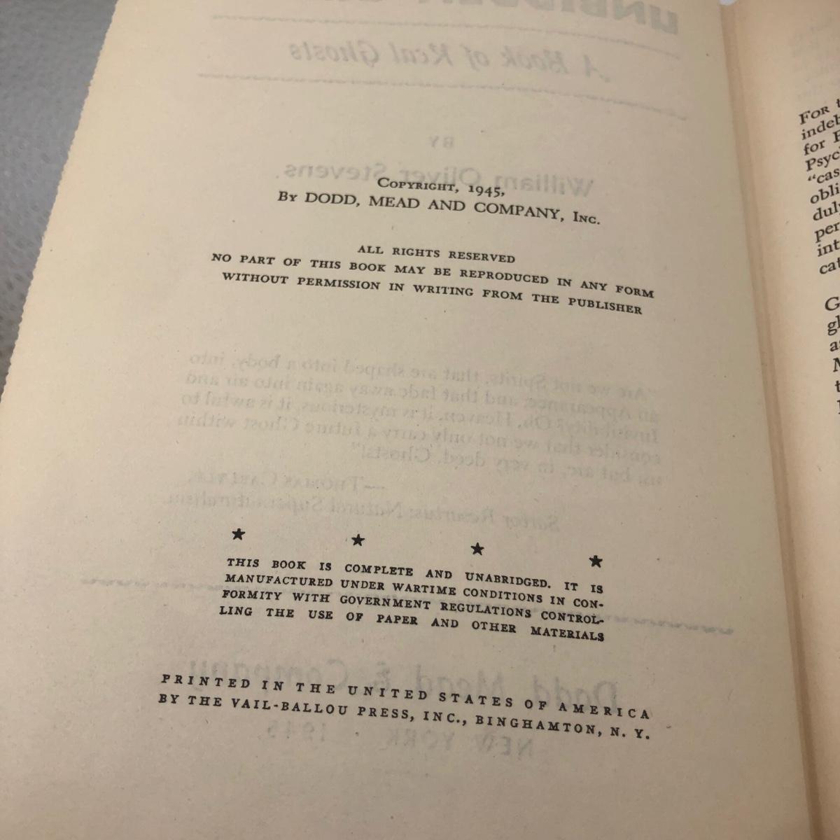 LOT 40L: Vintage 1945 "Unbidden Guests: A Book of Real Ghosts" by William Oliver Stevens