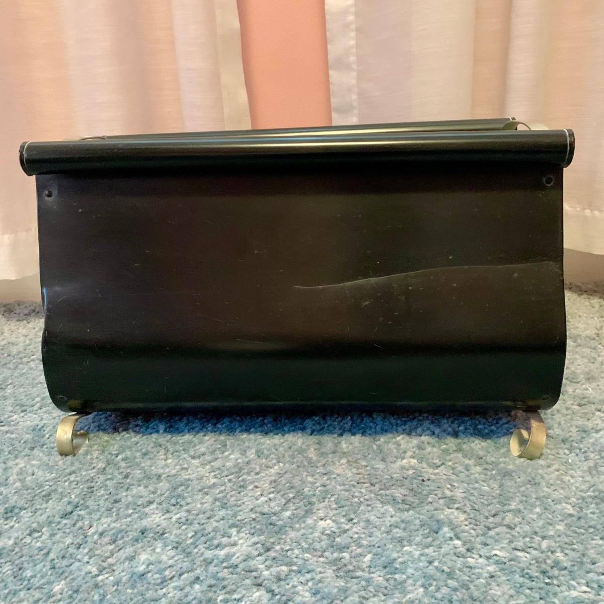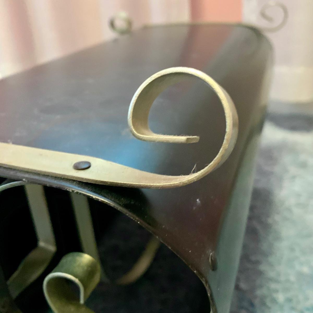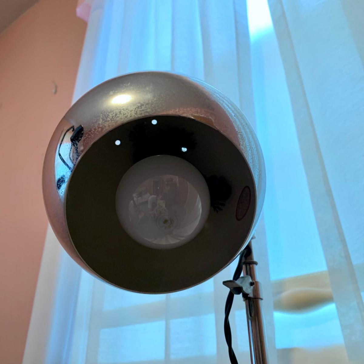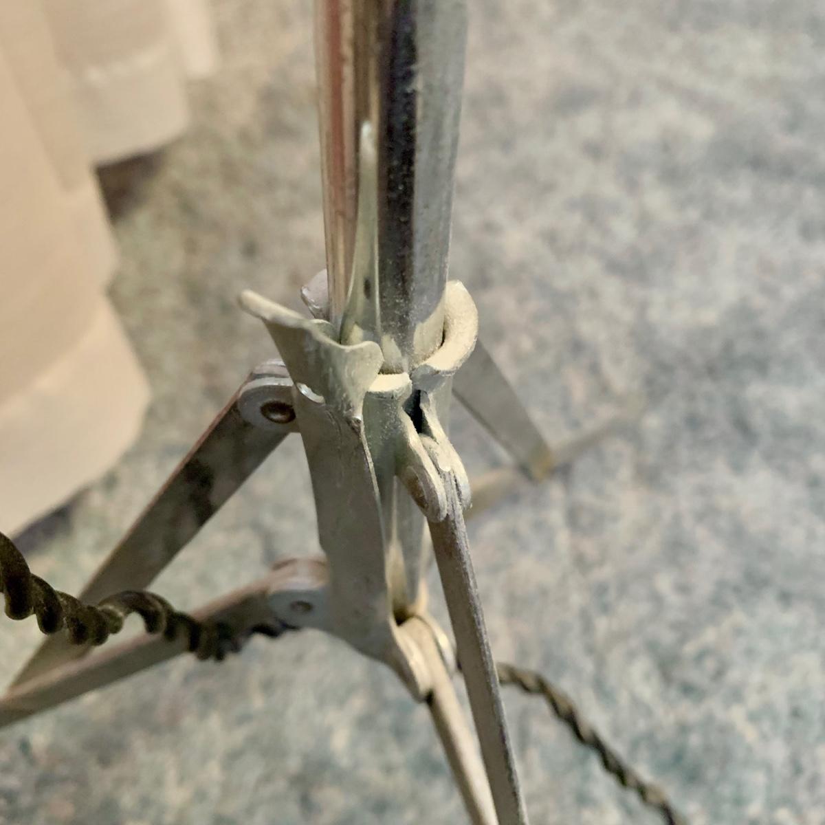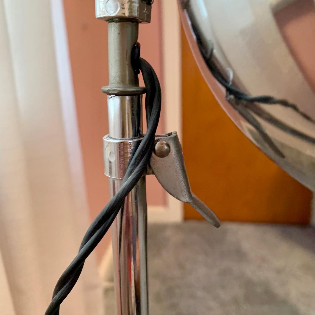 LOT 46 Y: Vintage MCM Chrome Orb Adjustable Tripod Floor / Desk Lamp & 50's Toleware Metal Scroll Magazine Holder