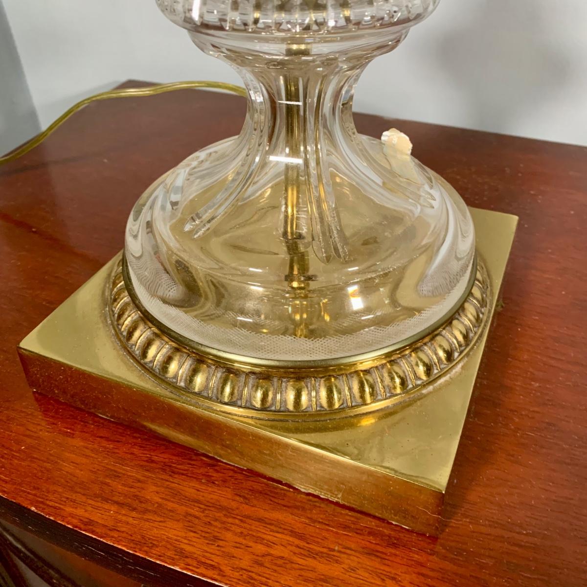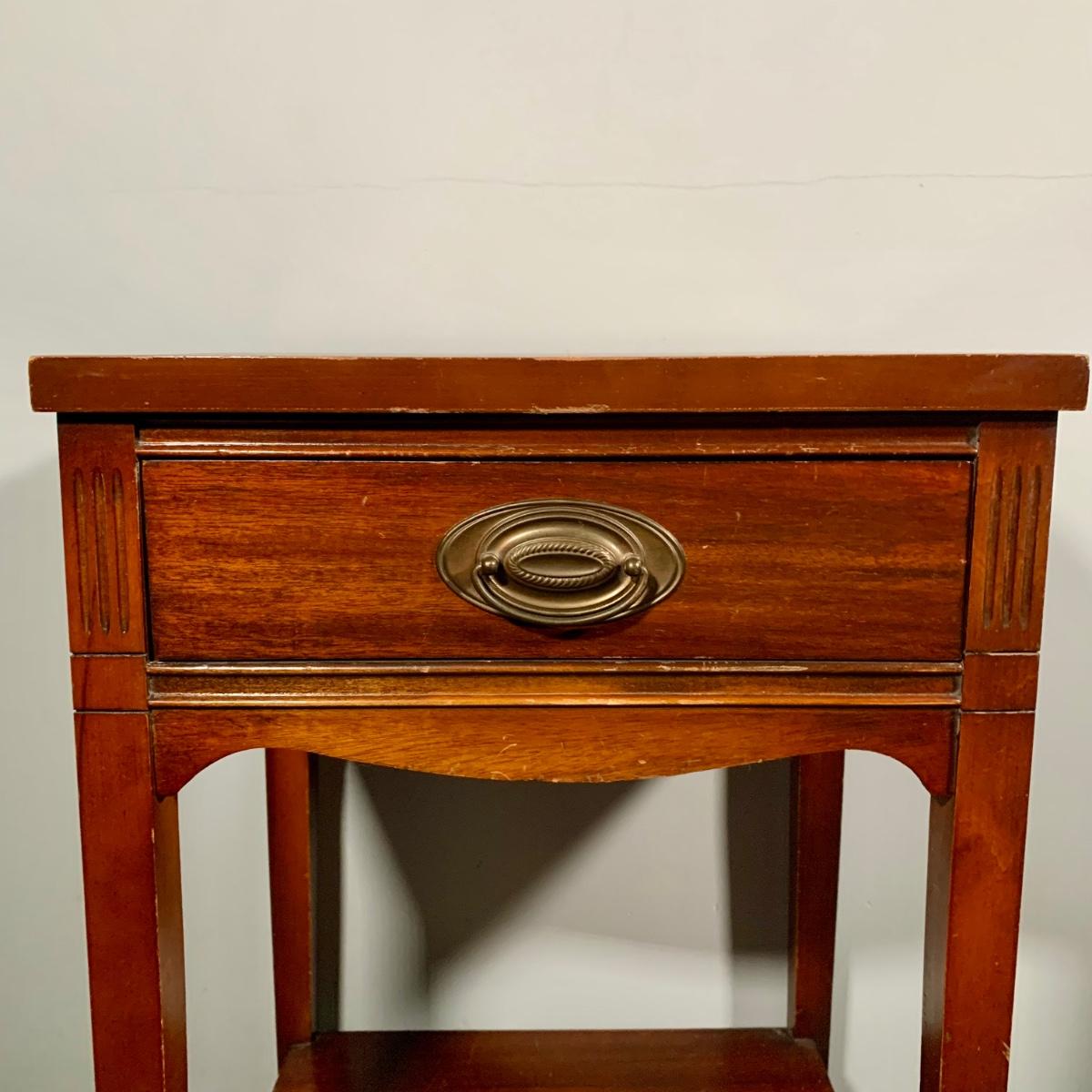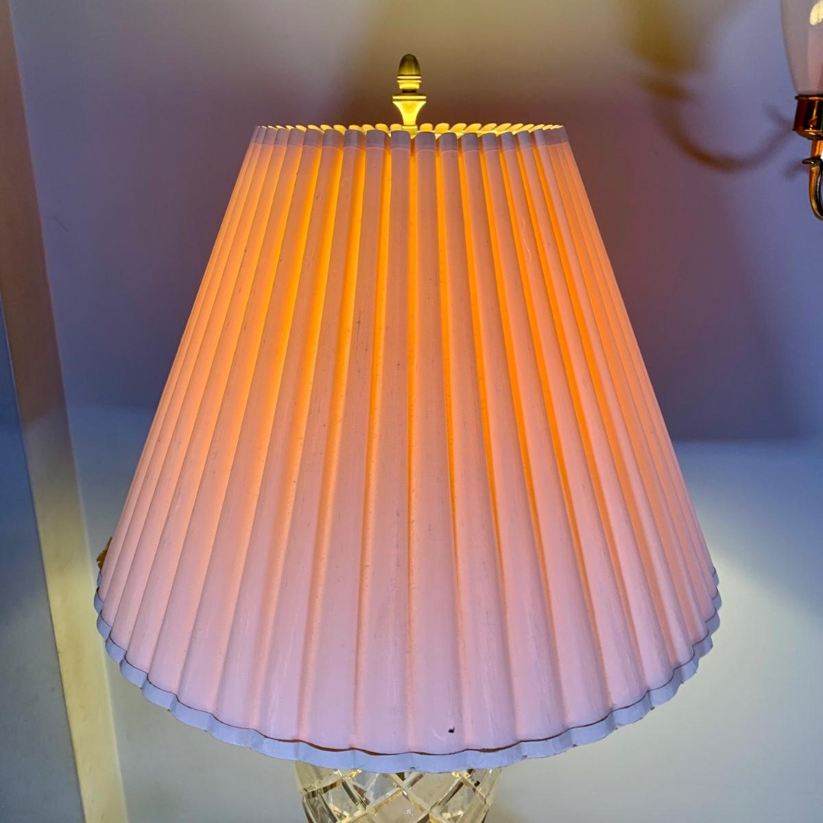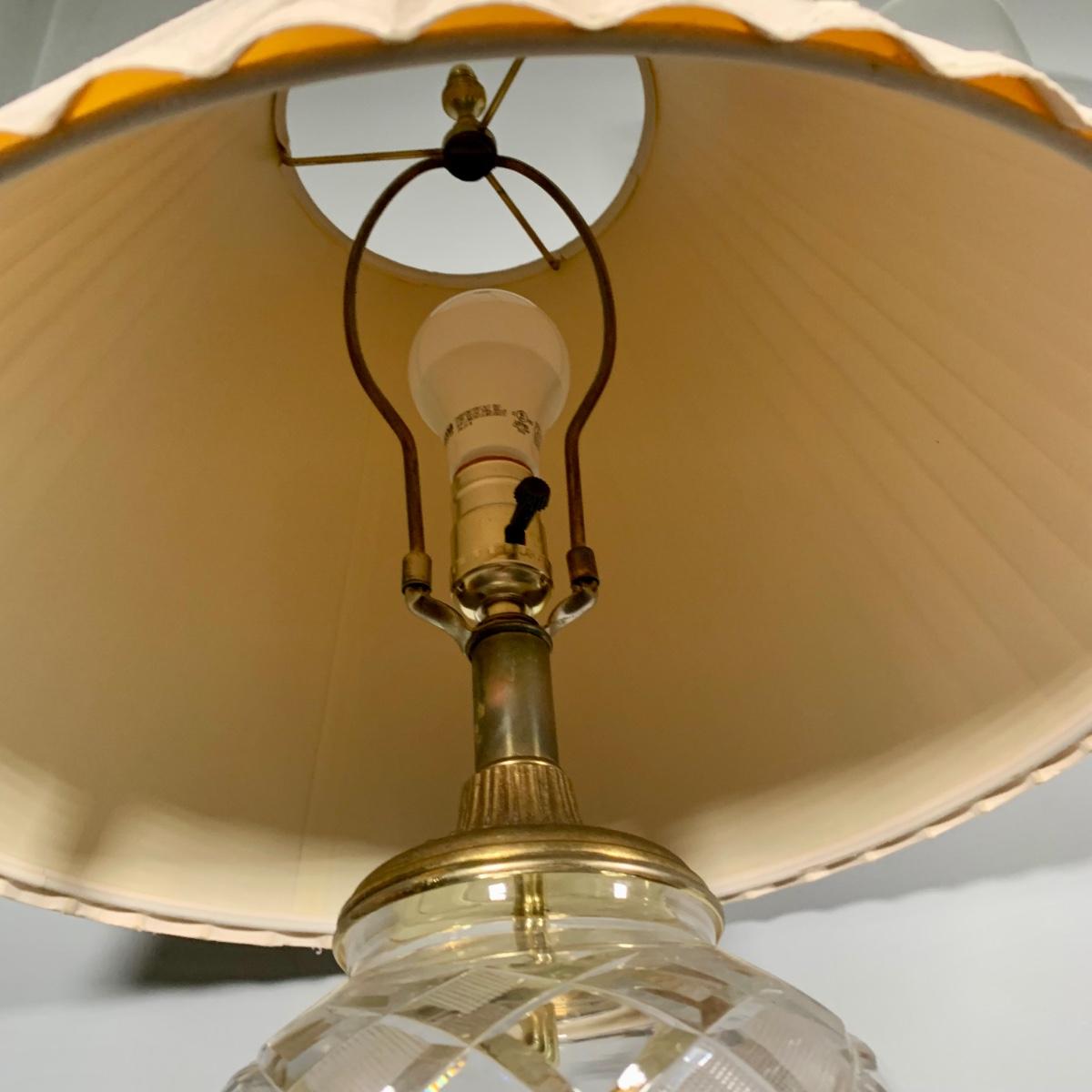 LOT 53 L: Hand Cut Lead Crystal German made Lamp & Dixie Mahogany 2 & 1 Drawer Nightstands