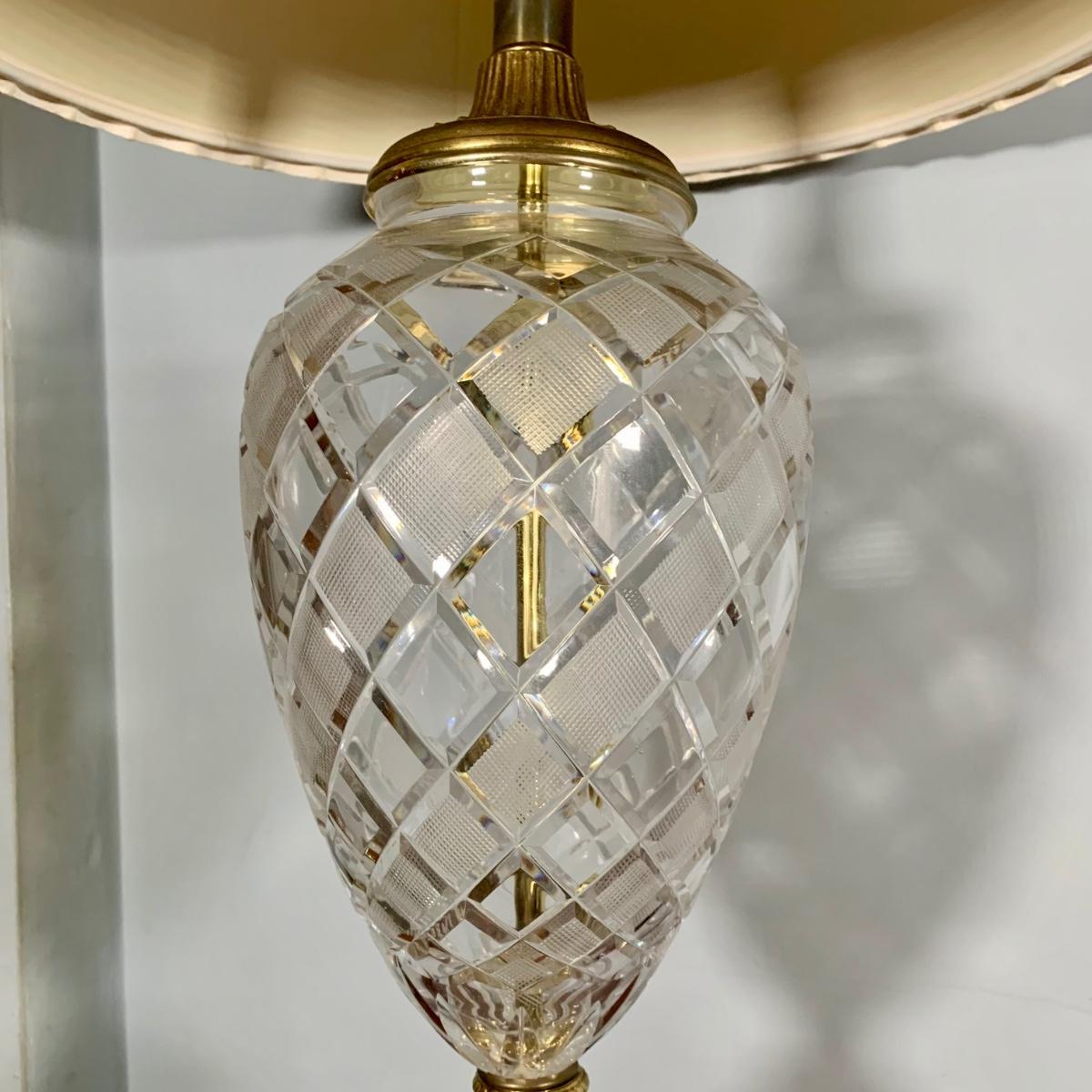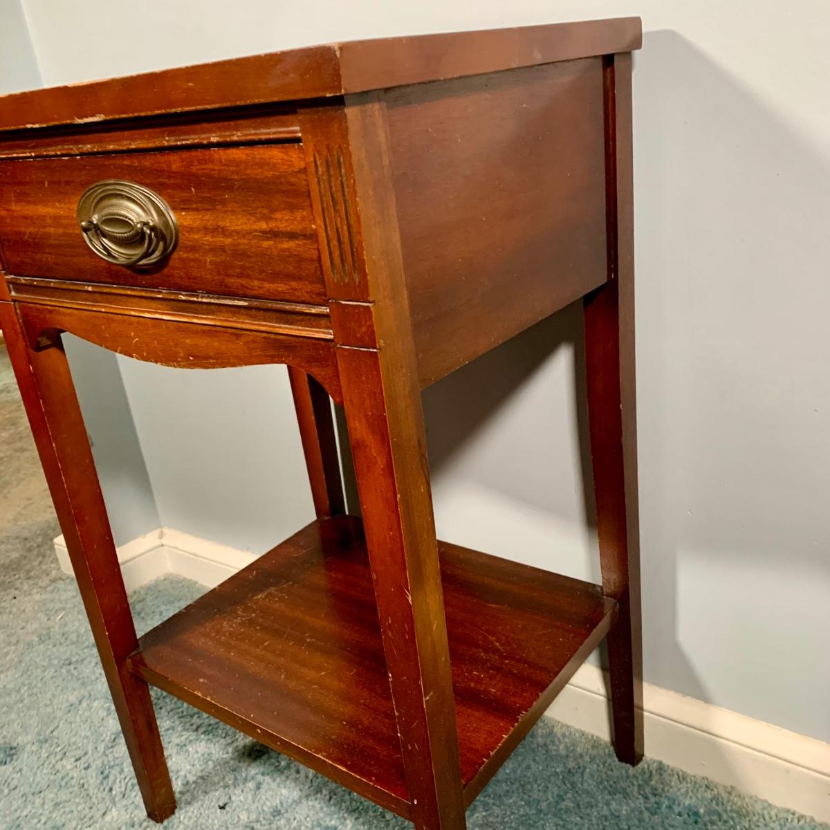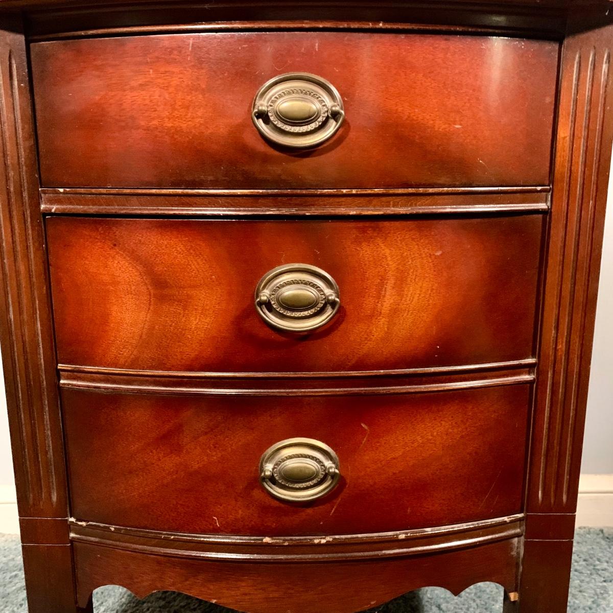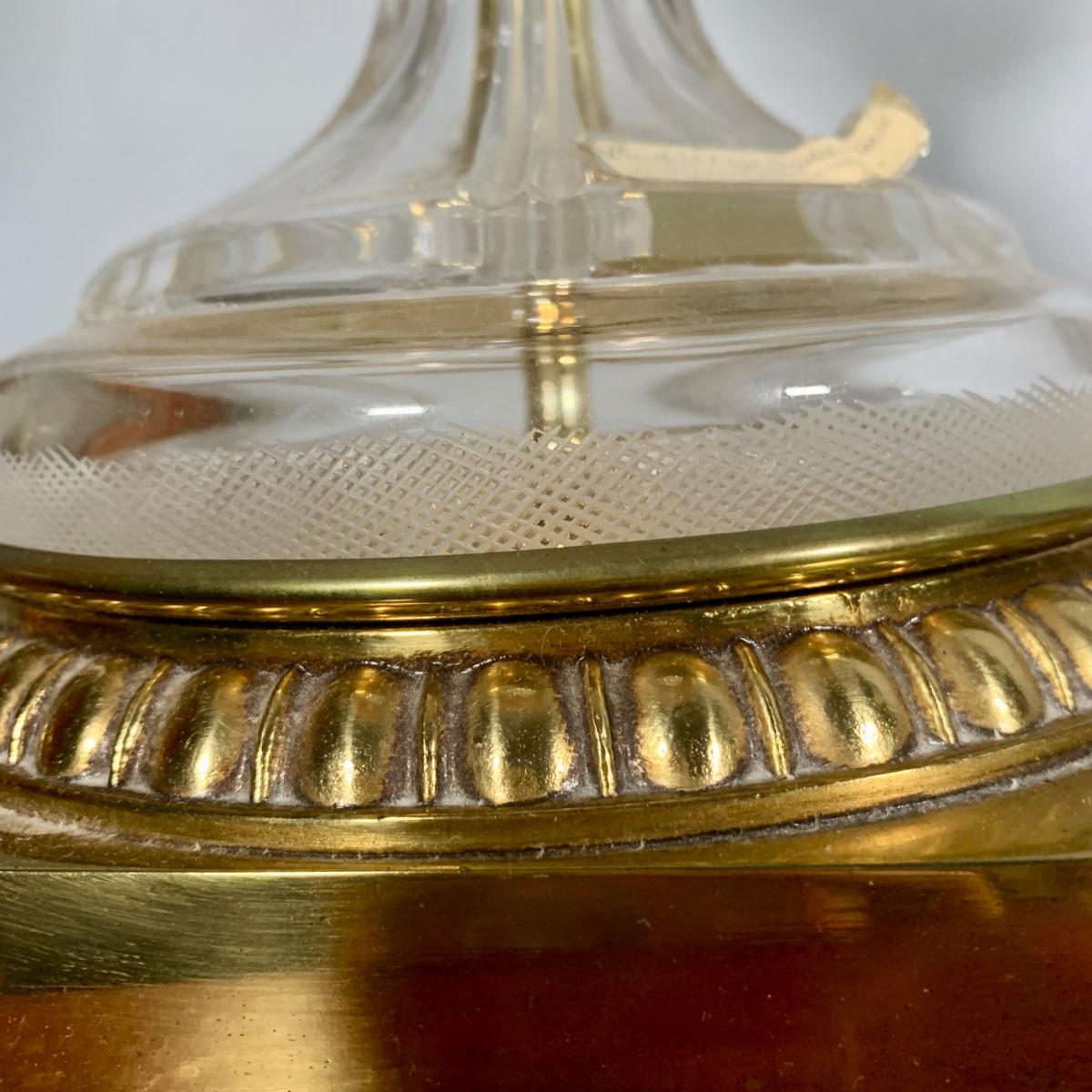 LOT 53 L: Hand Cut Lead Crystal German made Lamp & Dixie Mahogany 2 & 1 Drawer Nightstands