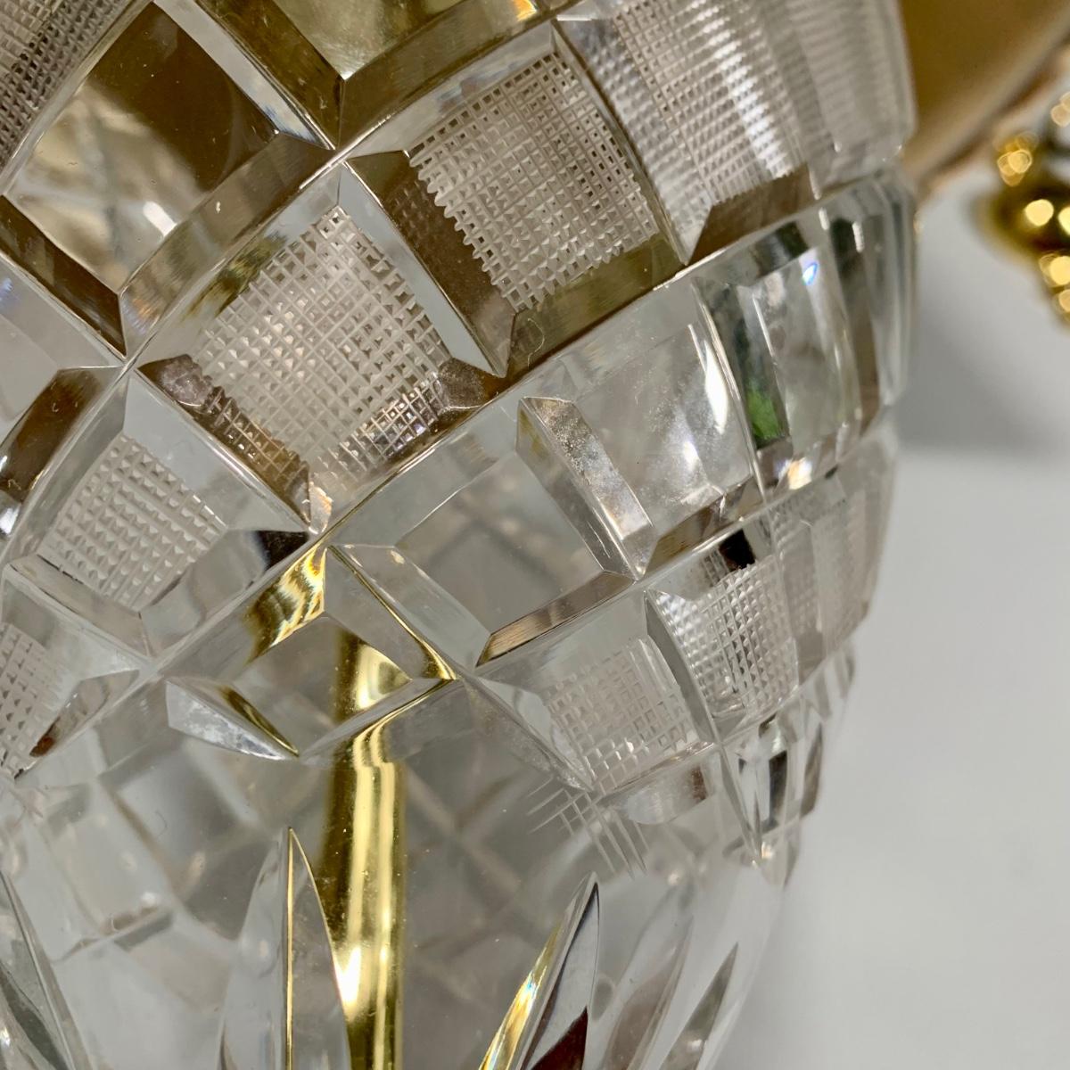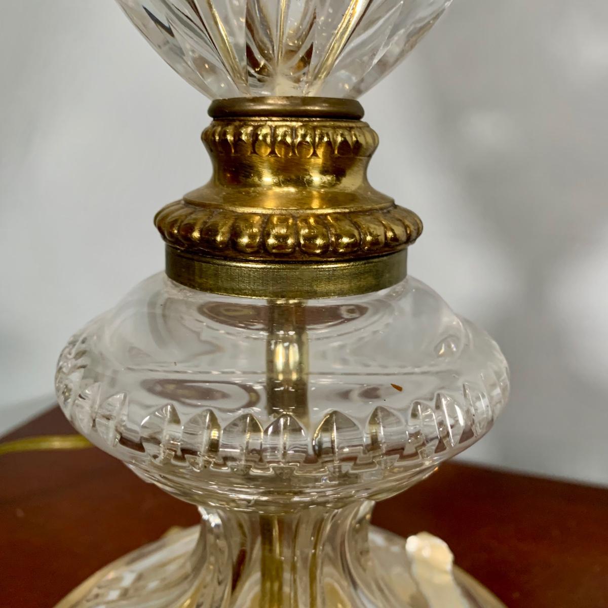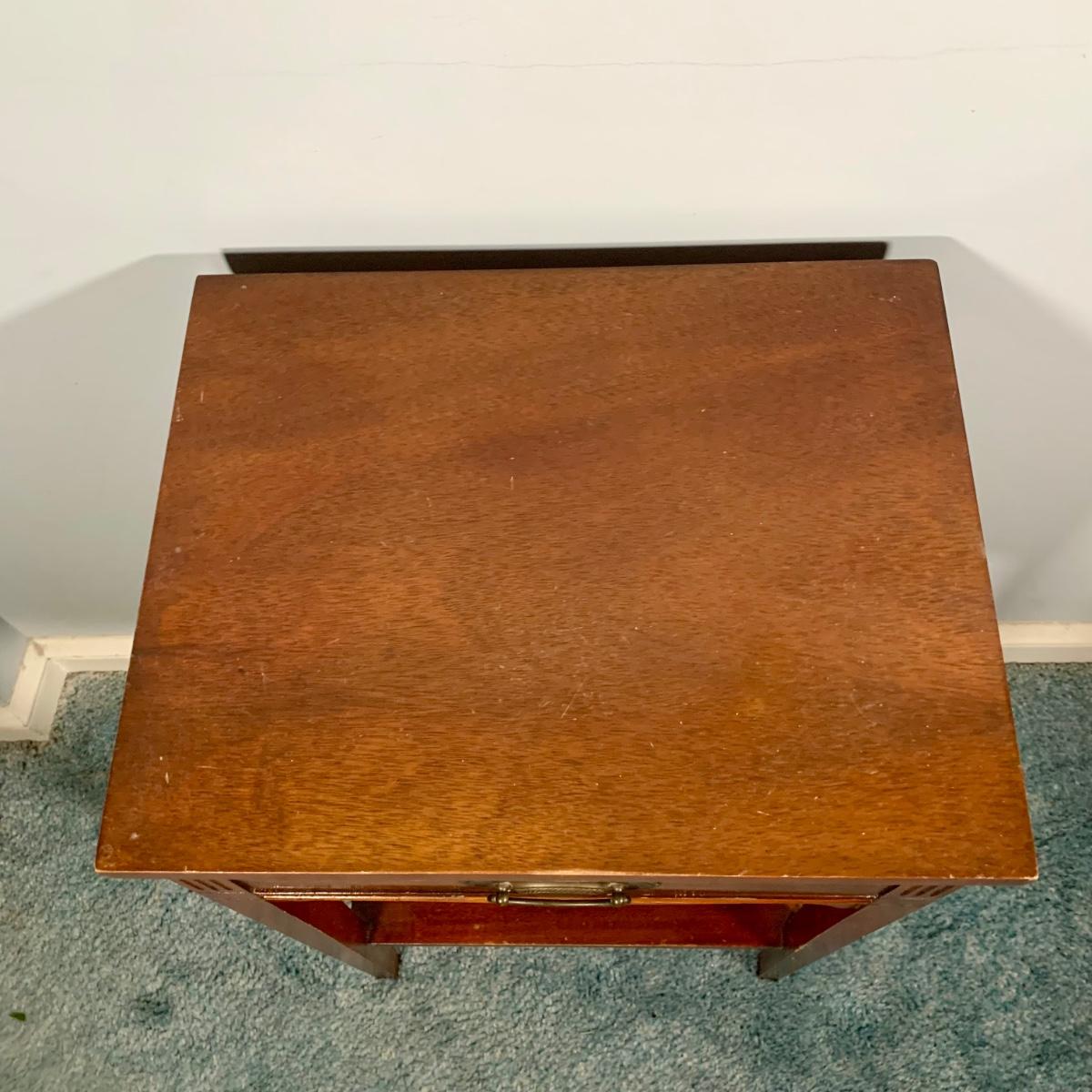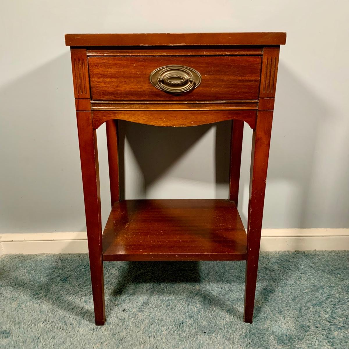 LOT 53 L: Hand Cut Lead Crystal German made Lamp & Dixie Mahogany 2 & 1 Drawer Nightstands