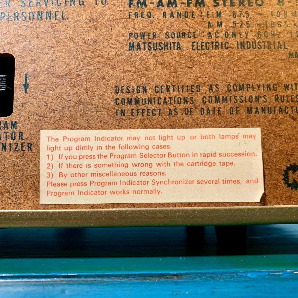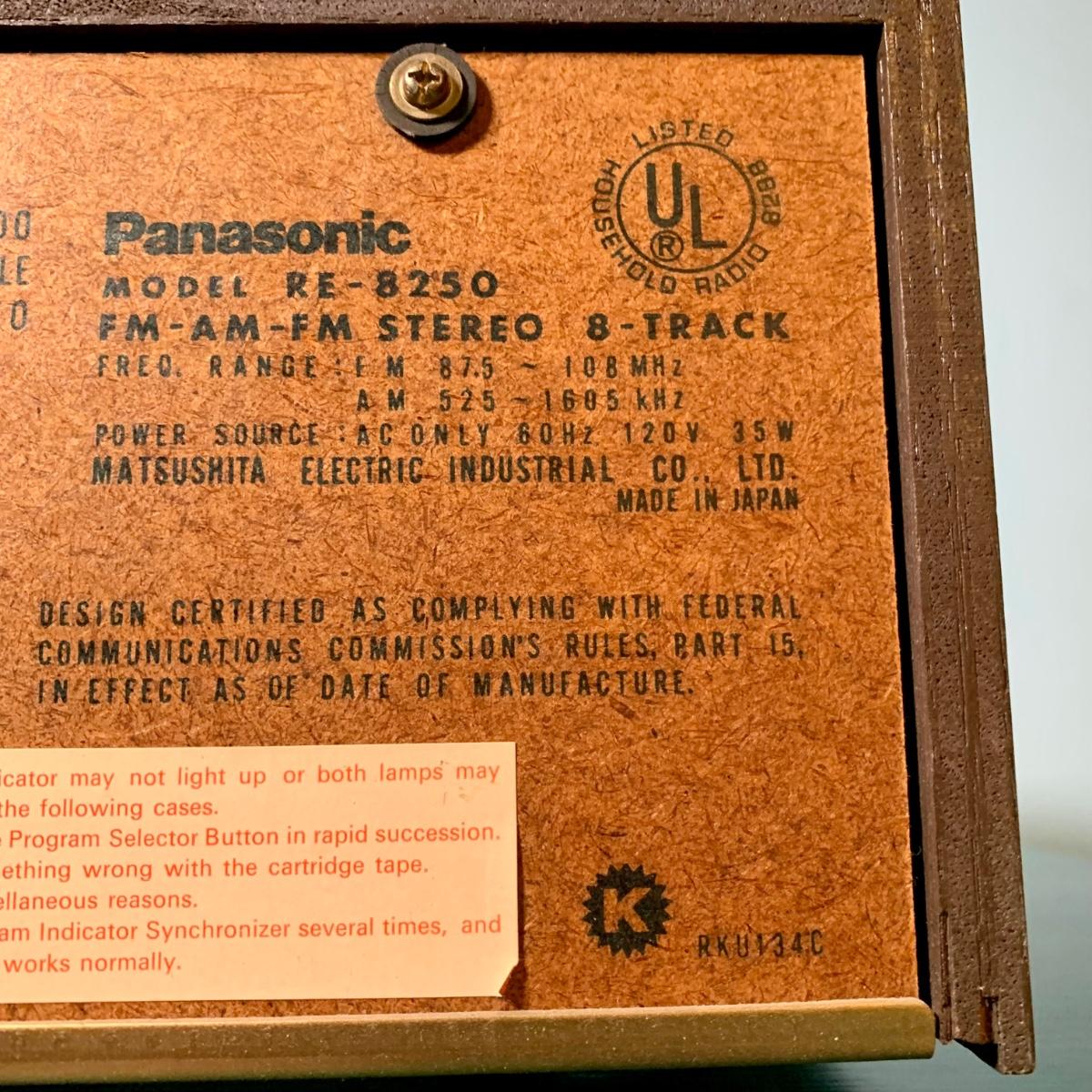 LOT 60 A: Panasonic FM / AM Multiplex Stereo Automatic 8 Track Changer Model #RE-8250