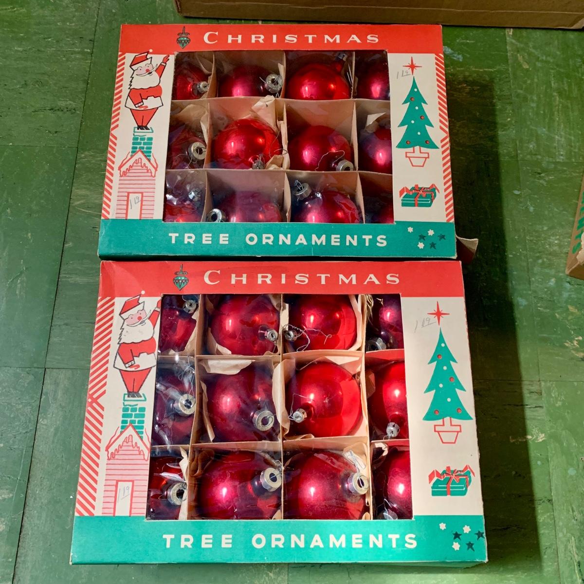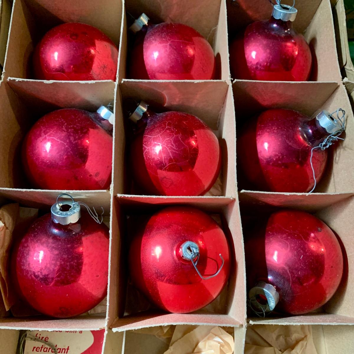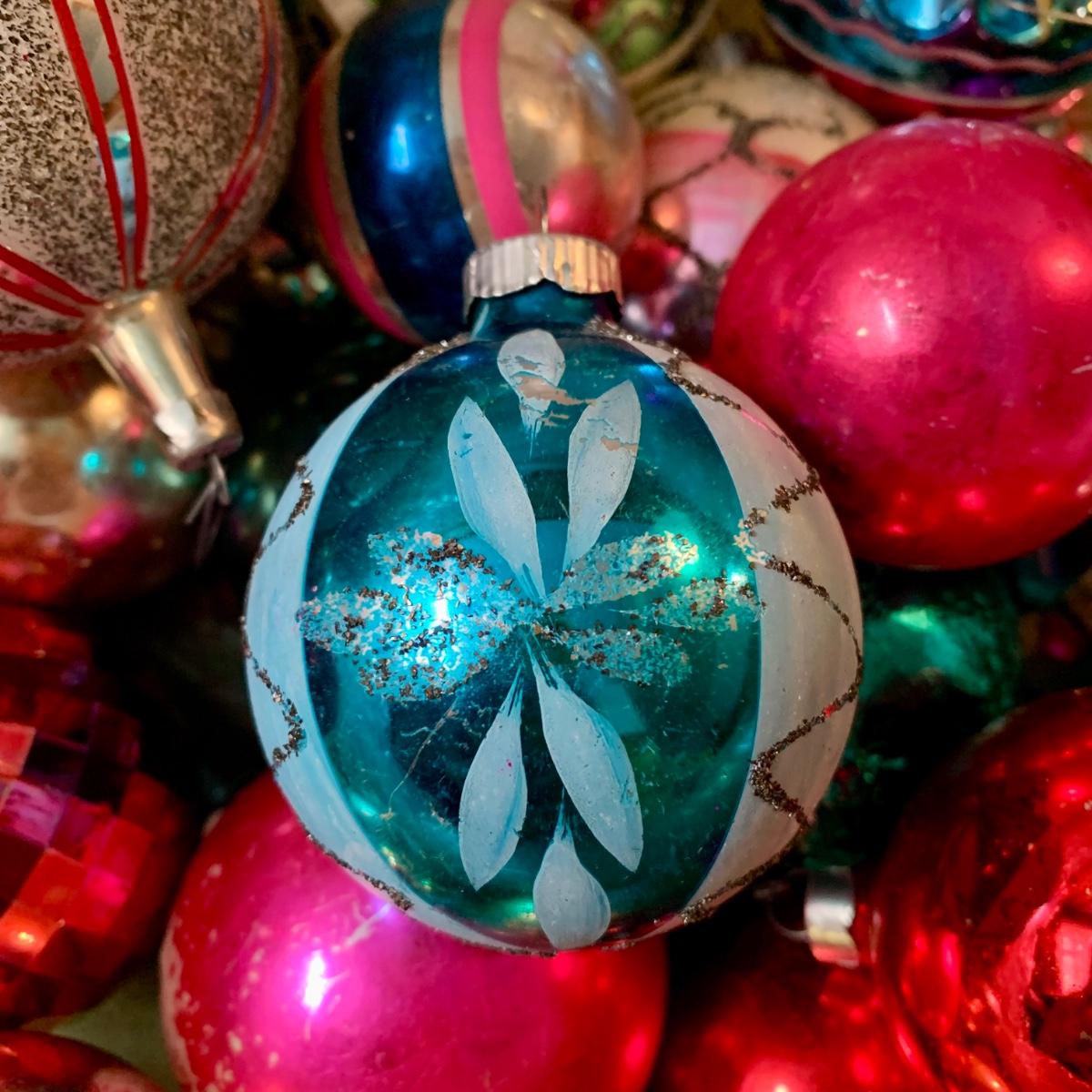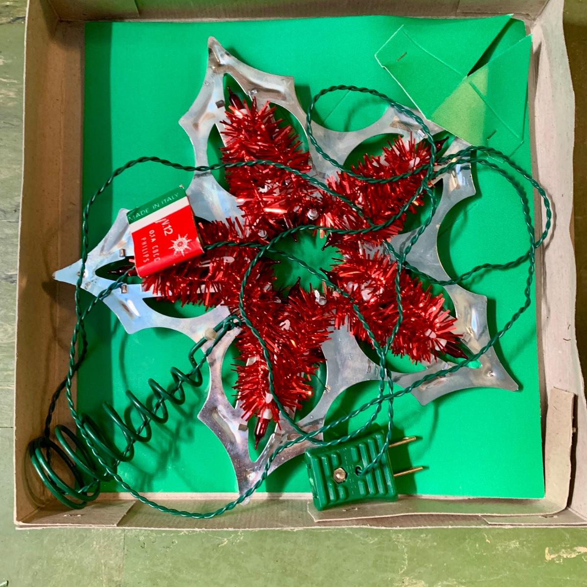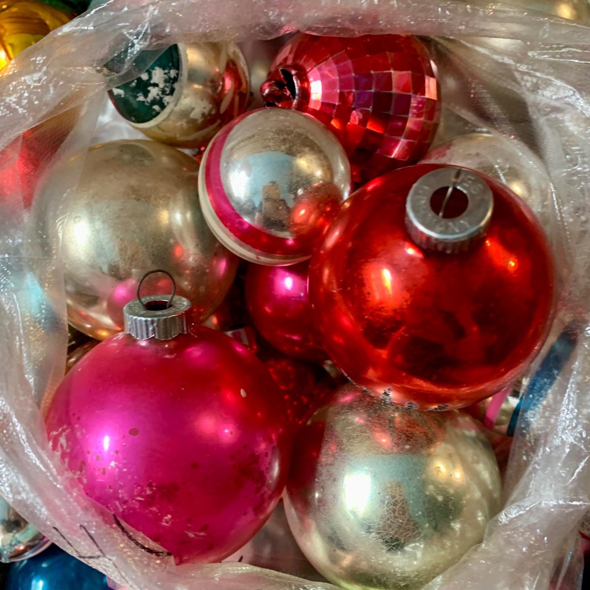 LOT 67 A: Vintage Christmas Collection: Glass Ball Tree Ornaments (Some Handpainted), Davinci Tree Topper, & Multiple Strands of Multicolored String Lights