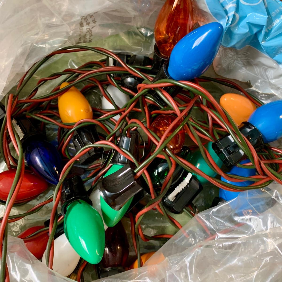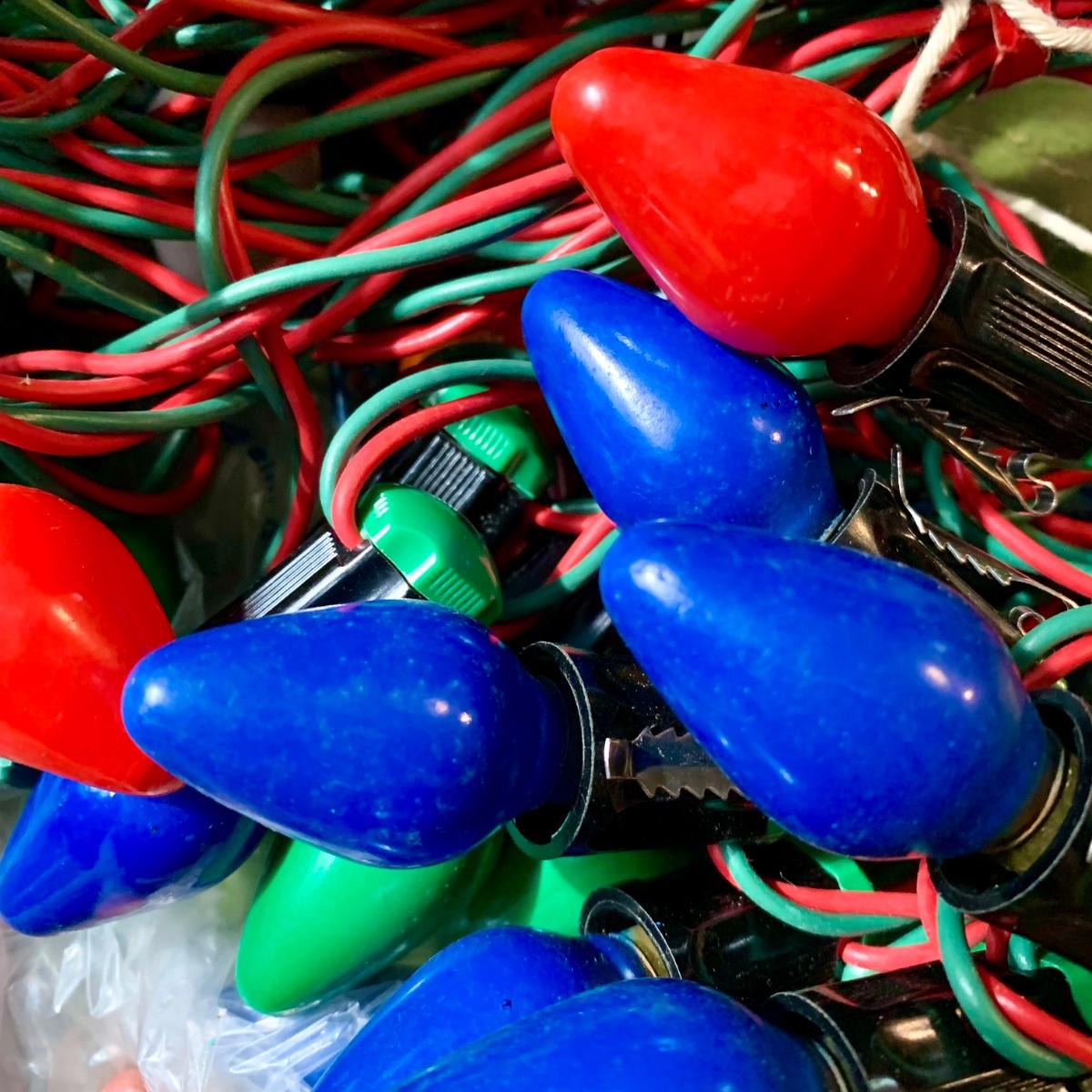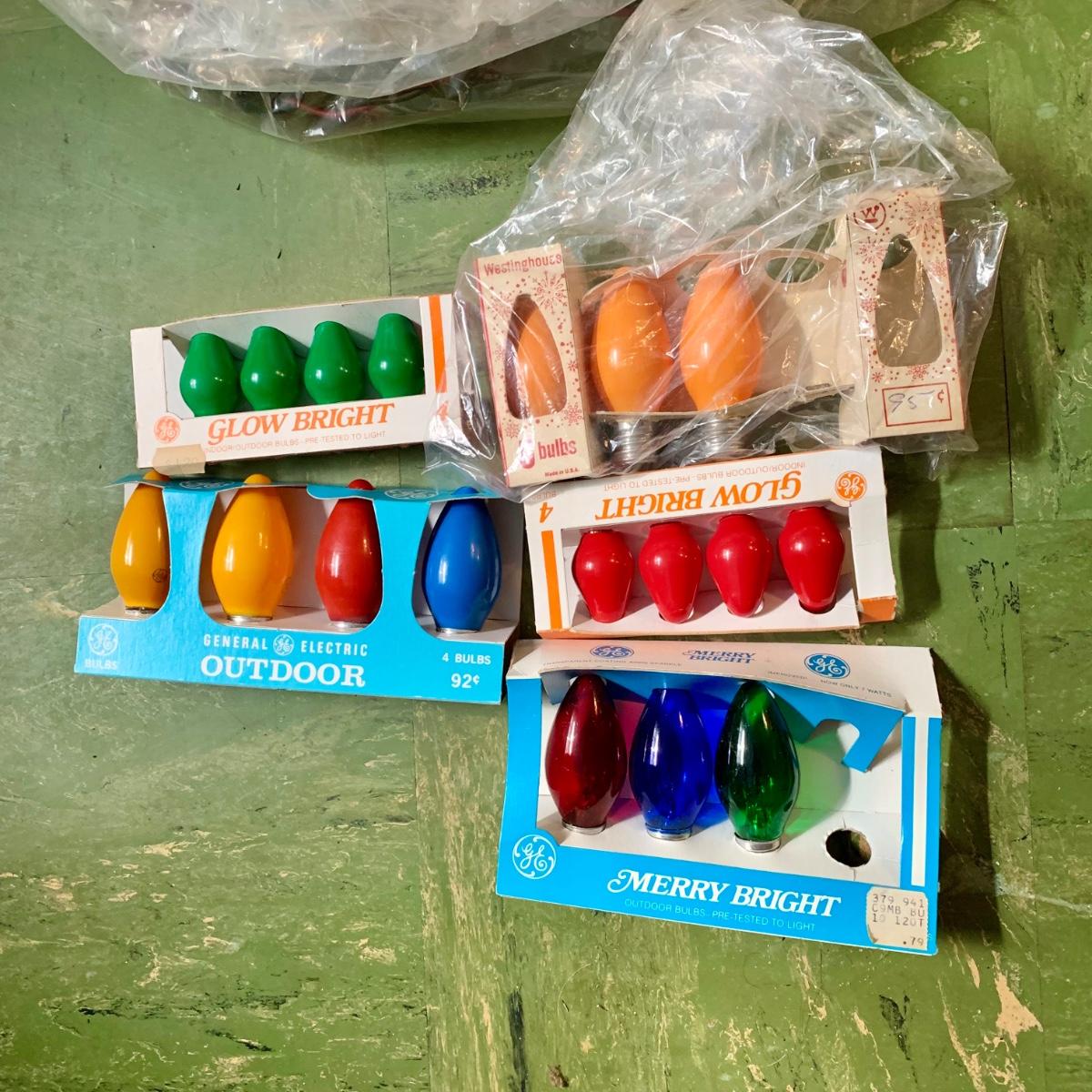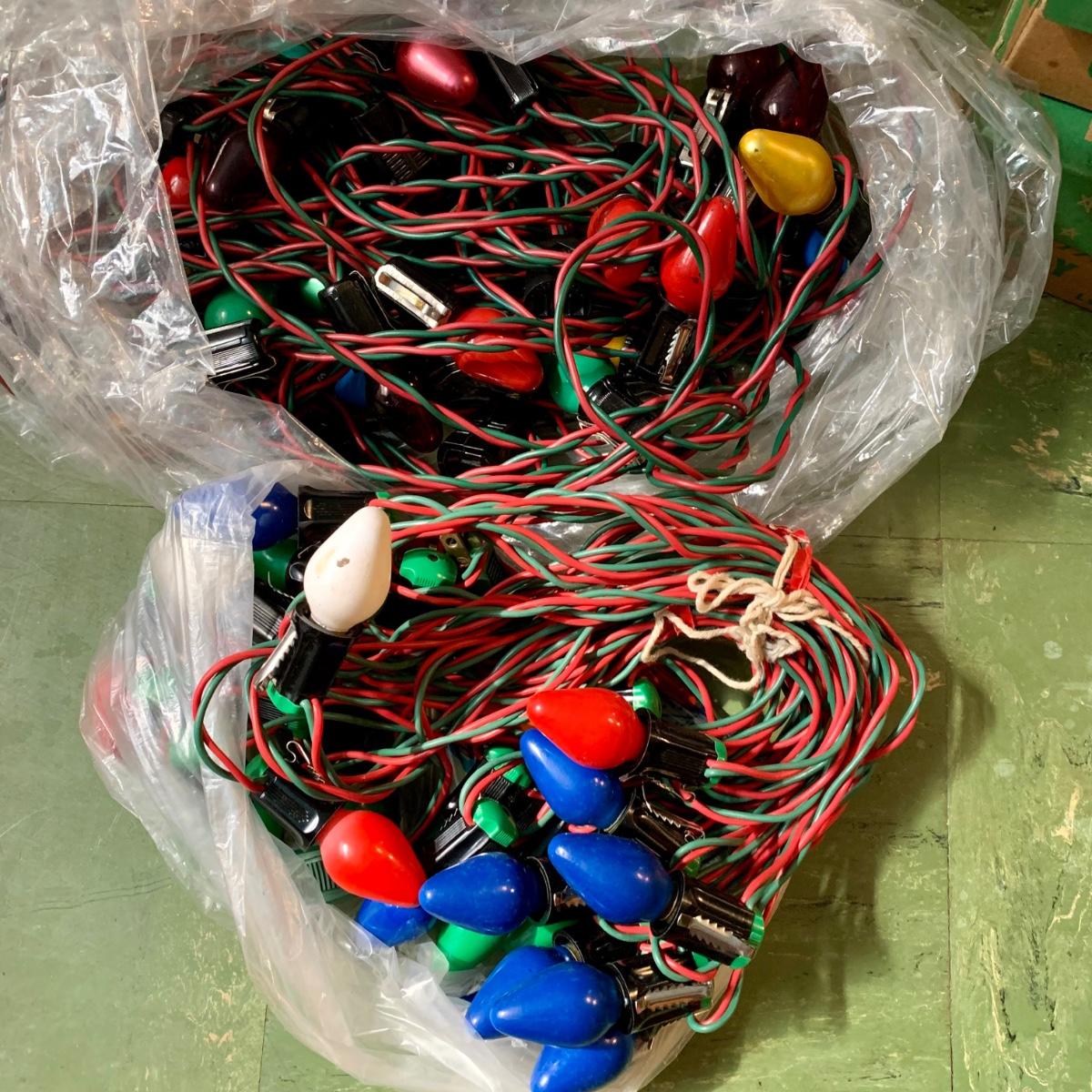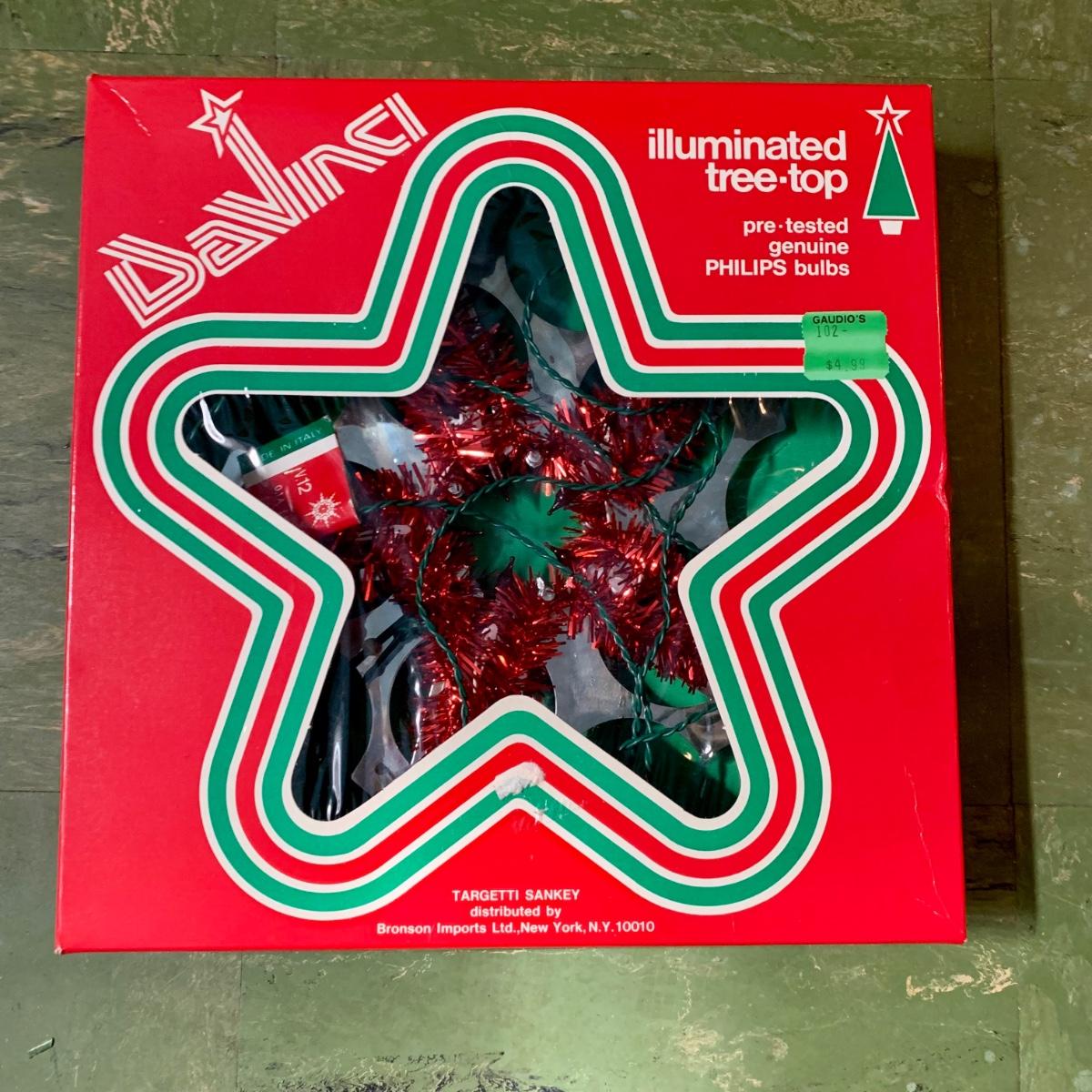 LOT 67 A: Vintage Christmas Collection: Glass Ball Tree Ornaments (Some Handpainted), Davinci Tree Topper, & Multiple Strands of Multicolored String Lights