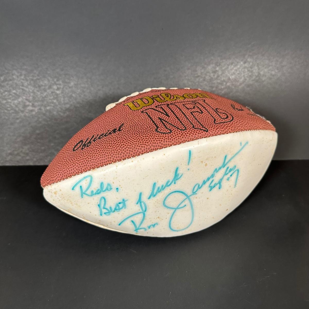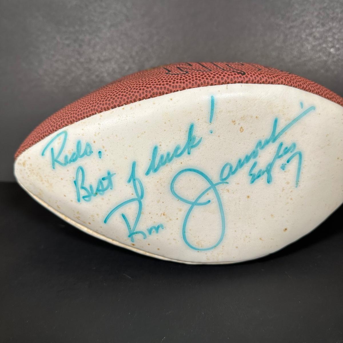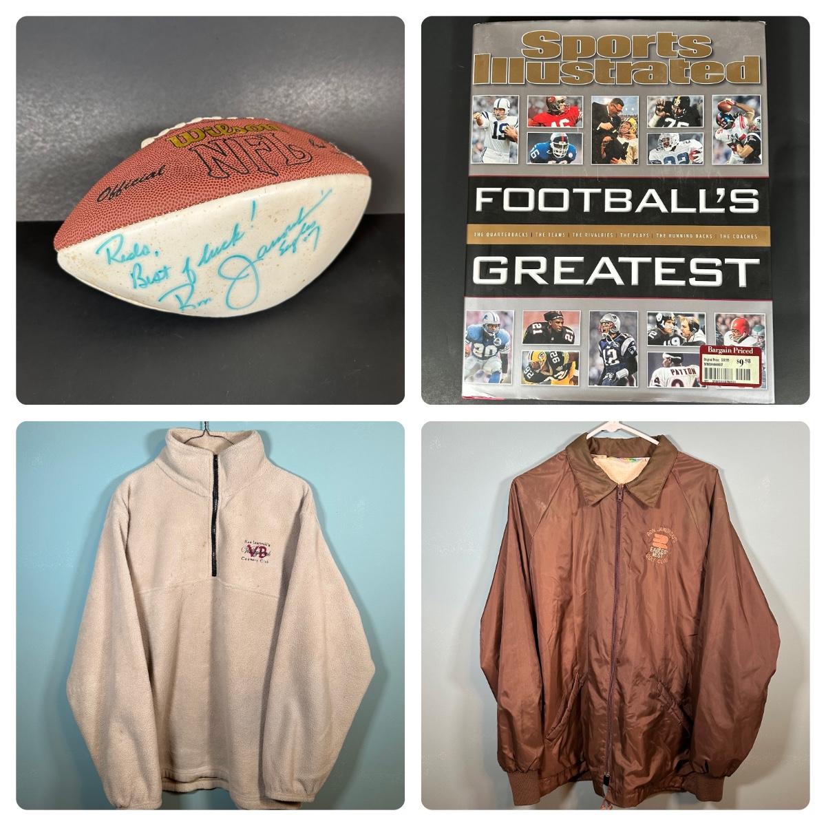LOT 92X: Ron Jaworski Signed Football w/ Ron Jaworski Sweatshirt & Jacket & More