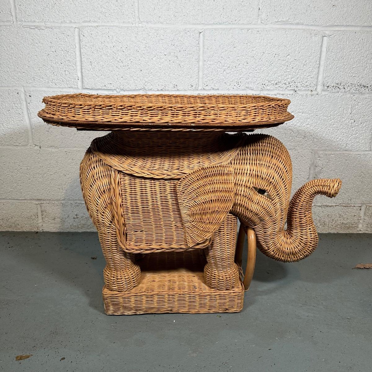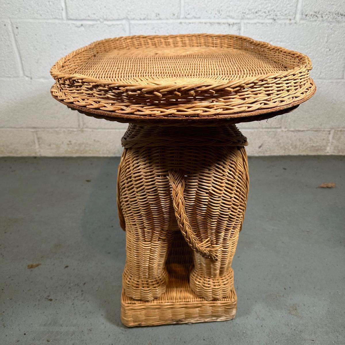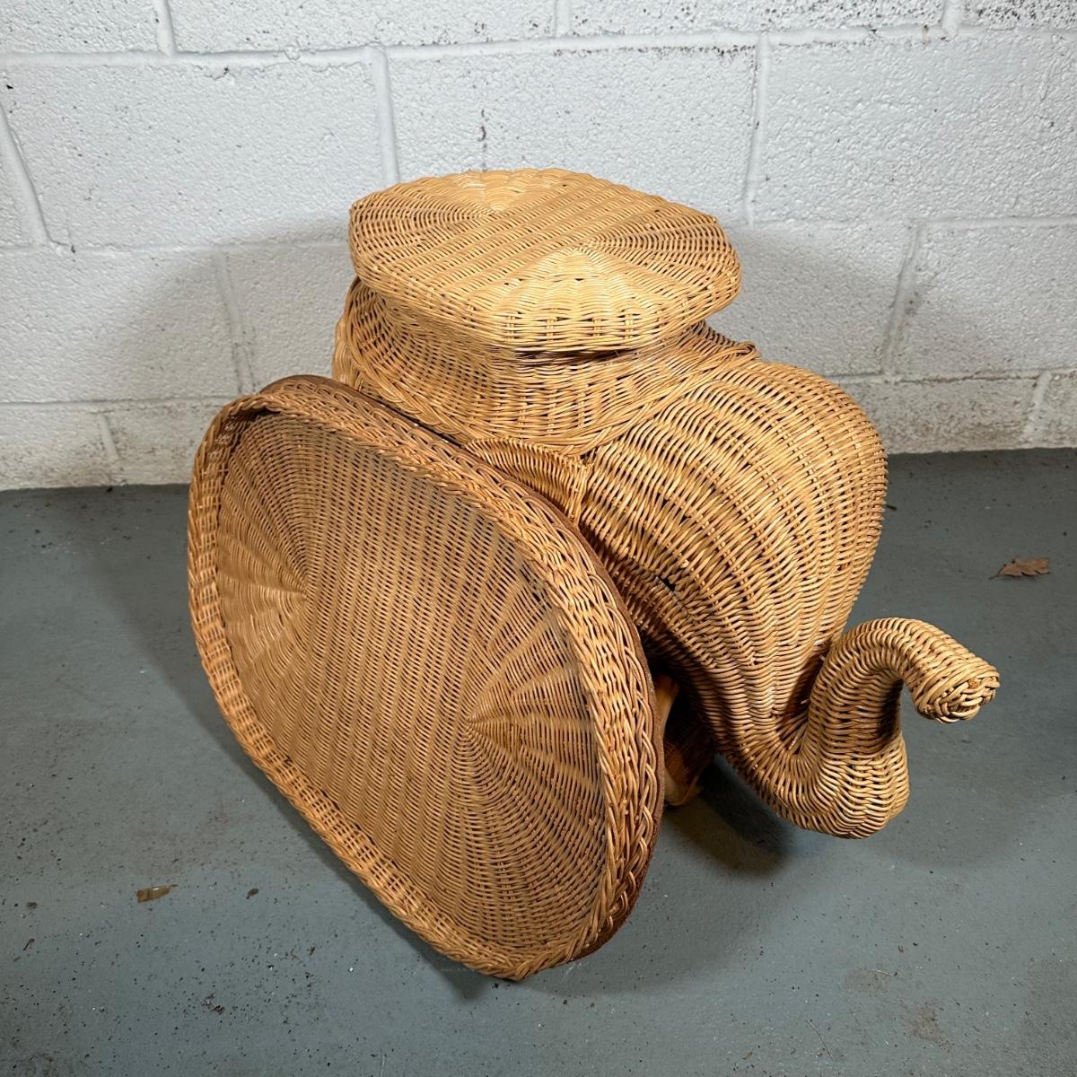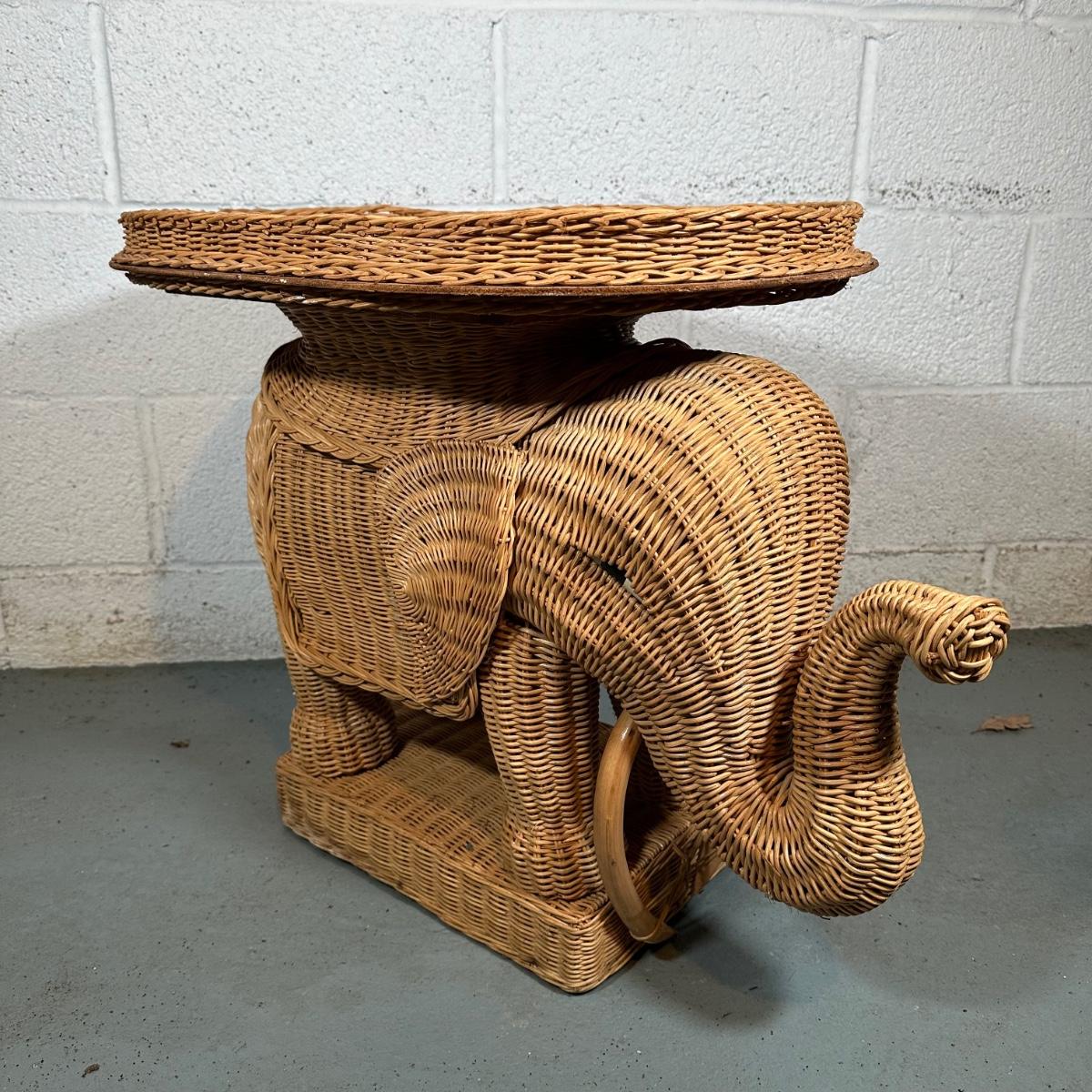 LOT 94G: Vintage Boho Wicker Rattan Elephant Side Table Style of Mario Lopez Torres 1970s