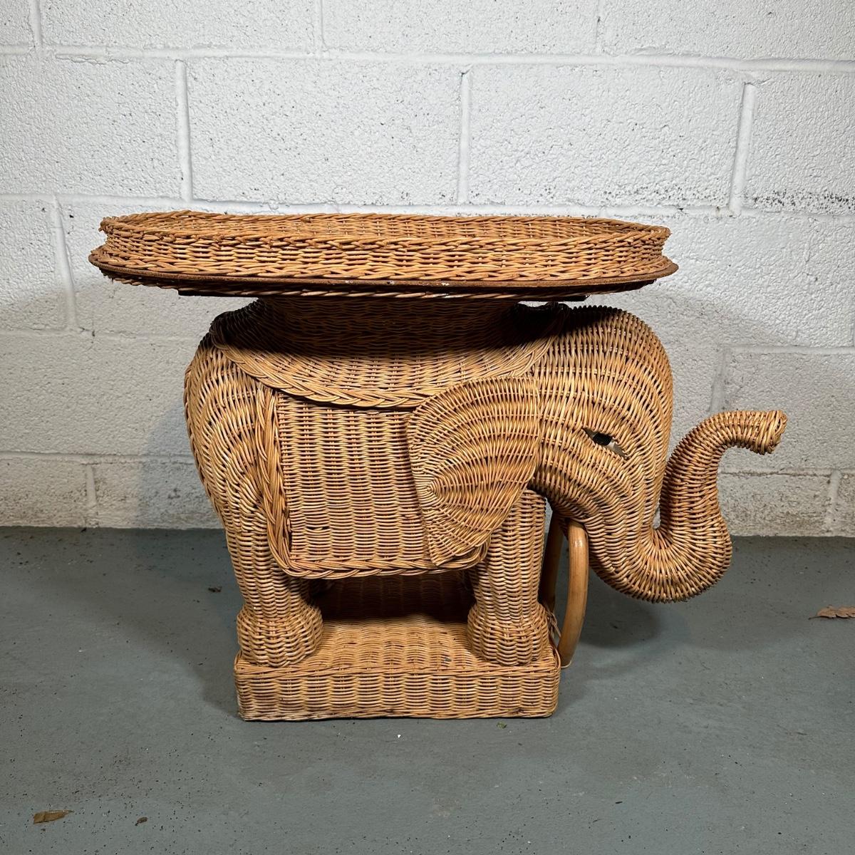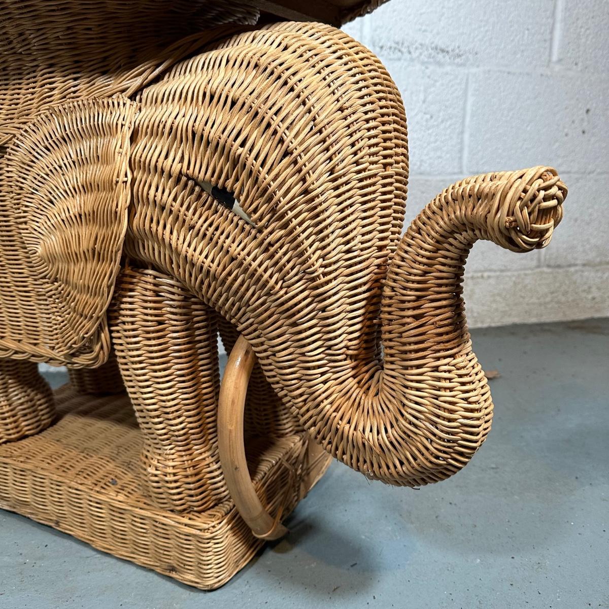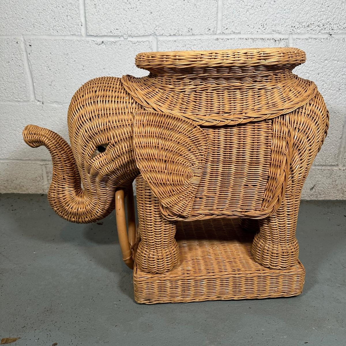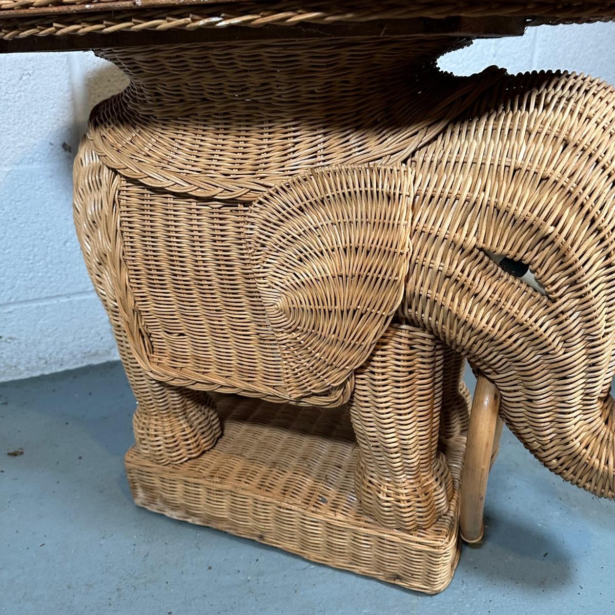 LOT 94G: Vintage Boho Wicker Rattan Elephant Side Table Style of Mario Lopez Torres 1970s