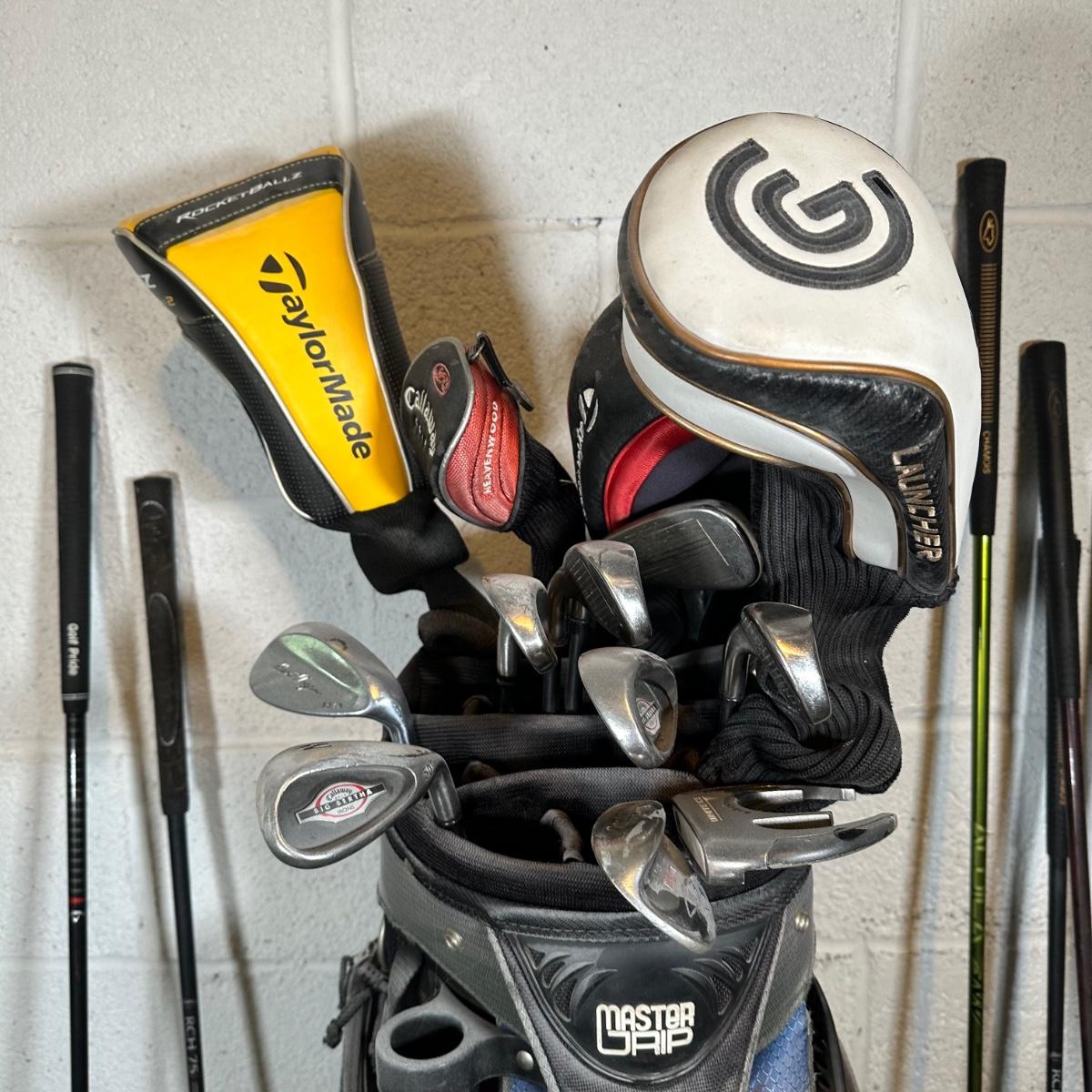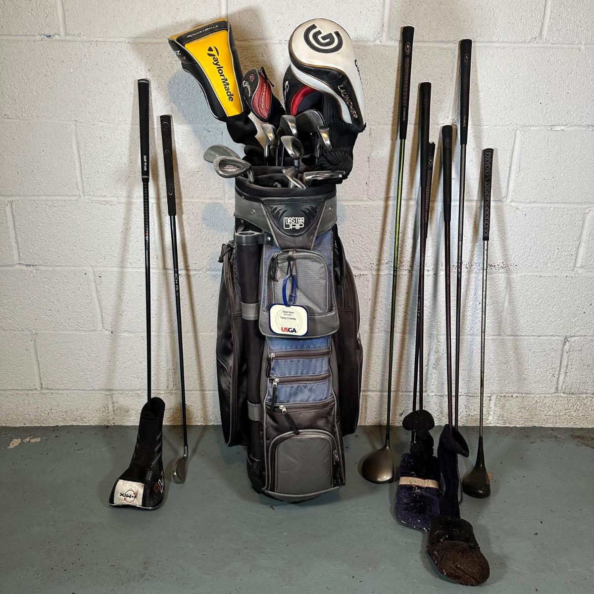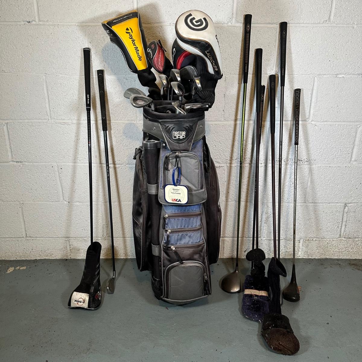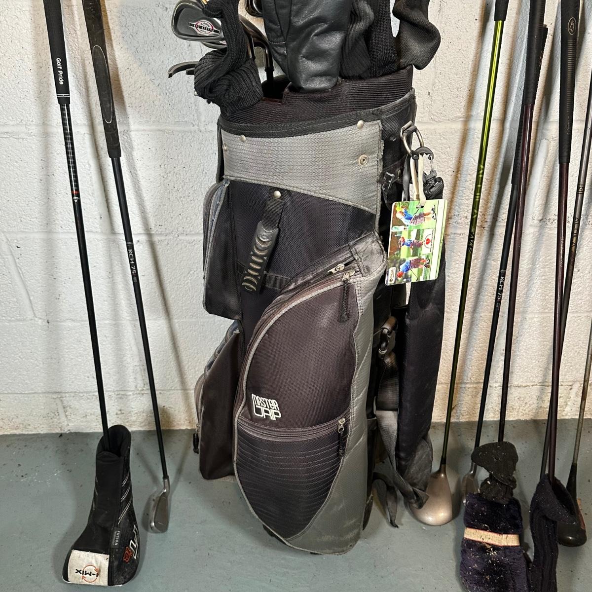 LOT 96G: Collection Of Golf Clubs w/ Master Grip Golf Bag & Golfballs, Tees & Gloves