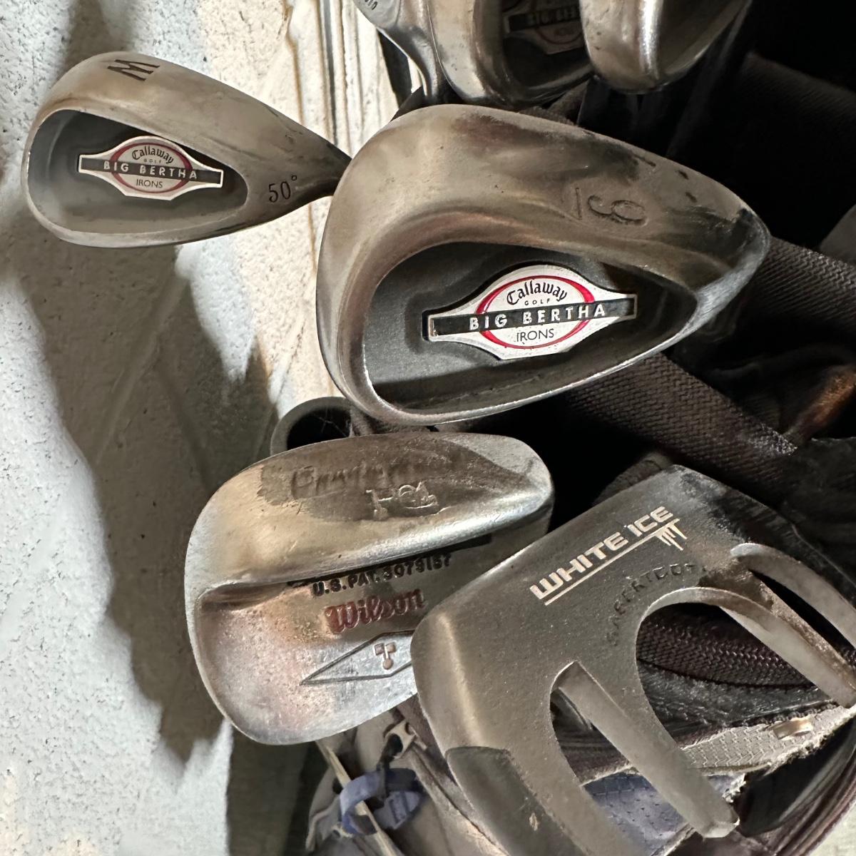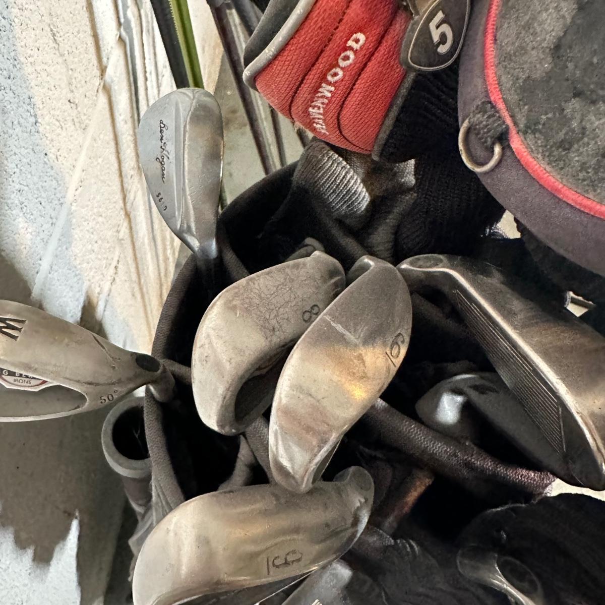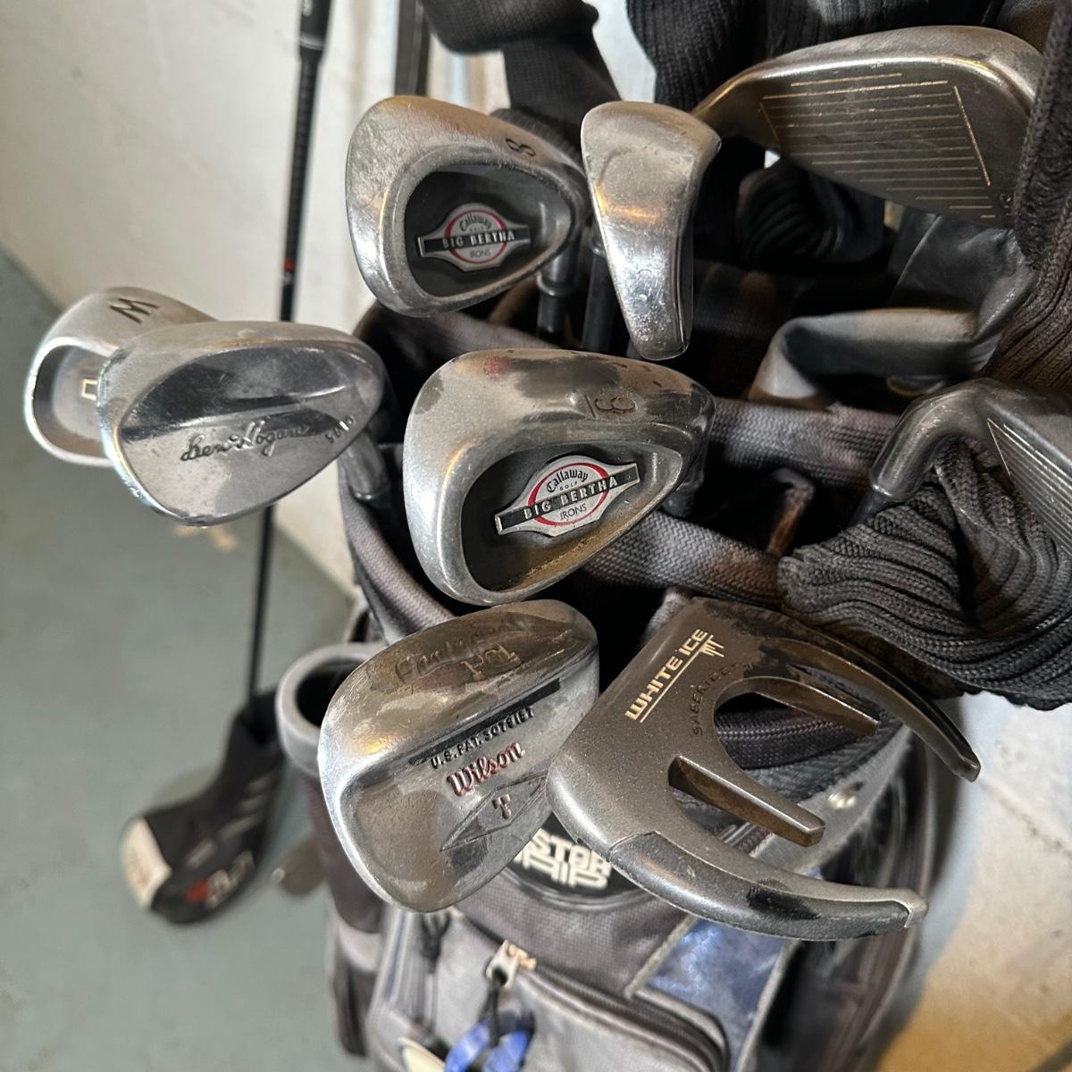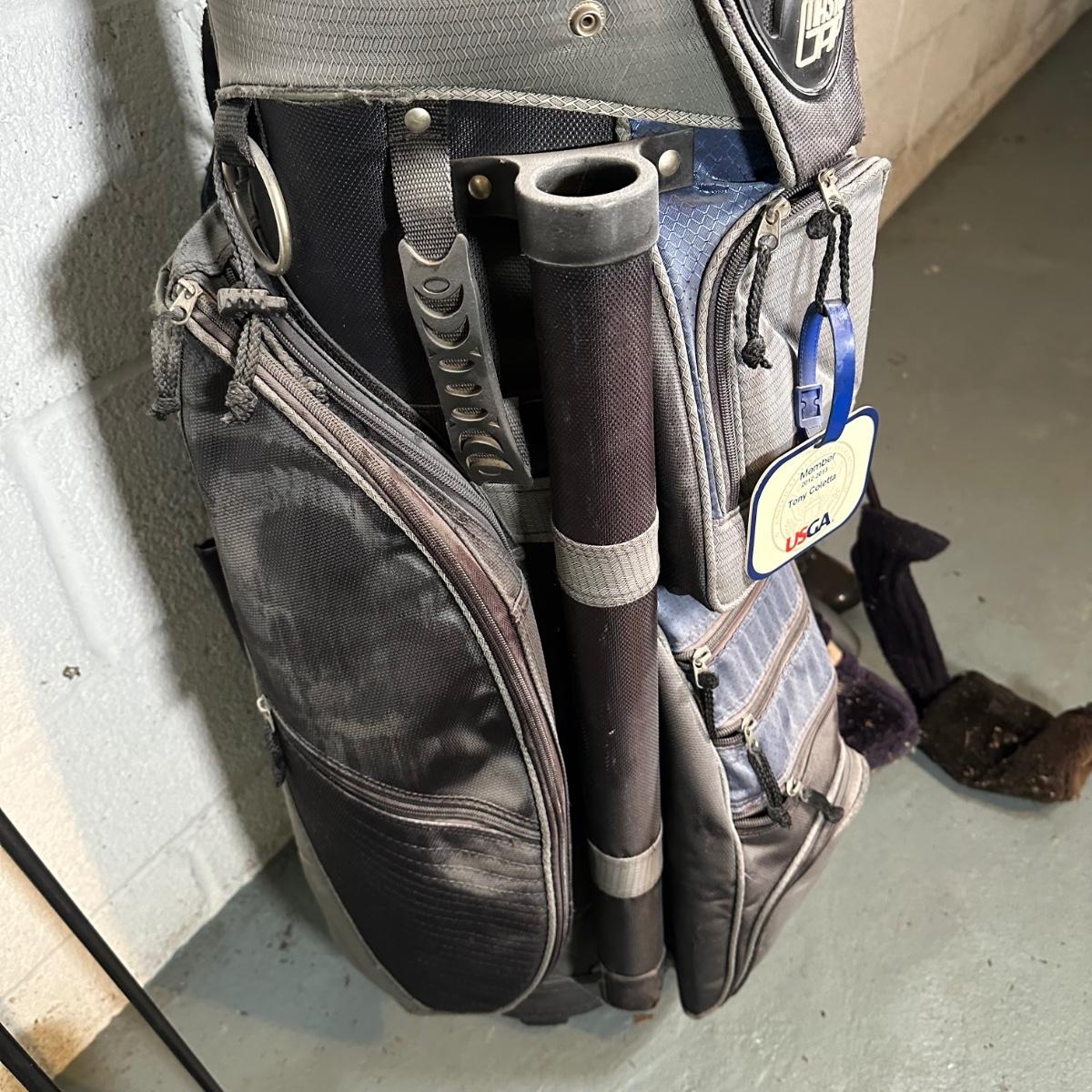 LOT 96G: Collection Of Golf Clubs w/ Master Grip Golf Bag & Golfballs, Tees & Gloves